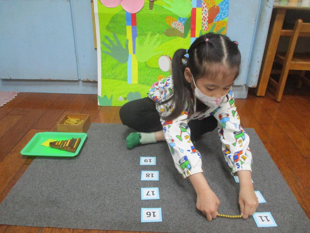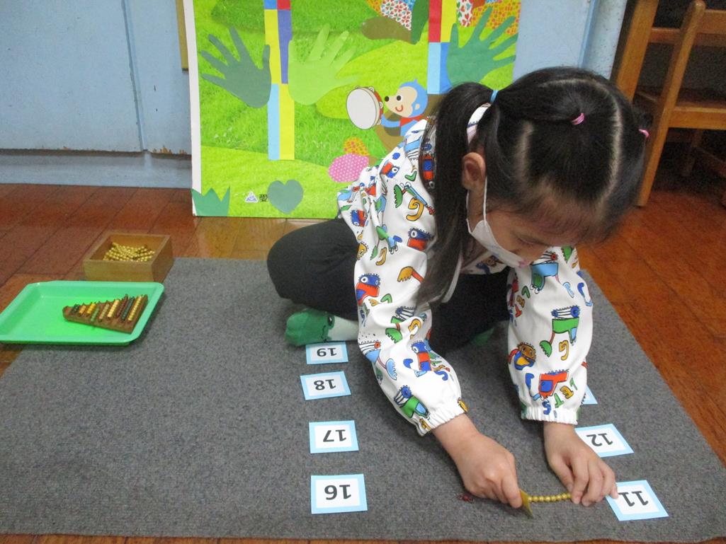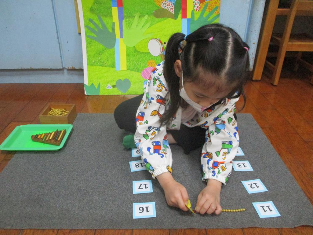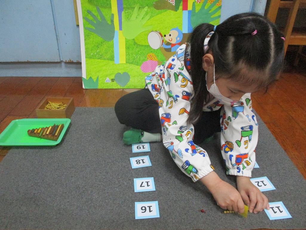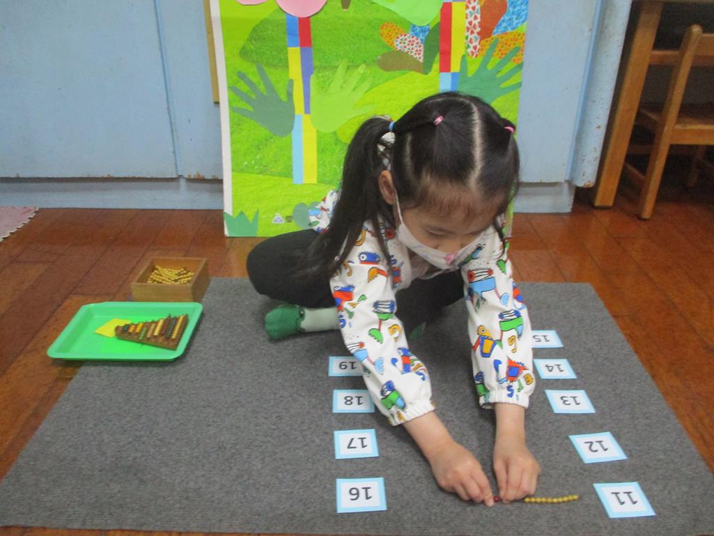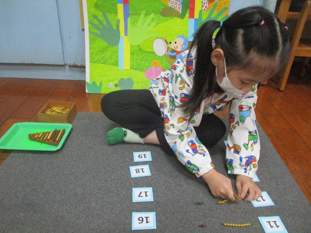 相簿名稱: 茉莉班-蒙特梭利教學(數學教育-彩色串珠11~19+字卡)