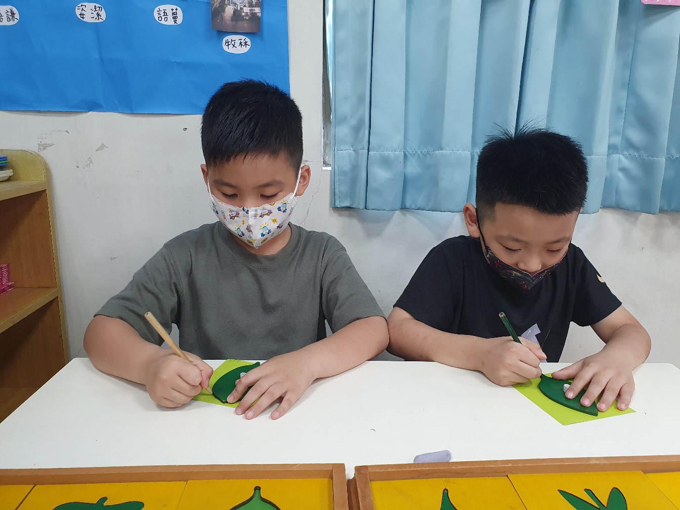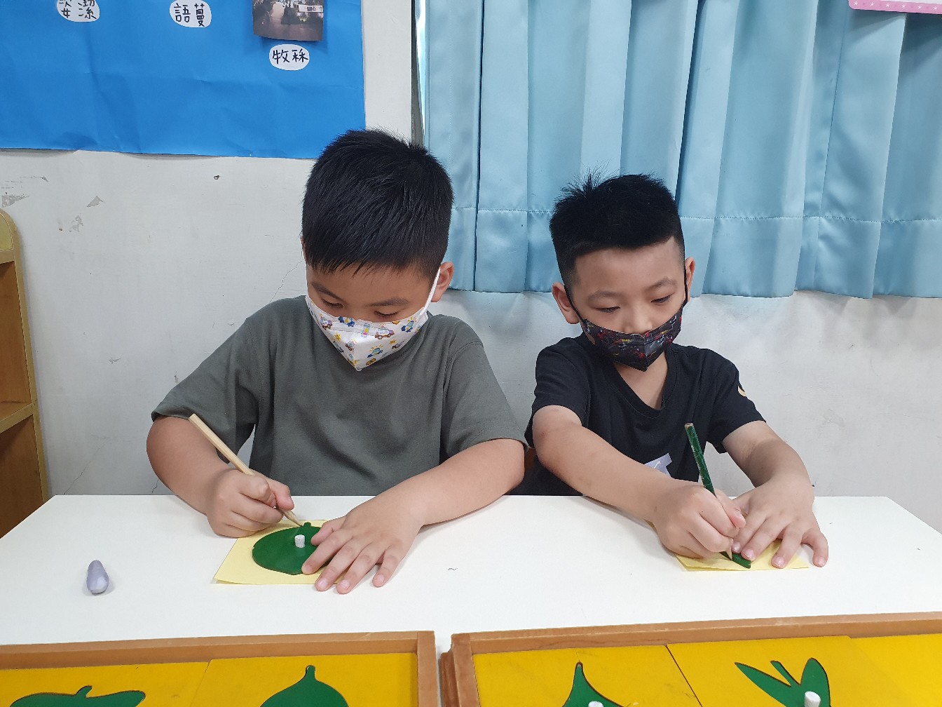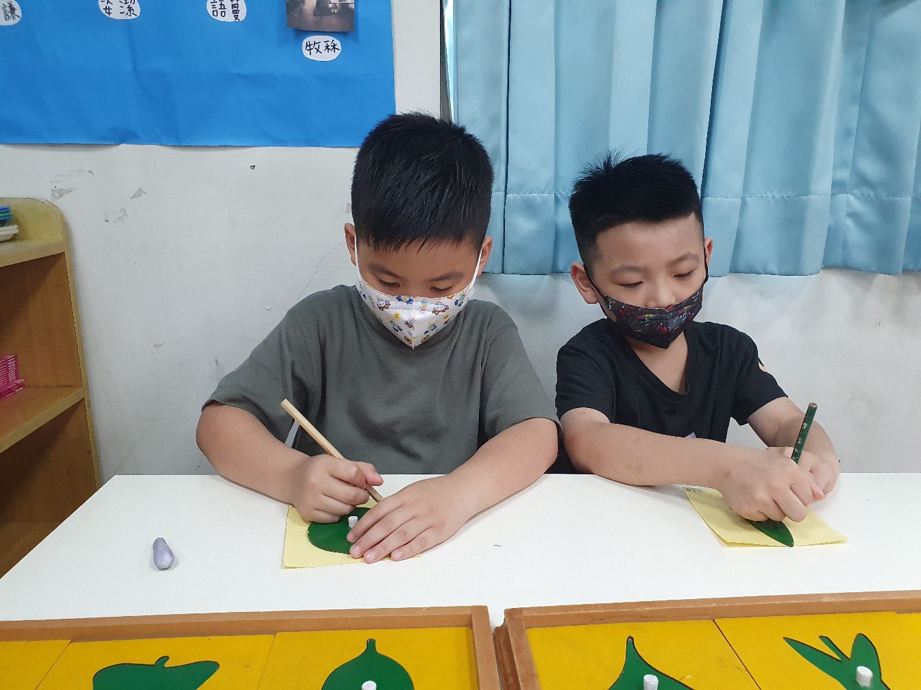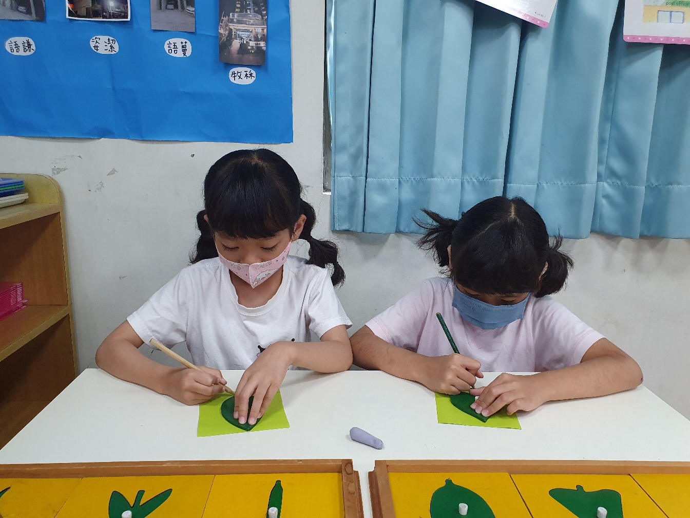 相簿名稱: 向日葵班-蒙特梭利教學-日常生活教育(剪工+貼工(樹葉拼圖櫥圖案))