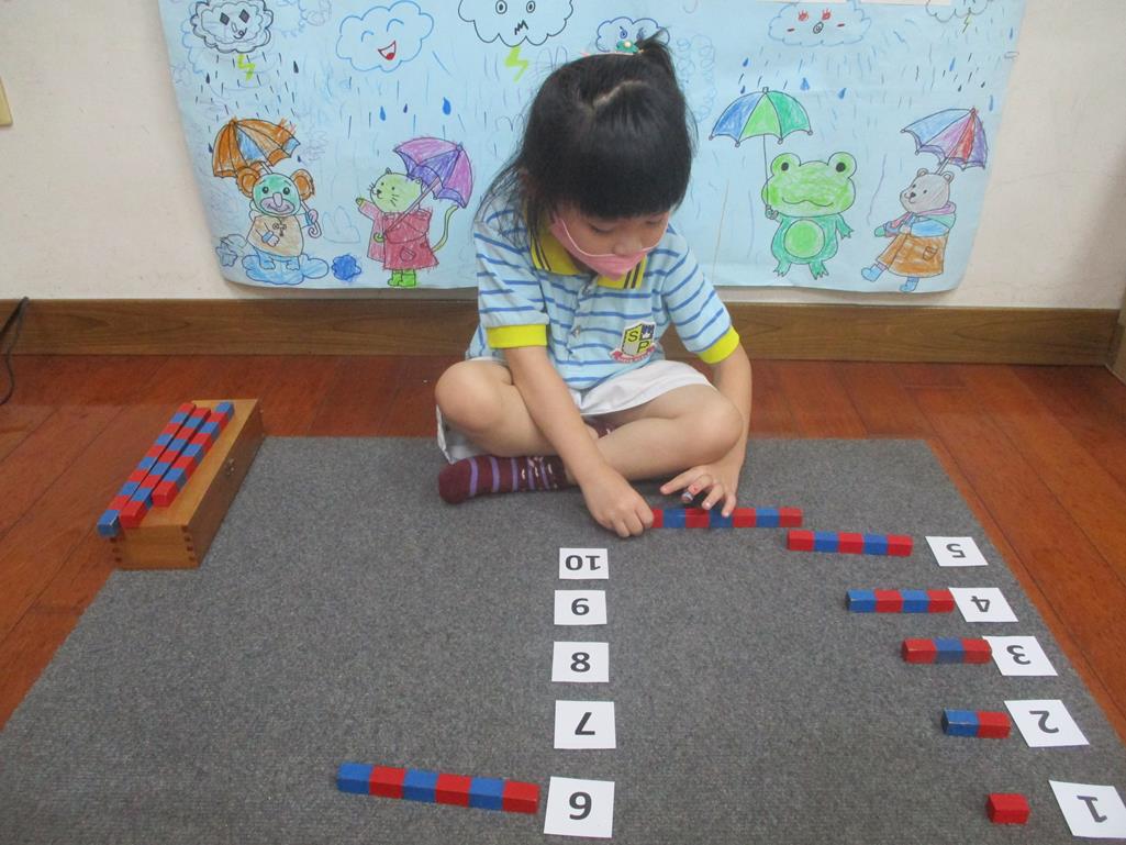 相簿名稱: 茉莉班-蒙特梭利教學(數學教育-數棒+1~10字卡)