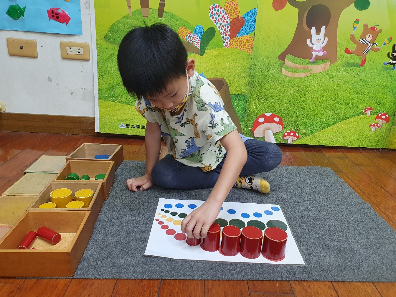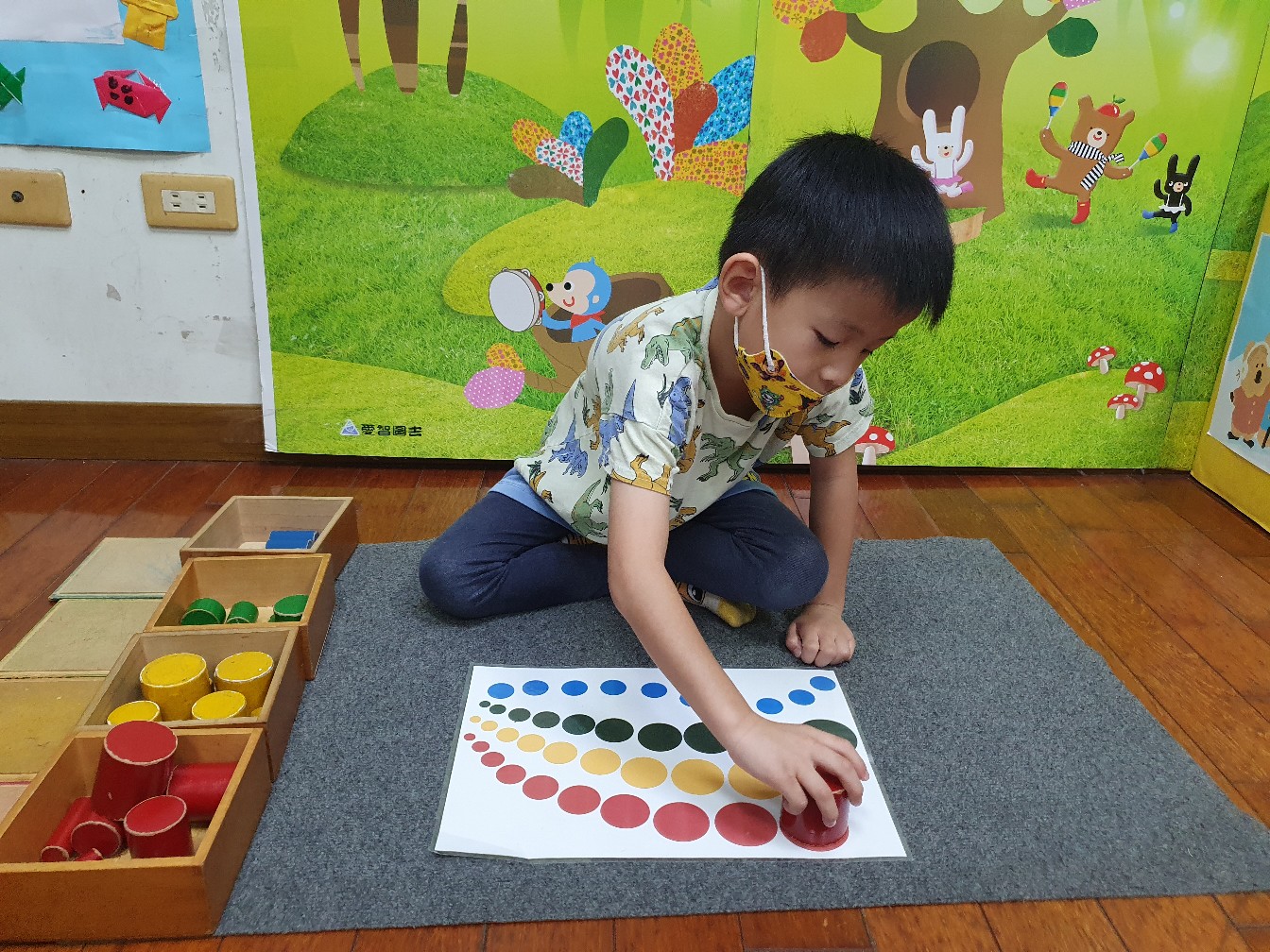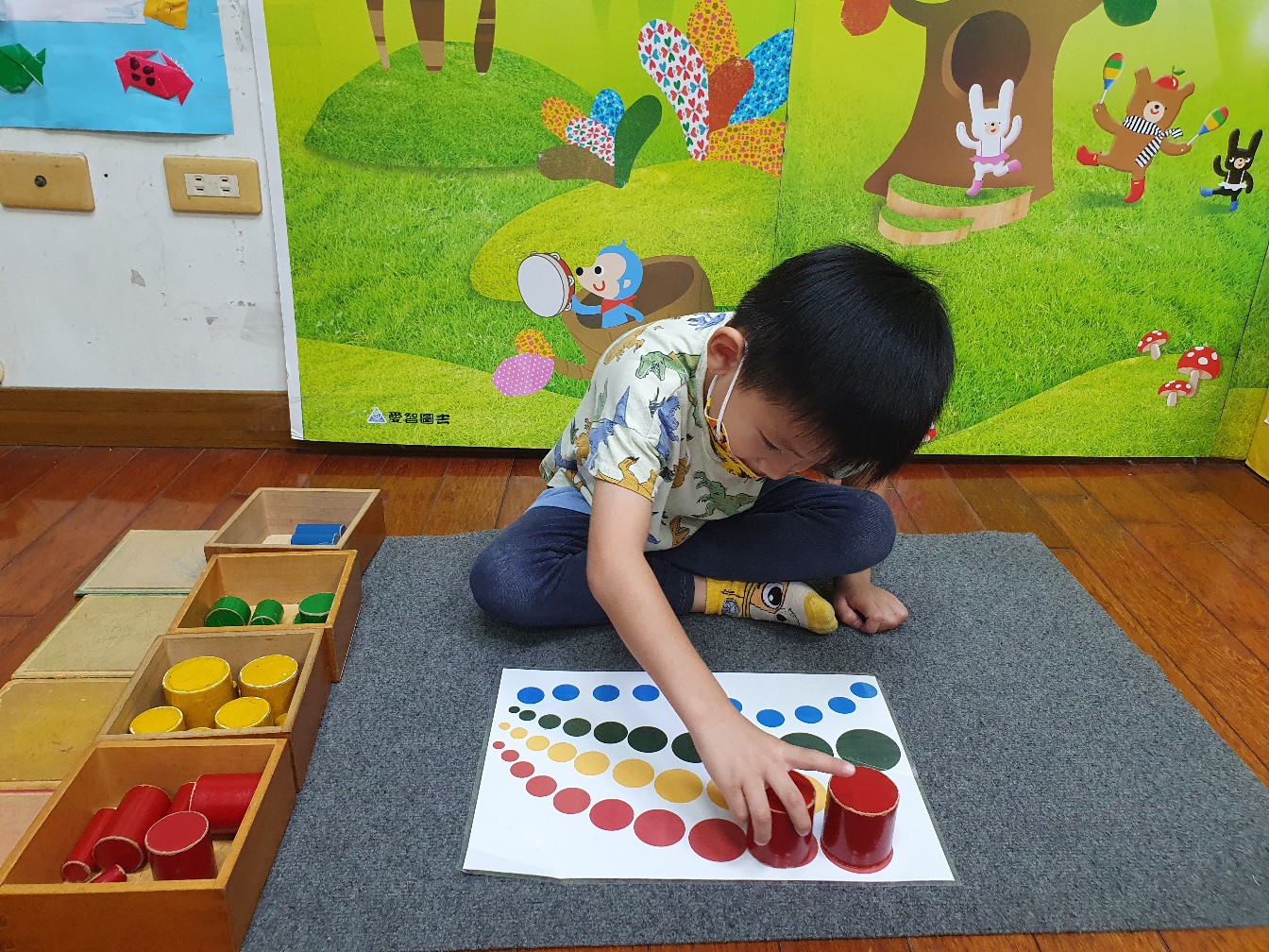 相簿名稱: 向日葵班-蒙特梭利教學(感官教育-彩色圓柱+變化卡)