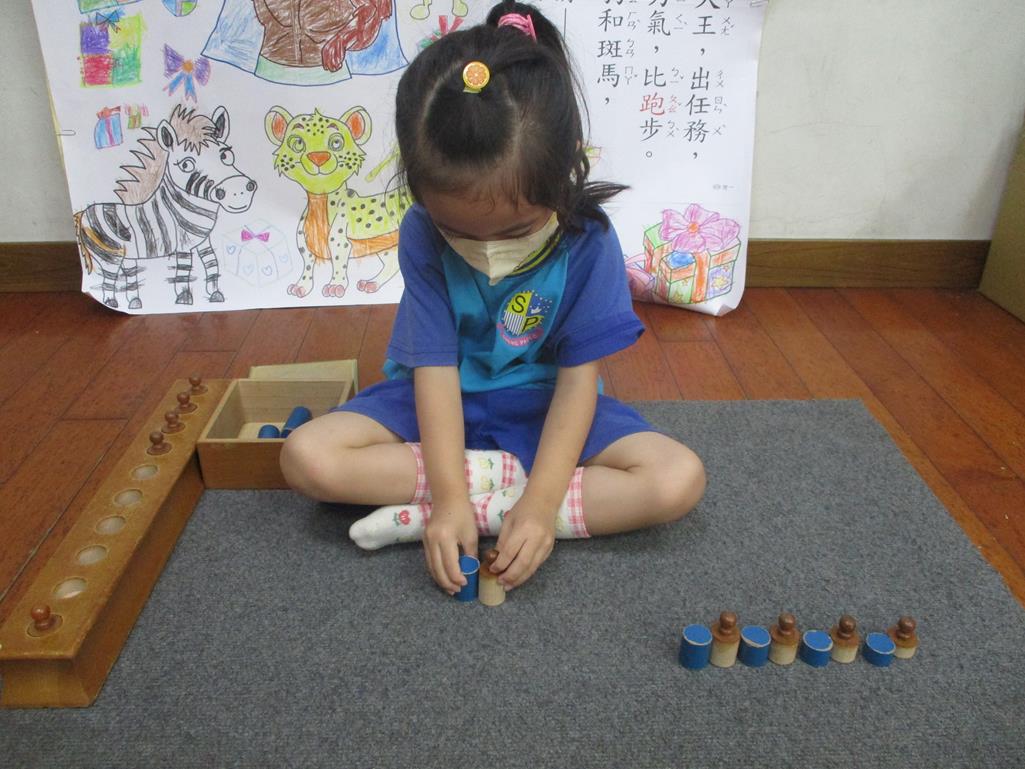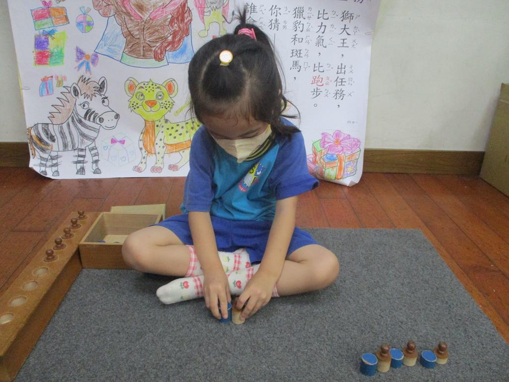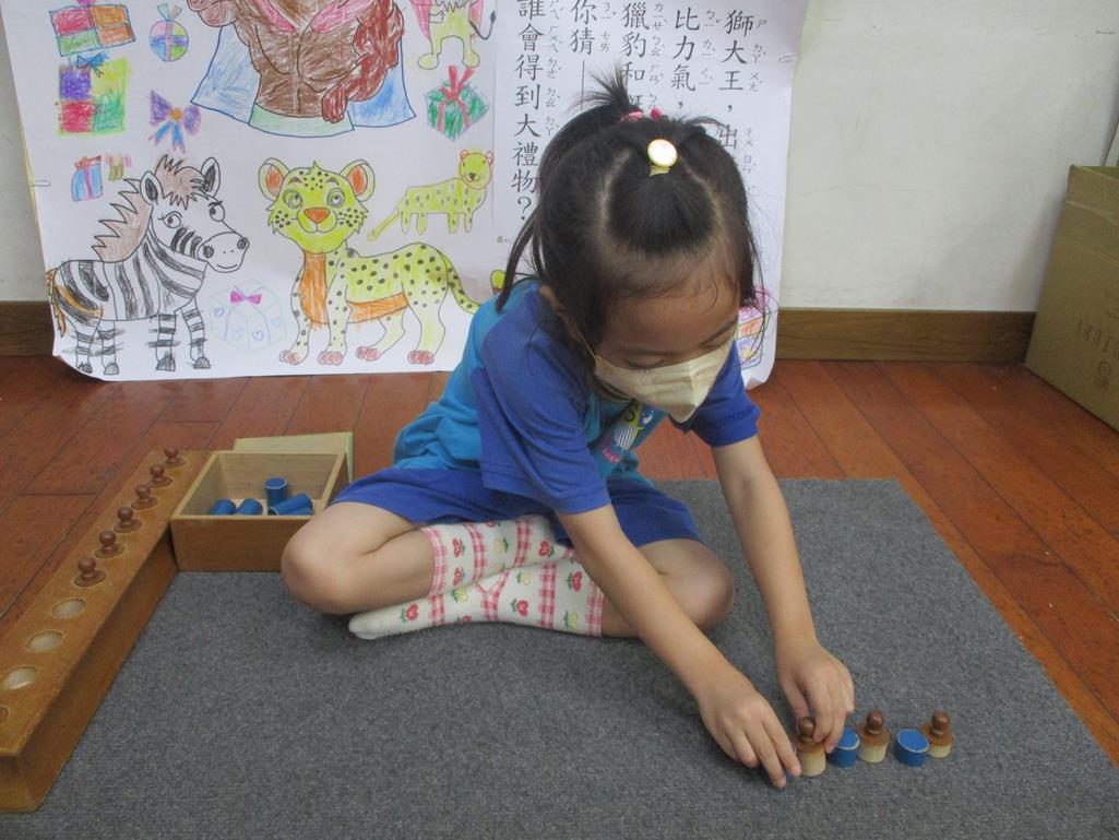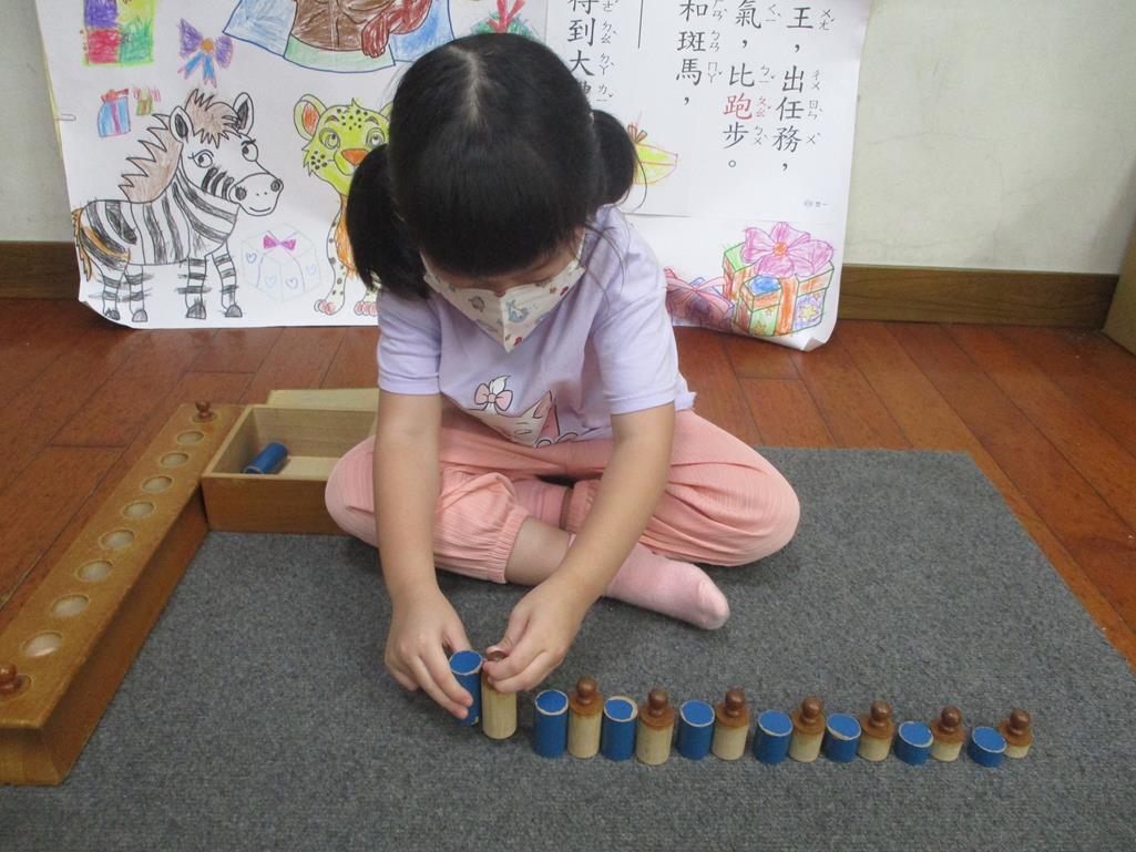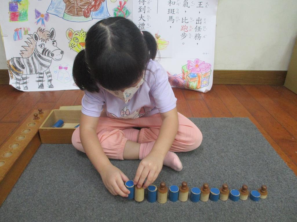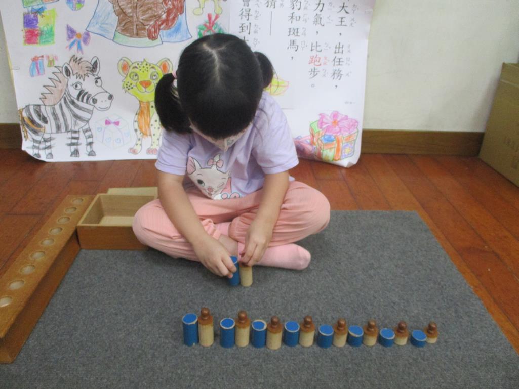 相簿名稱: 茉莉班-蒙特梭利教學(數學教育-藍色圖柱+有柄圓柱)