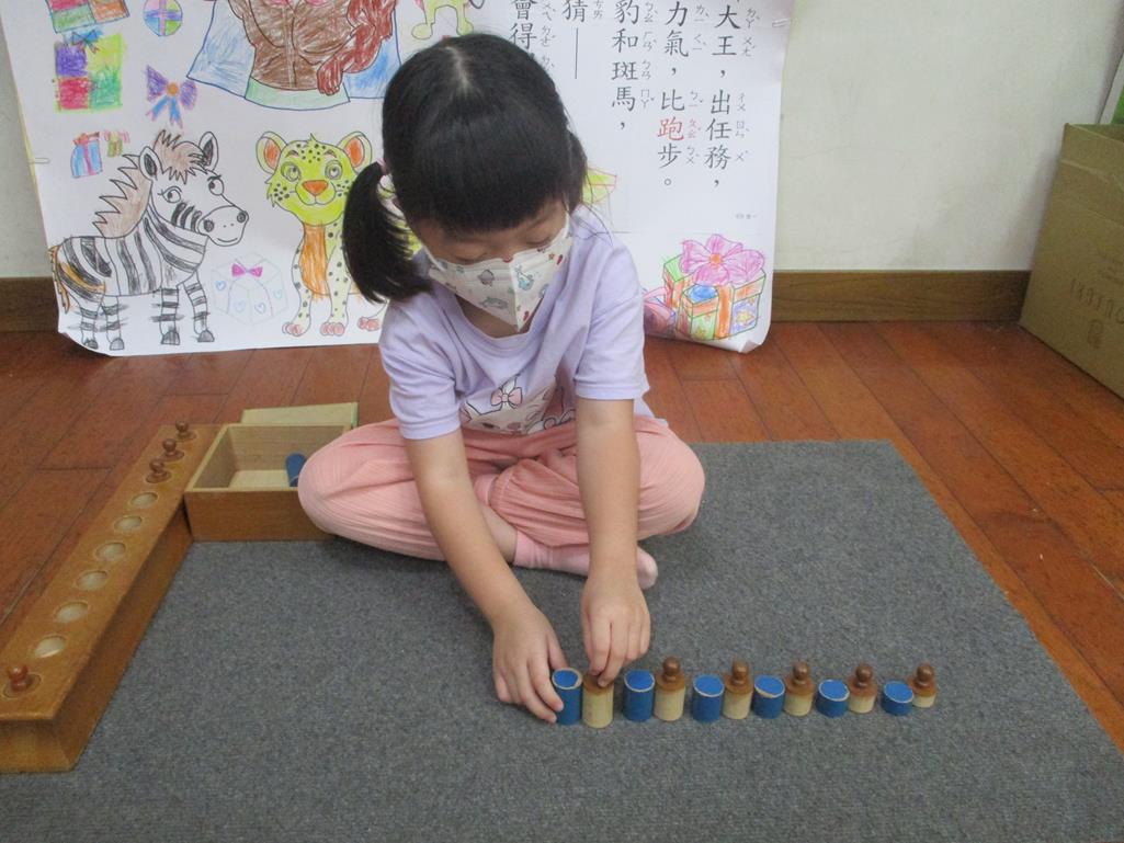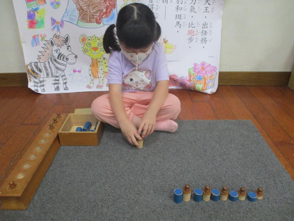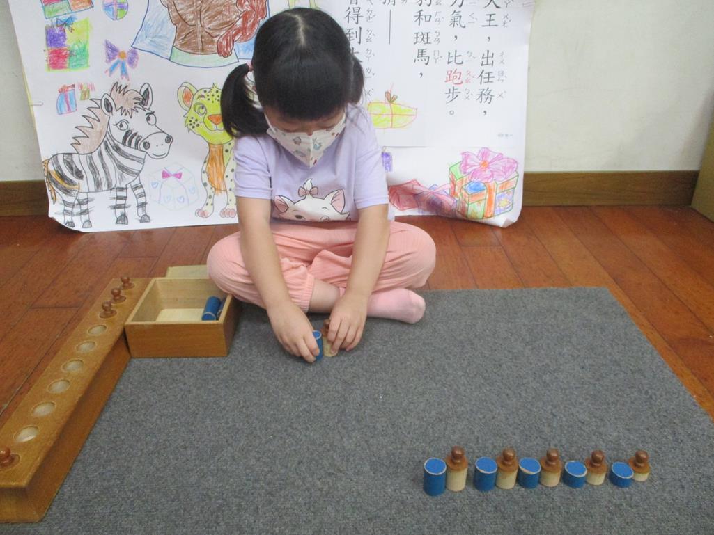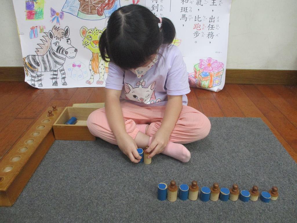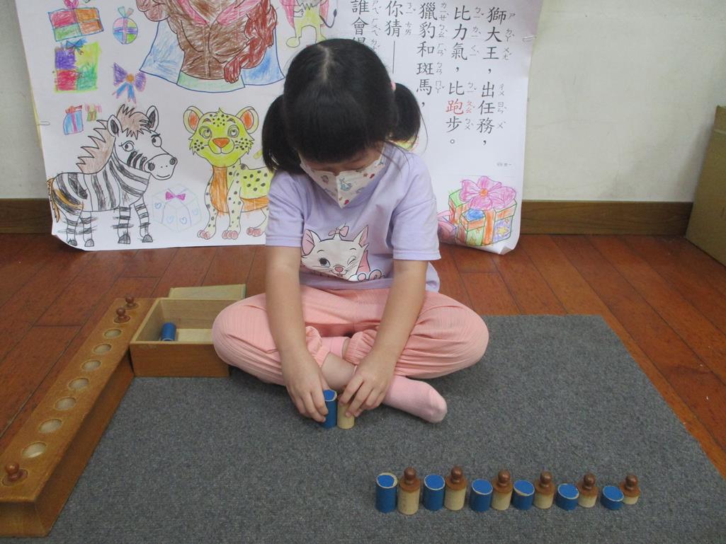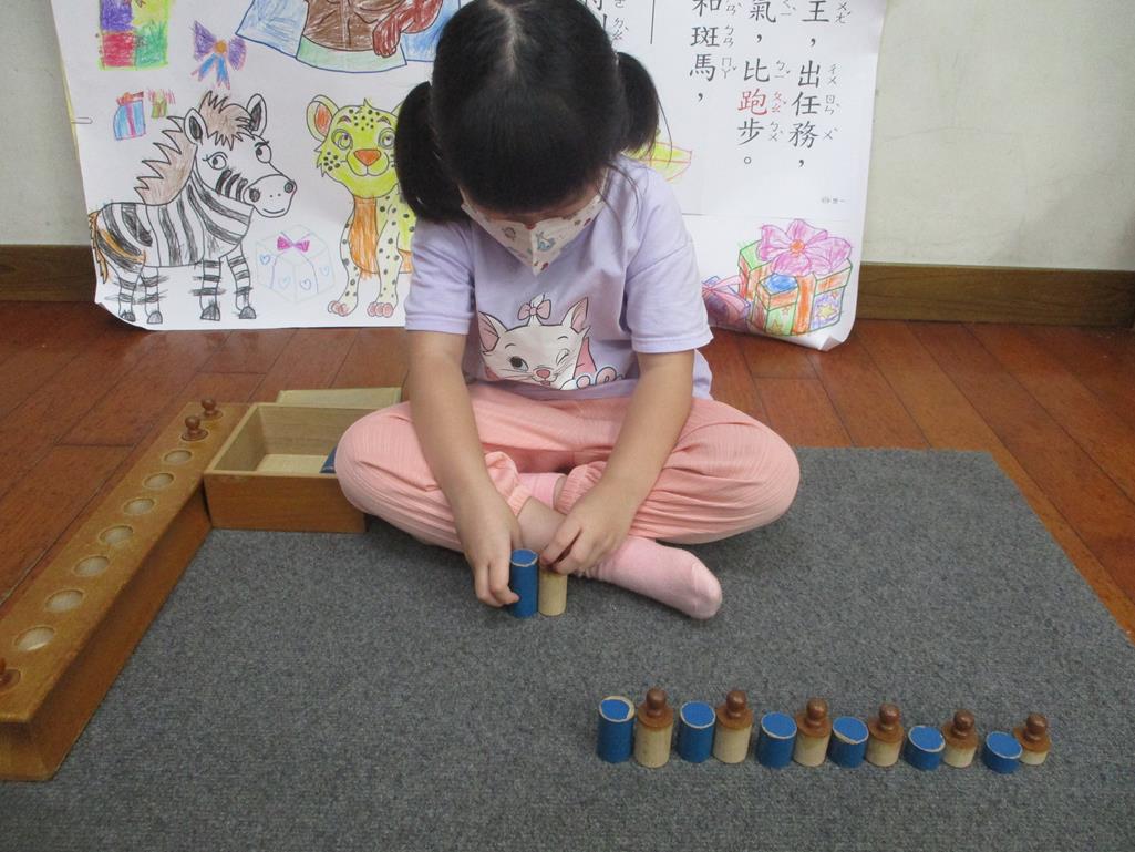 相簿名稱: 茉莉班-蒙特梭利教學(數學教育-藍色圖柱+有柄圓柱)