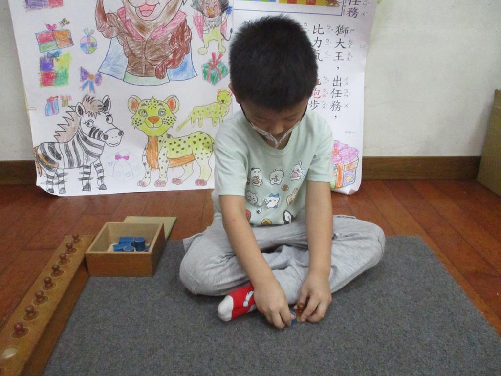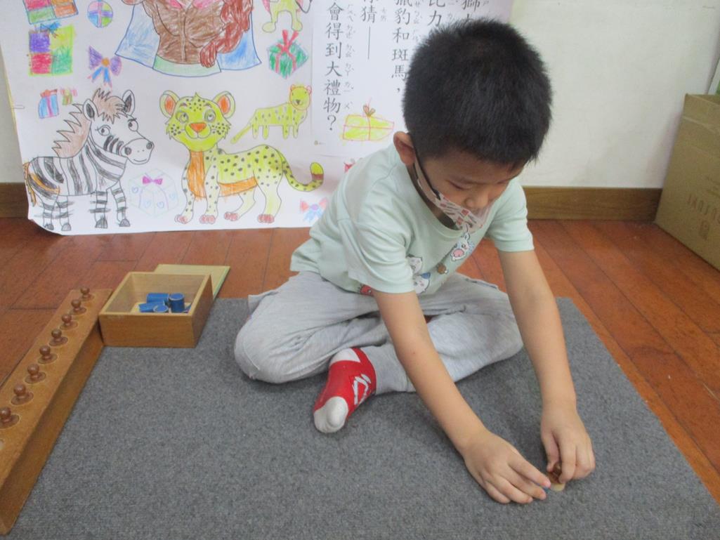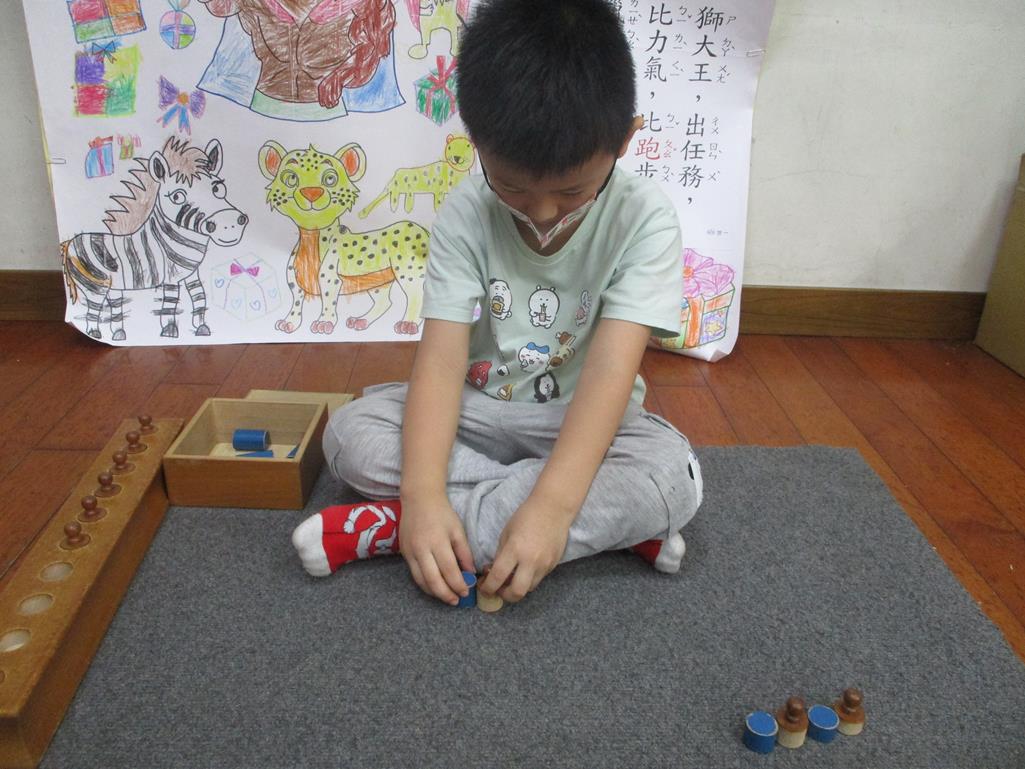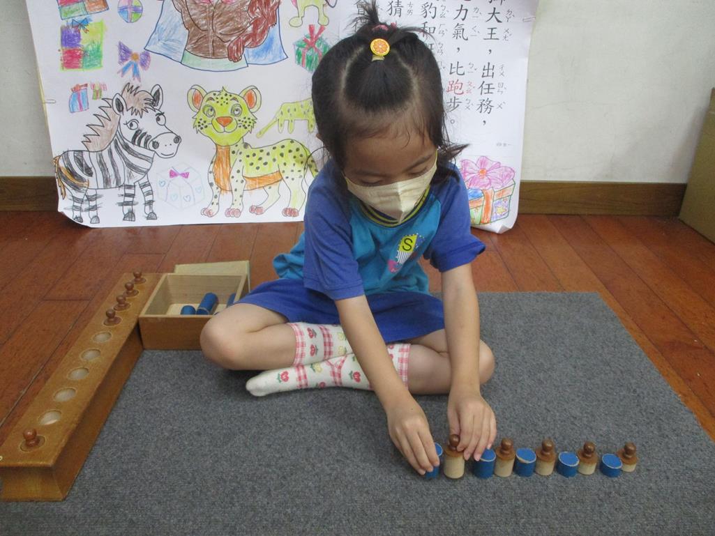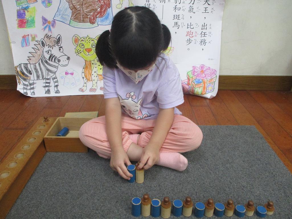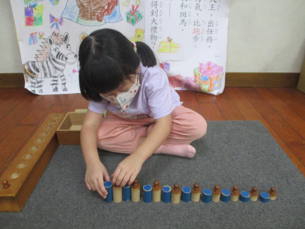 相簿名稱: 茉莉班-蒙特梭利教學(數學教育-藍色圖柱+有柄圓柱)