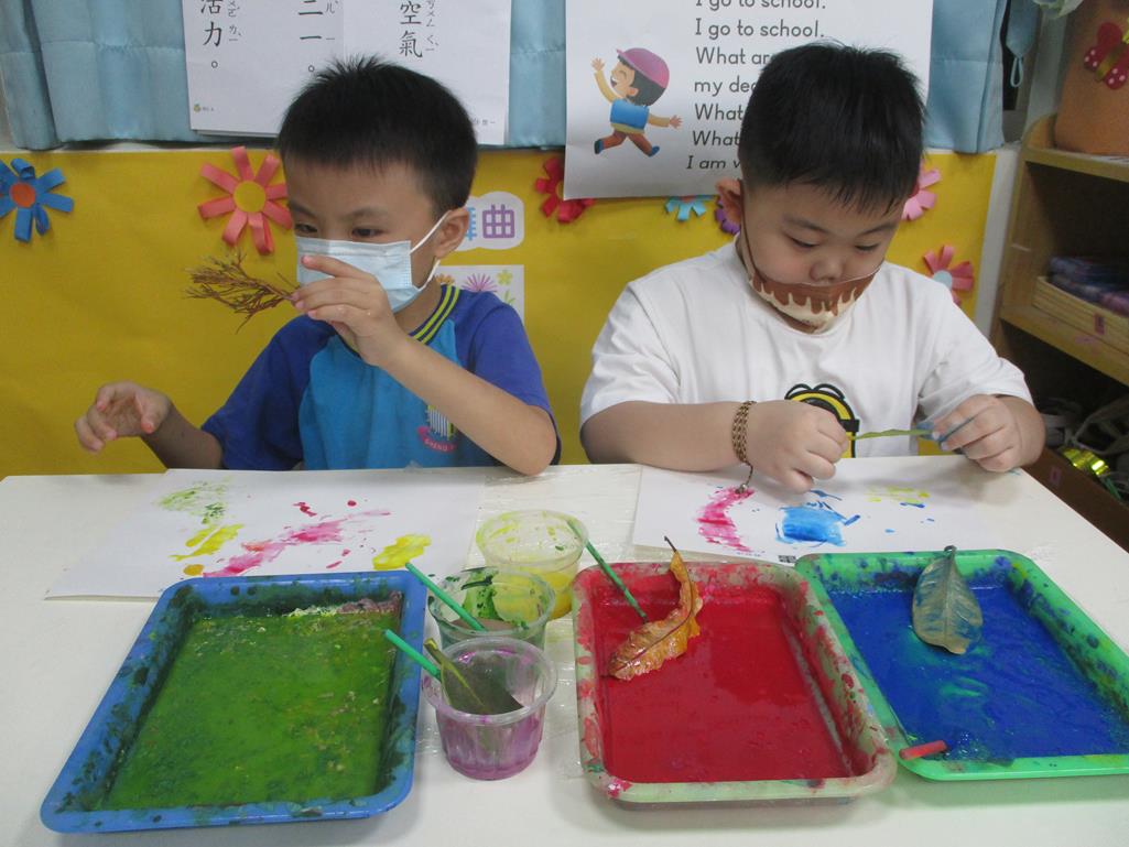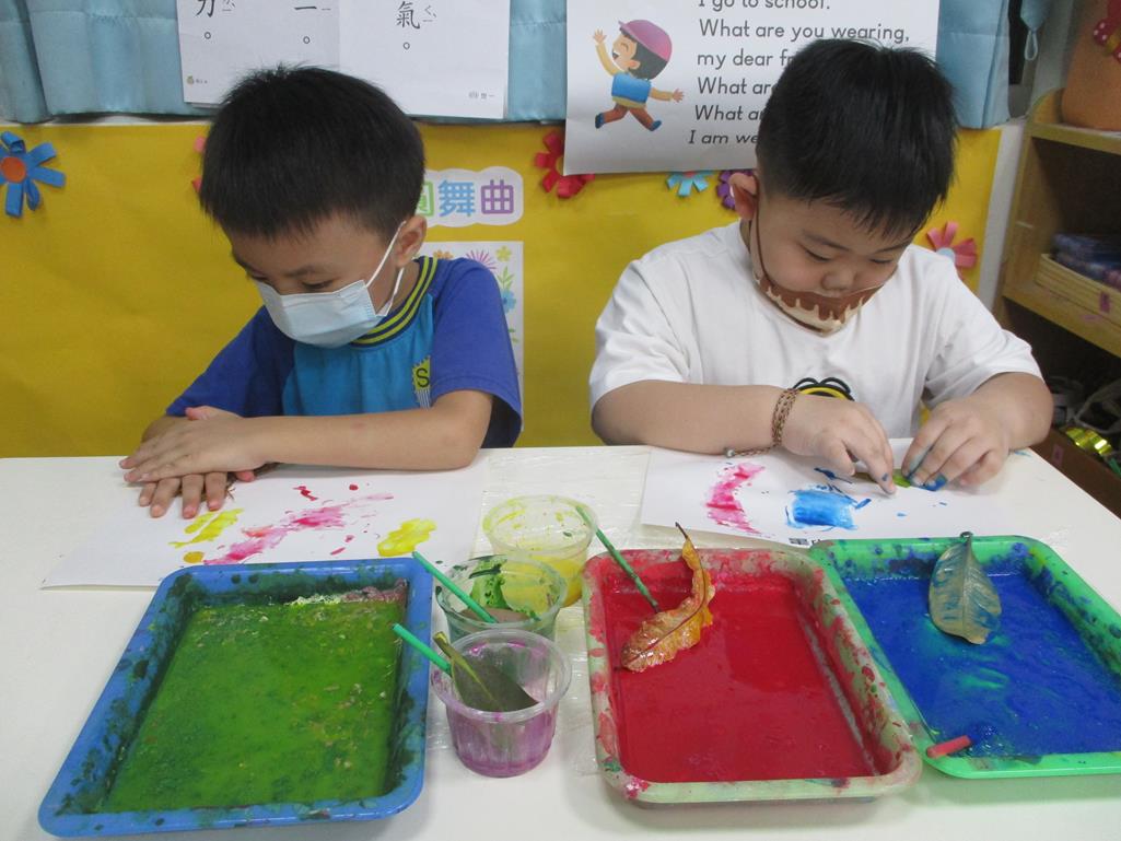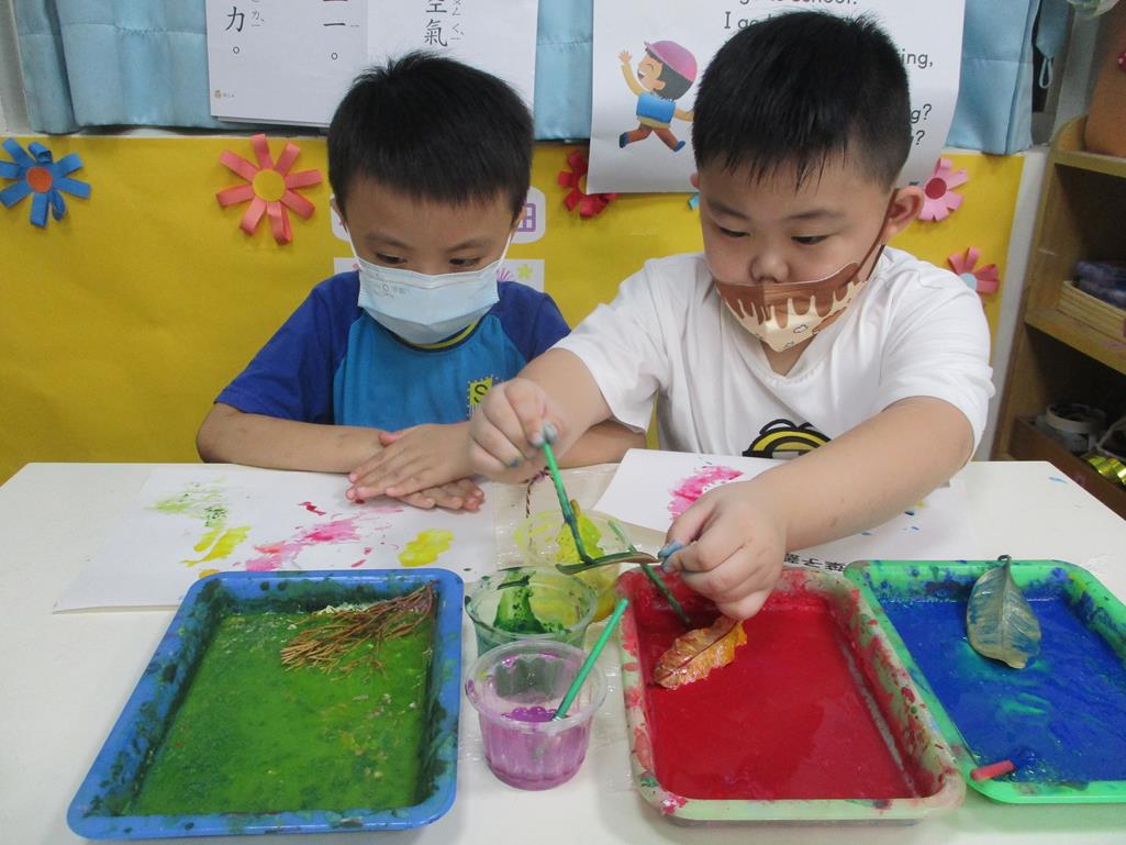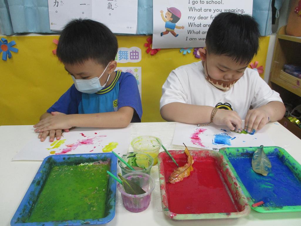 相簿名稱: 茉莉班-主題美感創作(葉子蓋印畫)