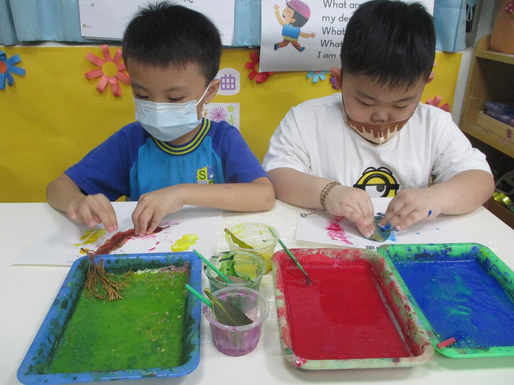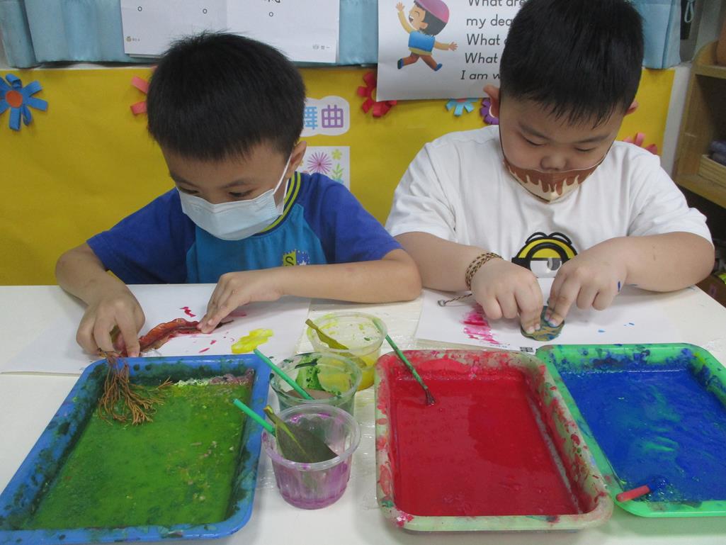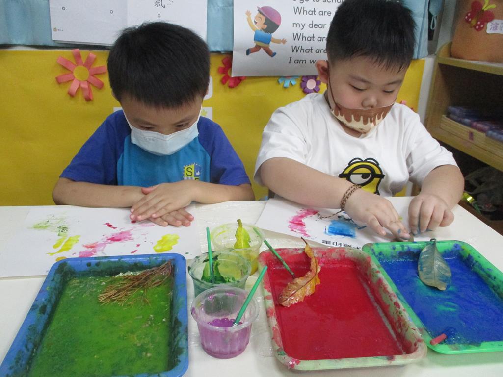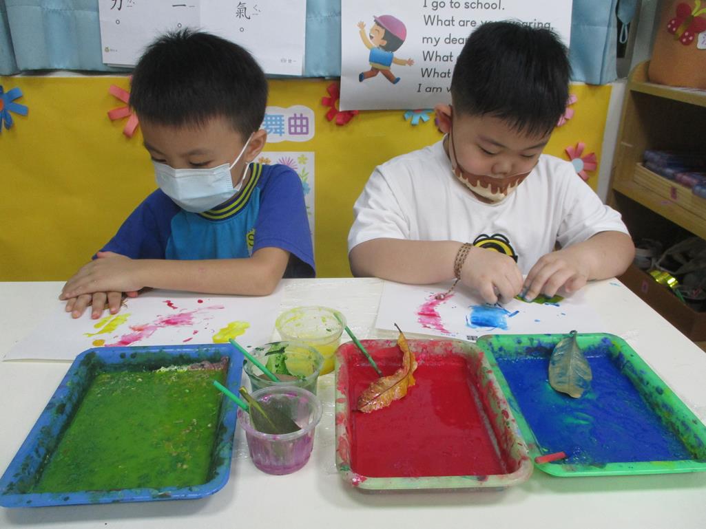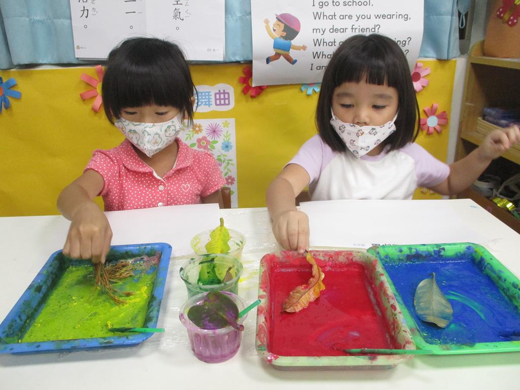 相簿名稱: 茉莉班-主題美感創作(葉子蓋印畫)