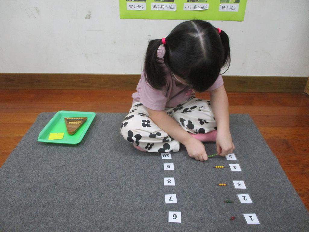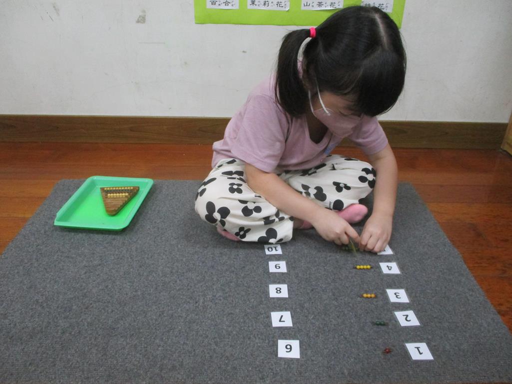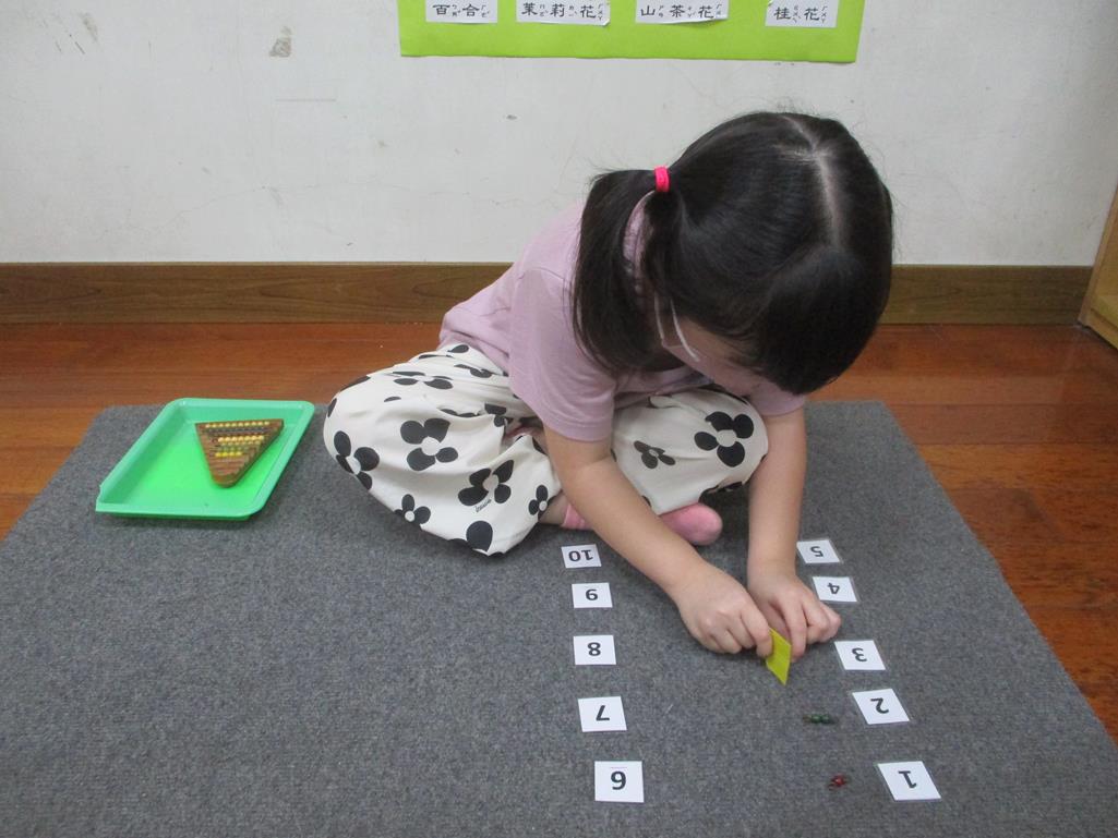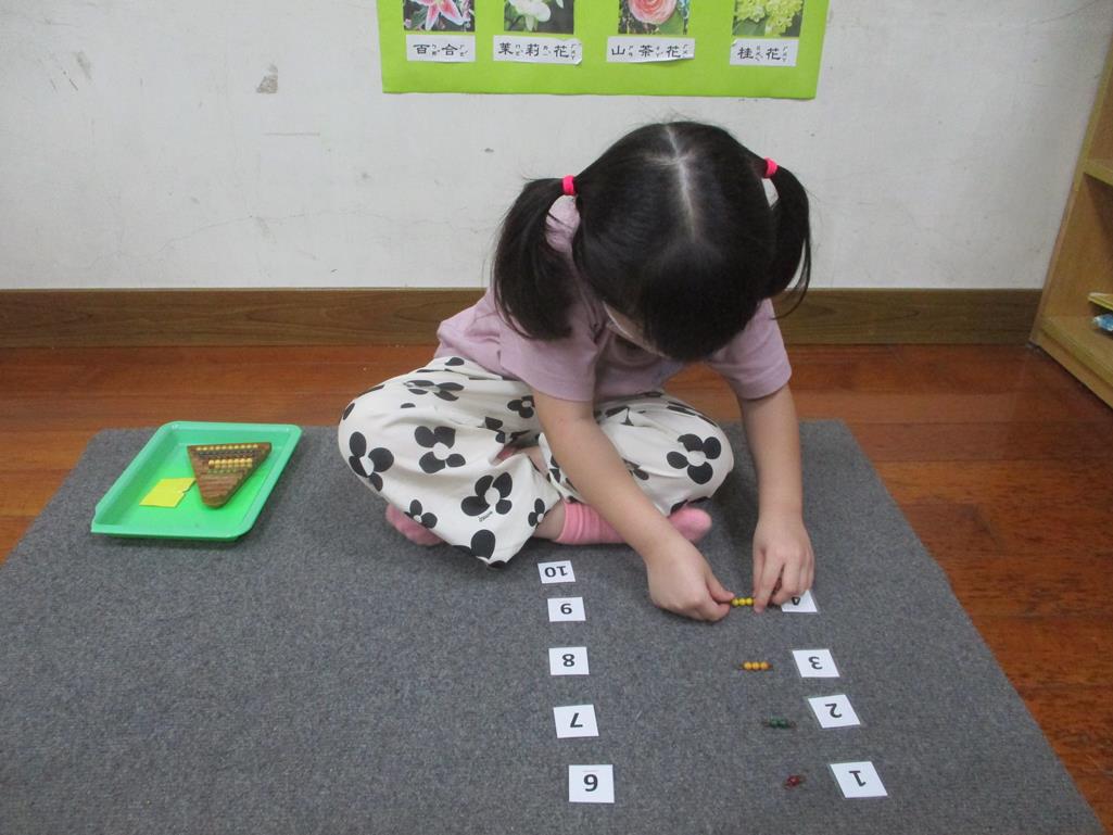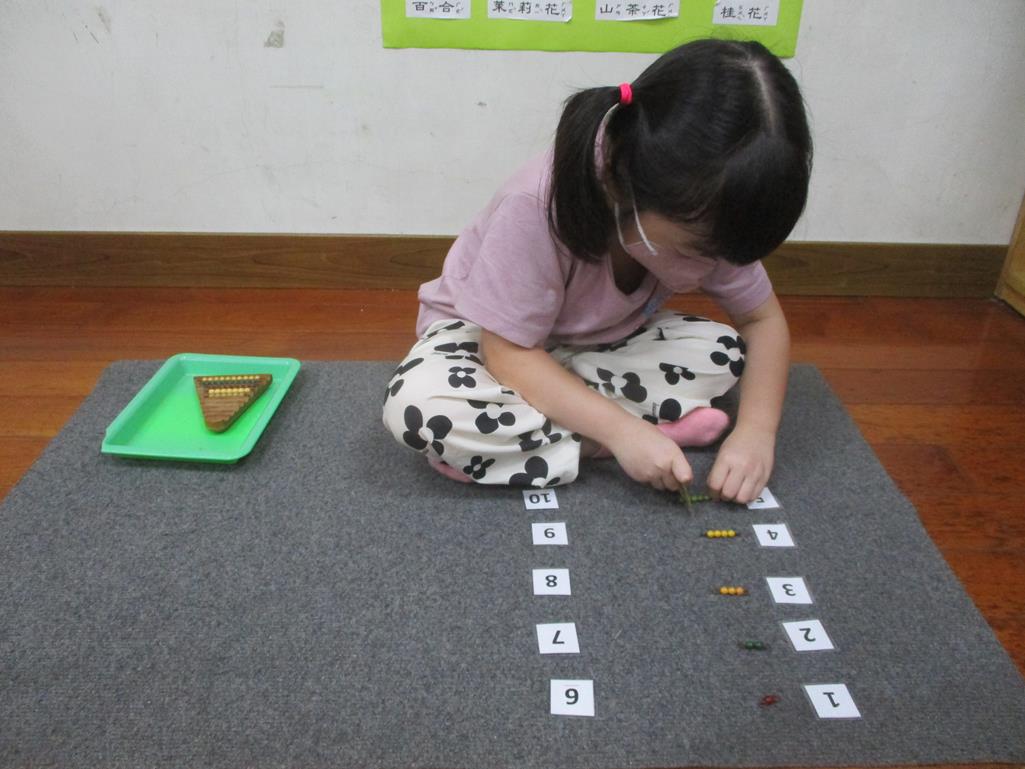 相簿名稱: 茉莉班-蒙特梭利教學(數學教育-彩色串珠1~10)
