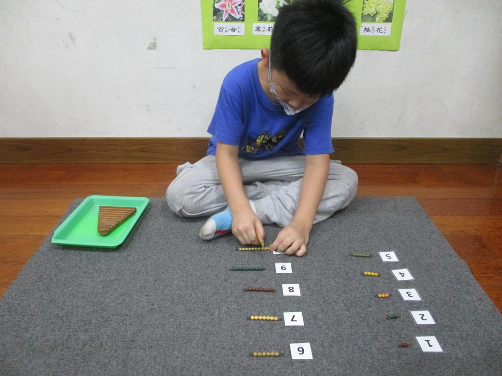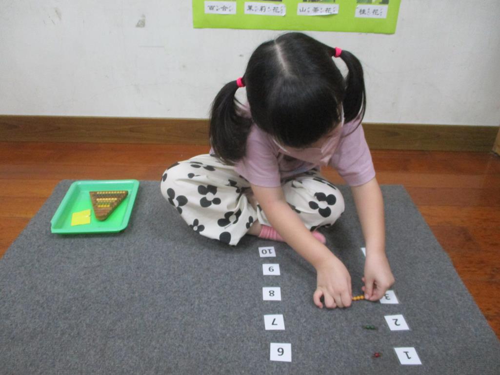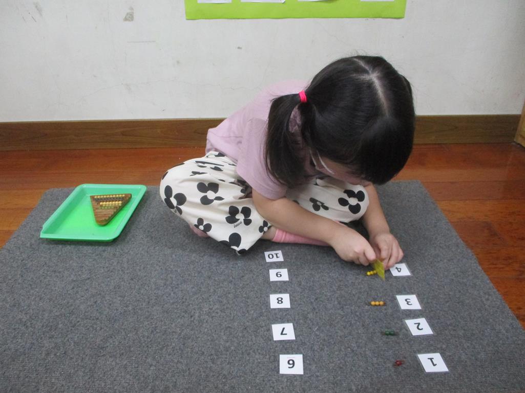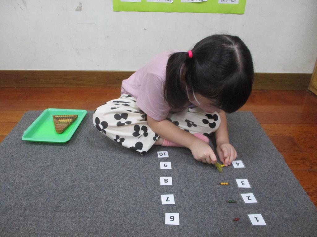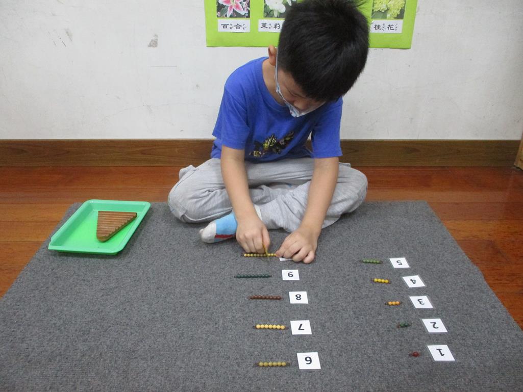 相簿名稱: 茉莉班-蒙特梭利教學(數學教育-彩色串珠1~10)