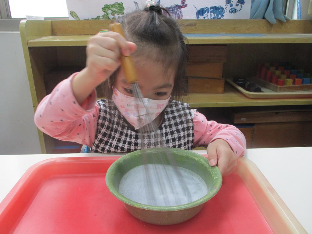 相簿名稱: 茉莉班-蒙特梭利教學(日常生活教育-打泡沫)