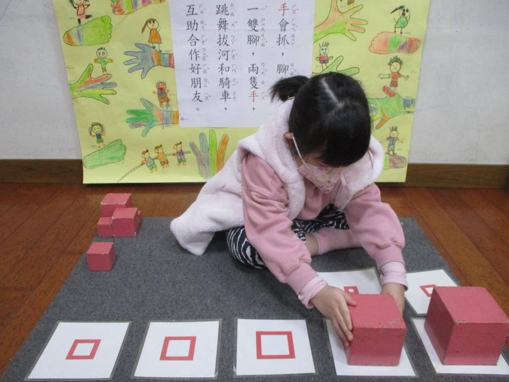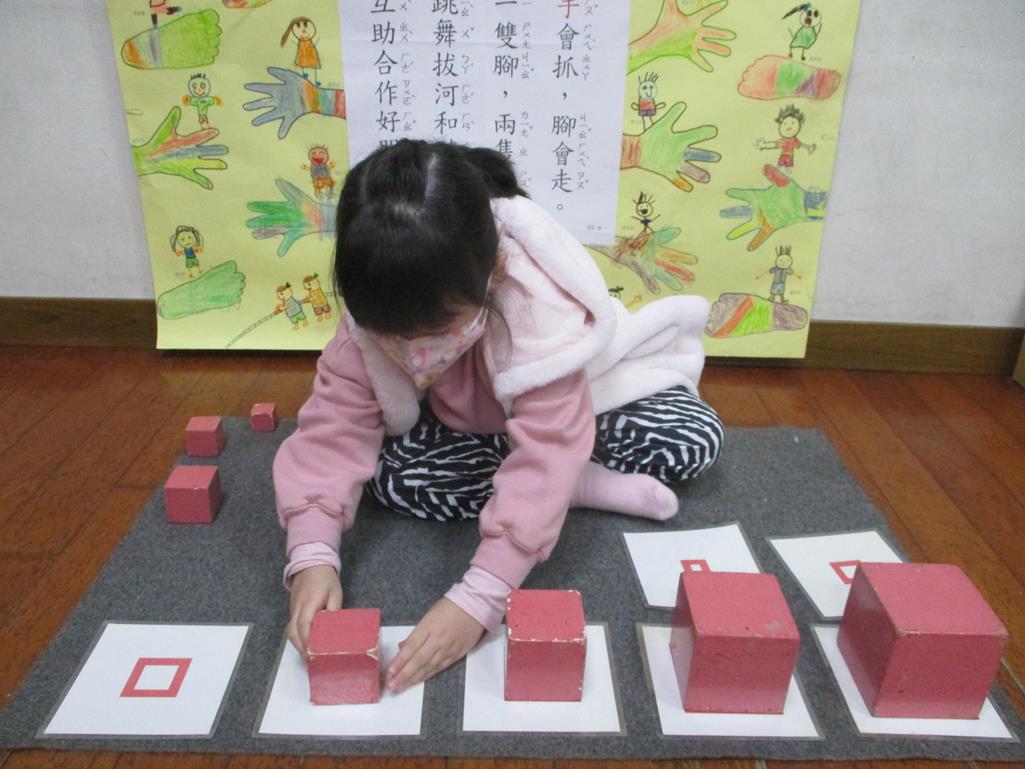 相簿名稱: 茉莉班-蒙特梭利教學(感官教育-粉紅塔+粗線卡)