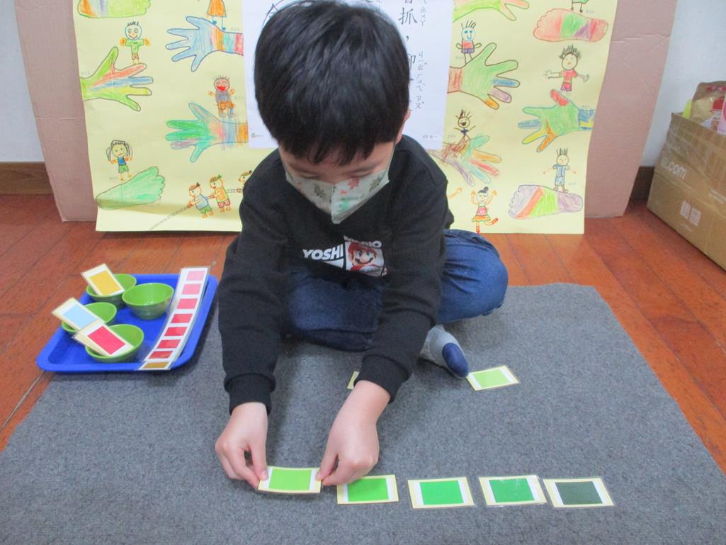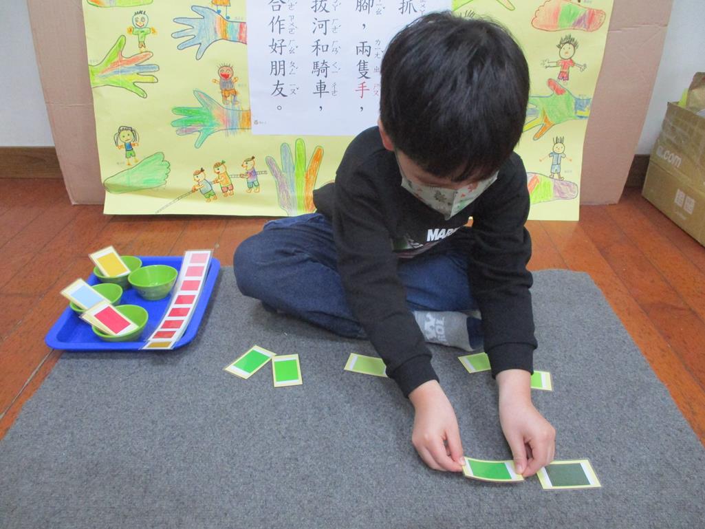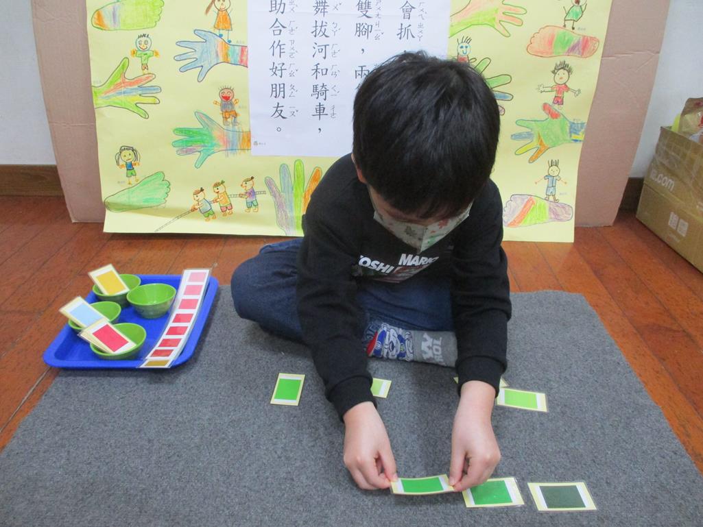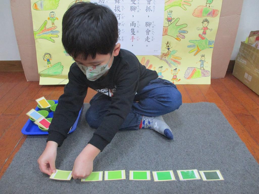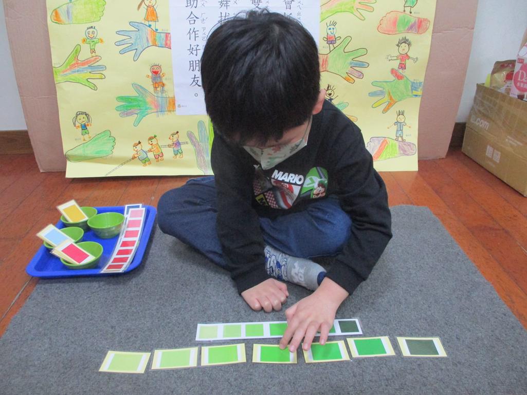 相簿名稱: 茉莉班-蒙特梭利教學(感官教育-色板依序 由深至淺)