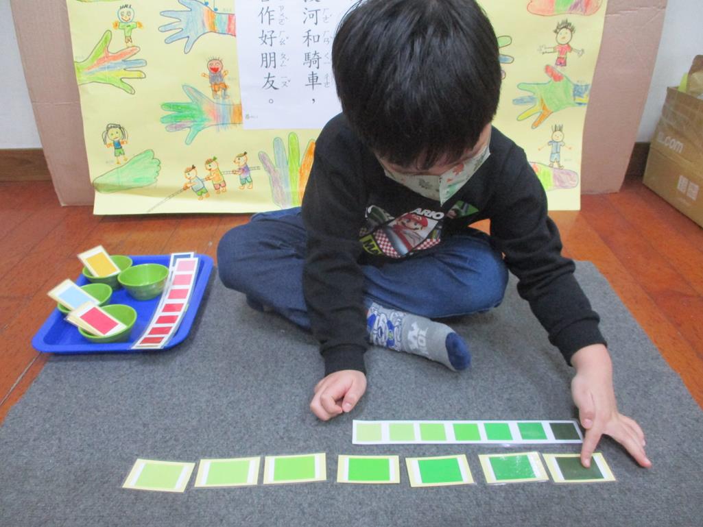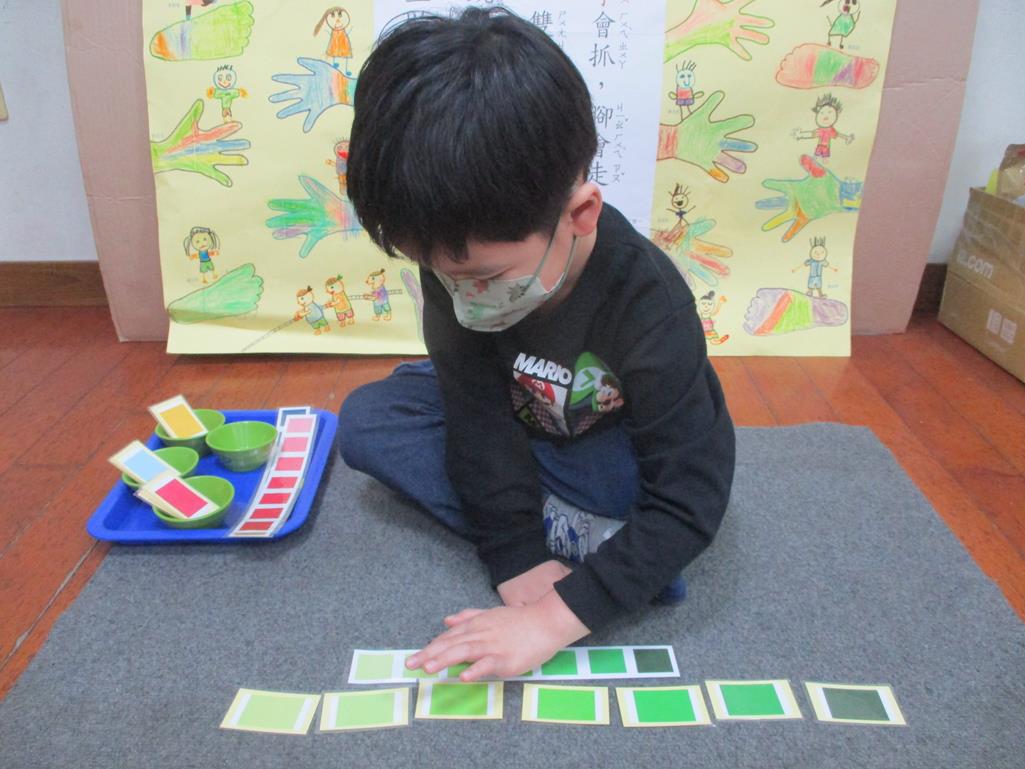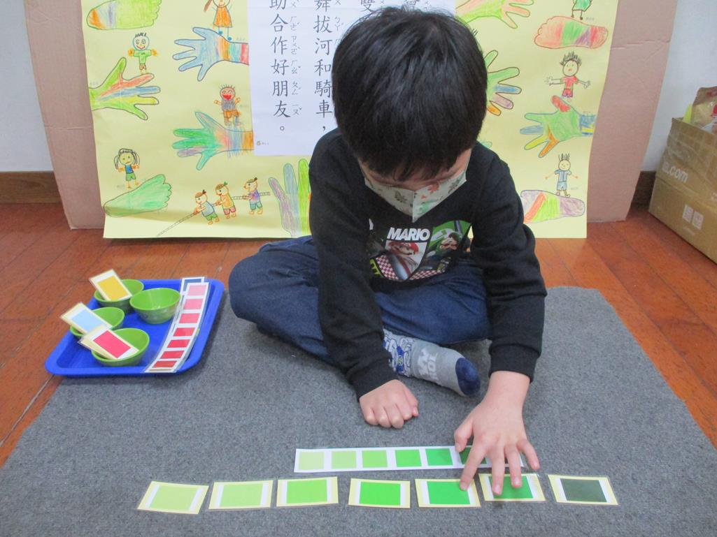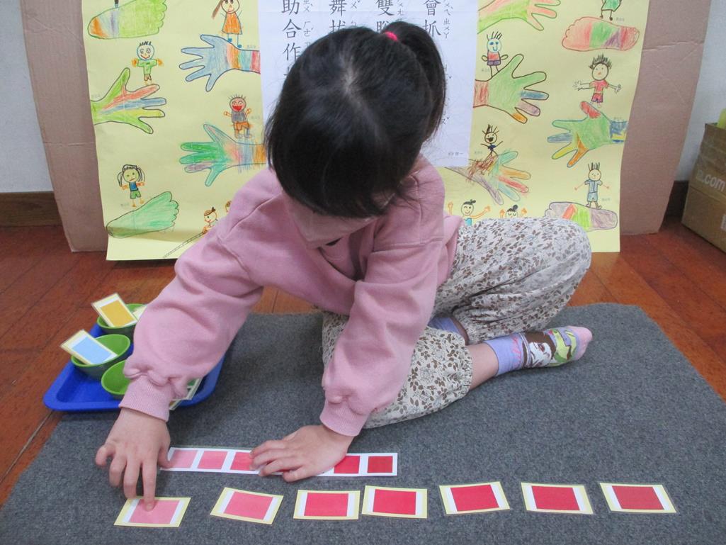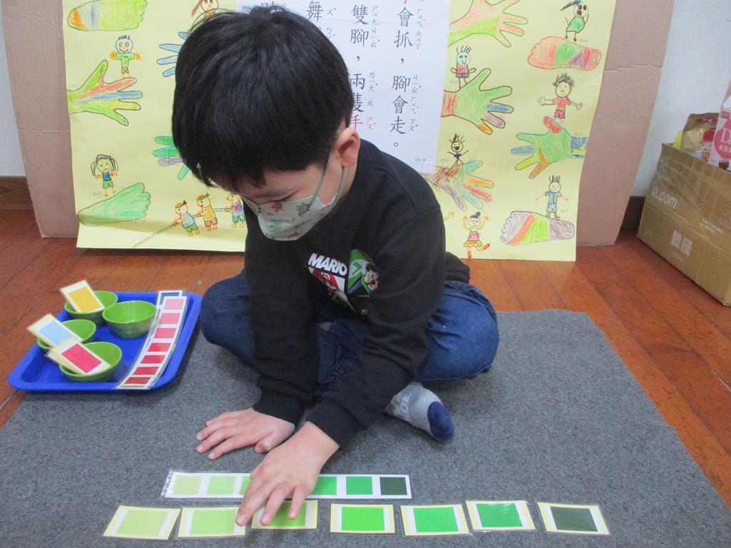 相簿名稱: 茉莉班-蒙特梭利教學(感官教育-色板依序 由深至淺)