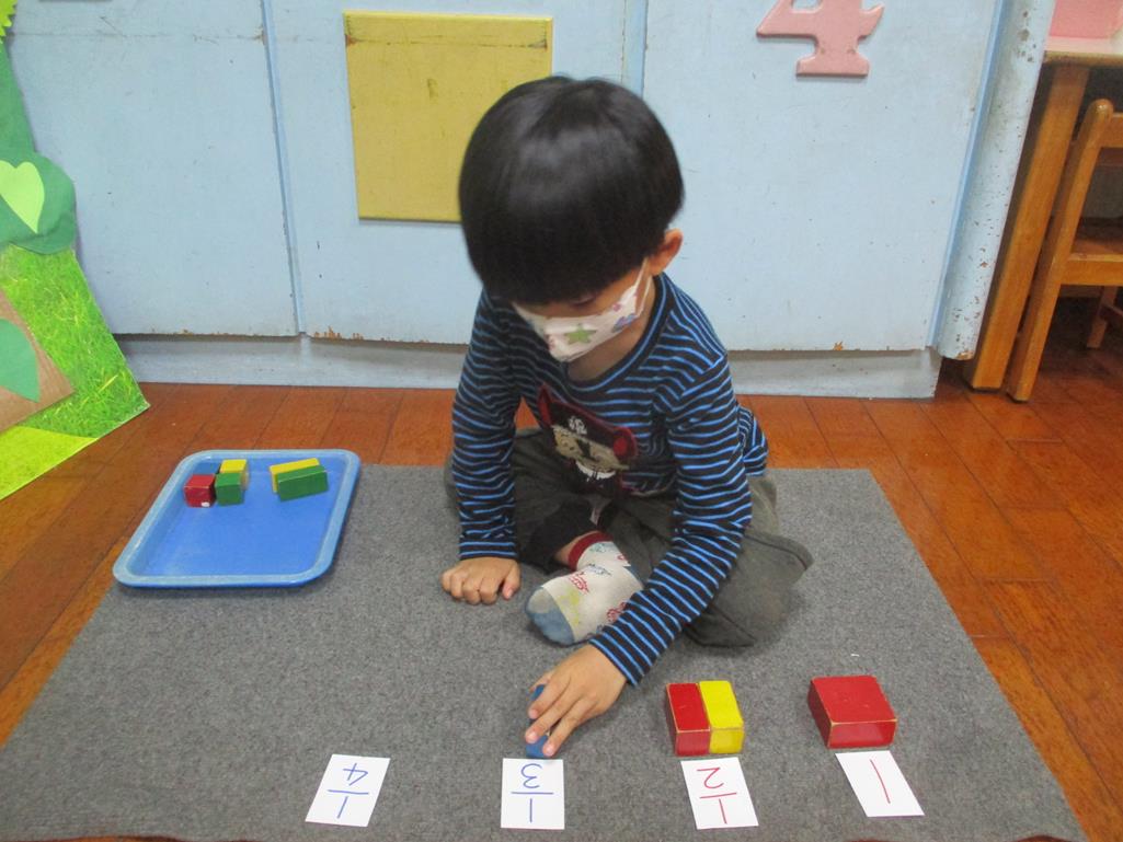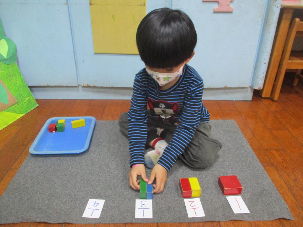 相簿名稱: 茉莉班-蒙特梭利教學(數學教育-幾何分數套(正方形))