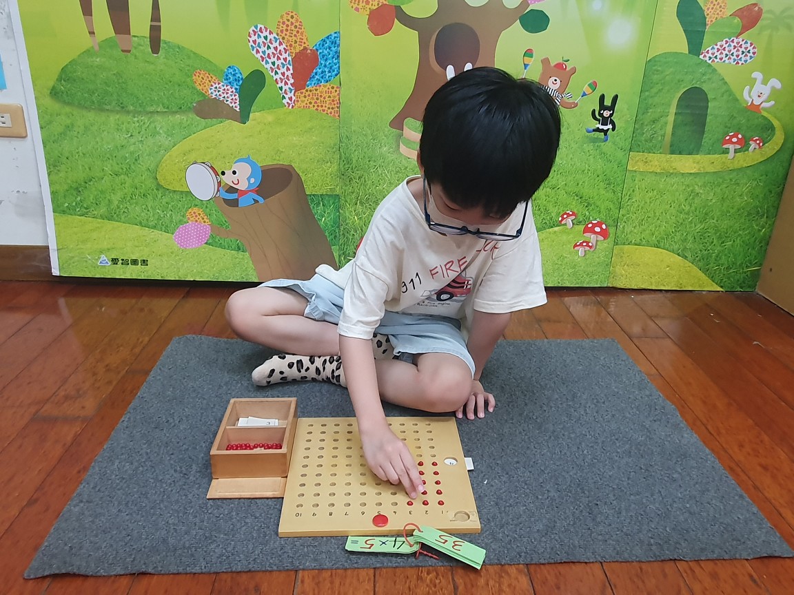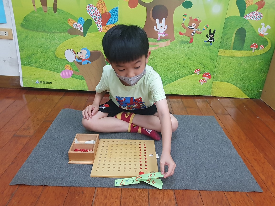 相簿名稱: 向日葵班-蒙特梭利教學(數學教育-乘算板)