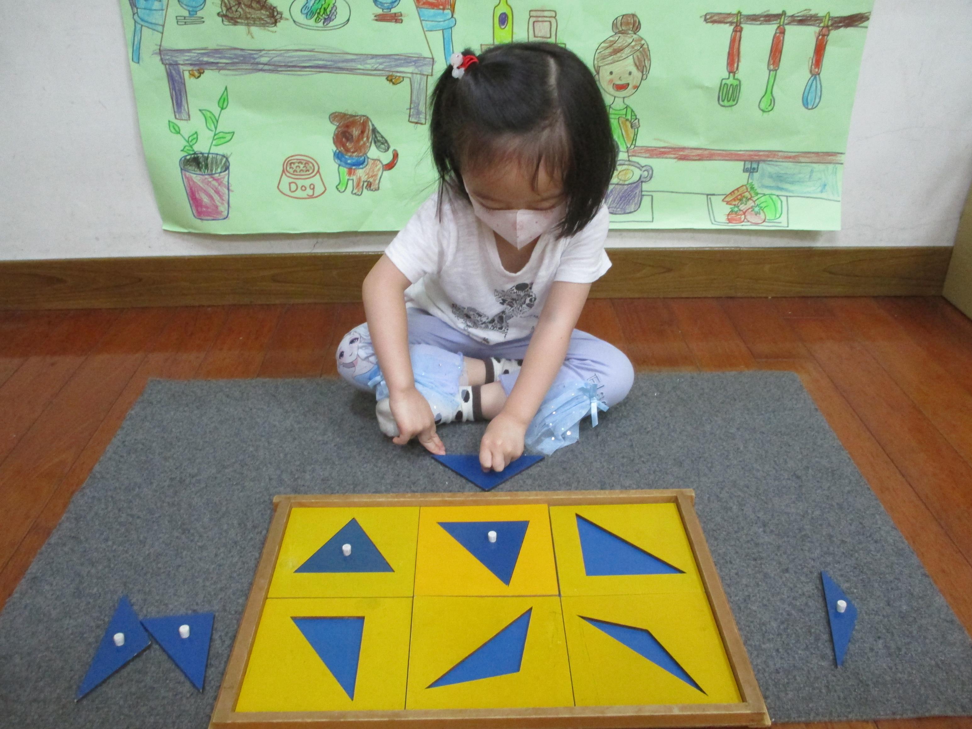 相簿名稱: 茉莉班-蒙特梭利教學(感官教育-幾何嵌圖櫥三角形)