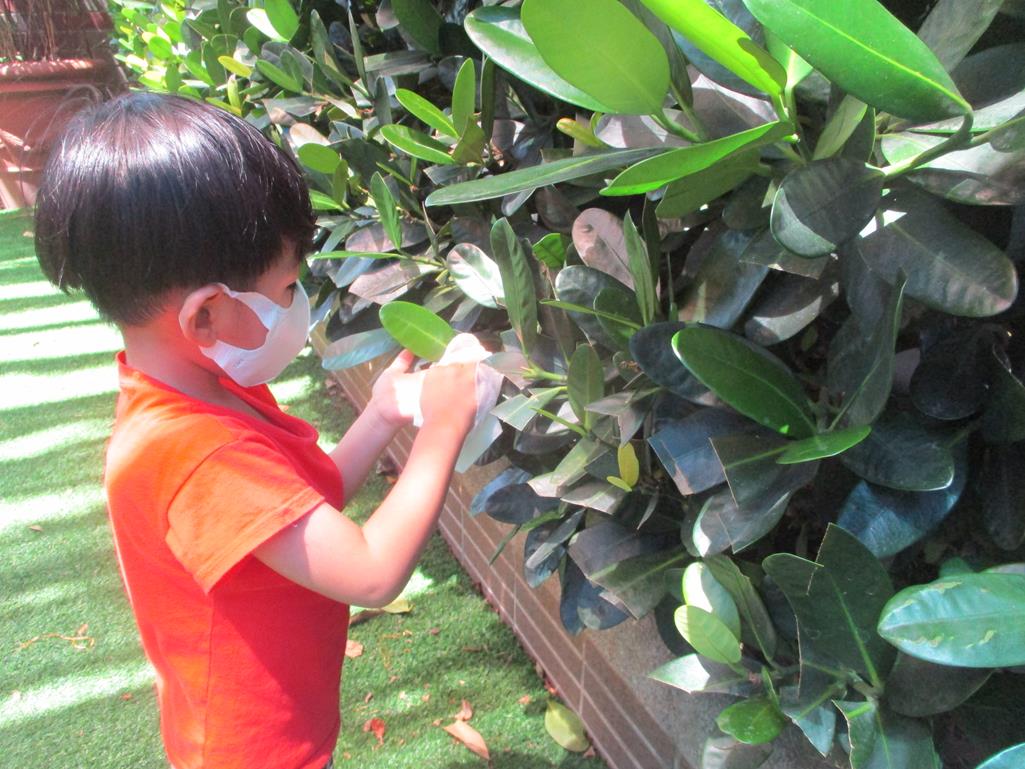 相簿名稱: 茉莉班-蒙特梭利教學(日常生活教育-植物照顧-擦葉子&澆水)