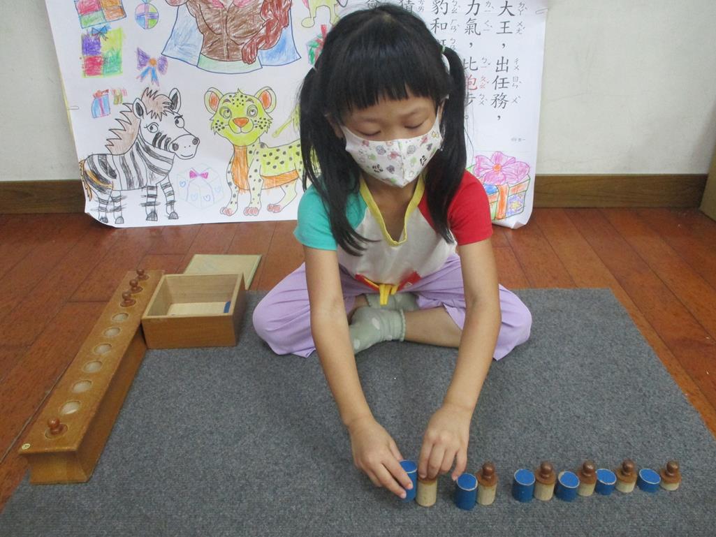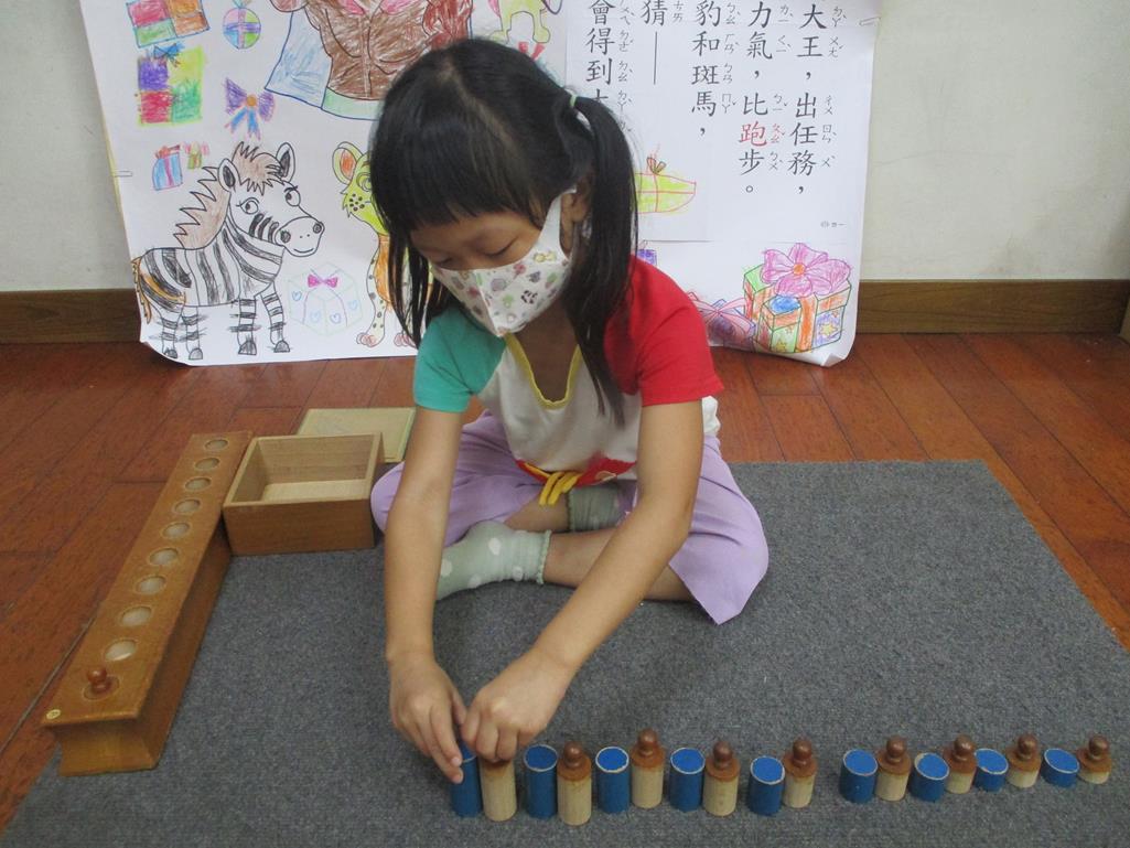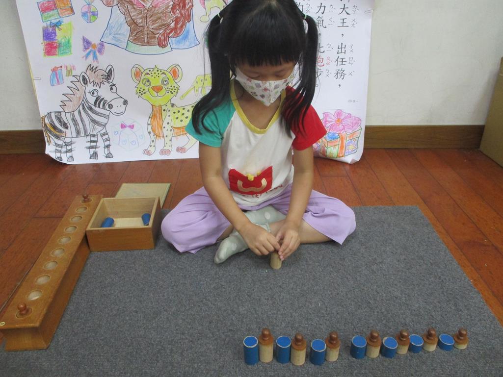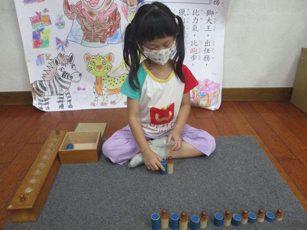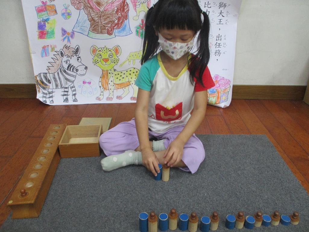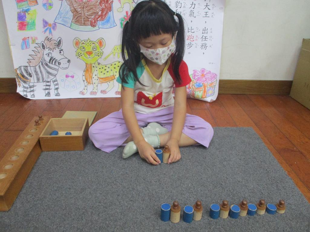 相簿名稱: 茉莉班-蒙特梭利教學(數學教育-藍色圖柱+有柄圓柱)