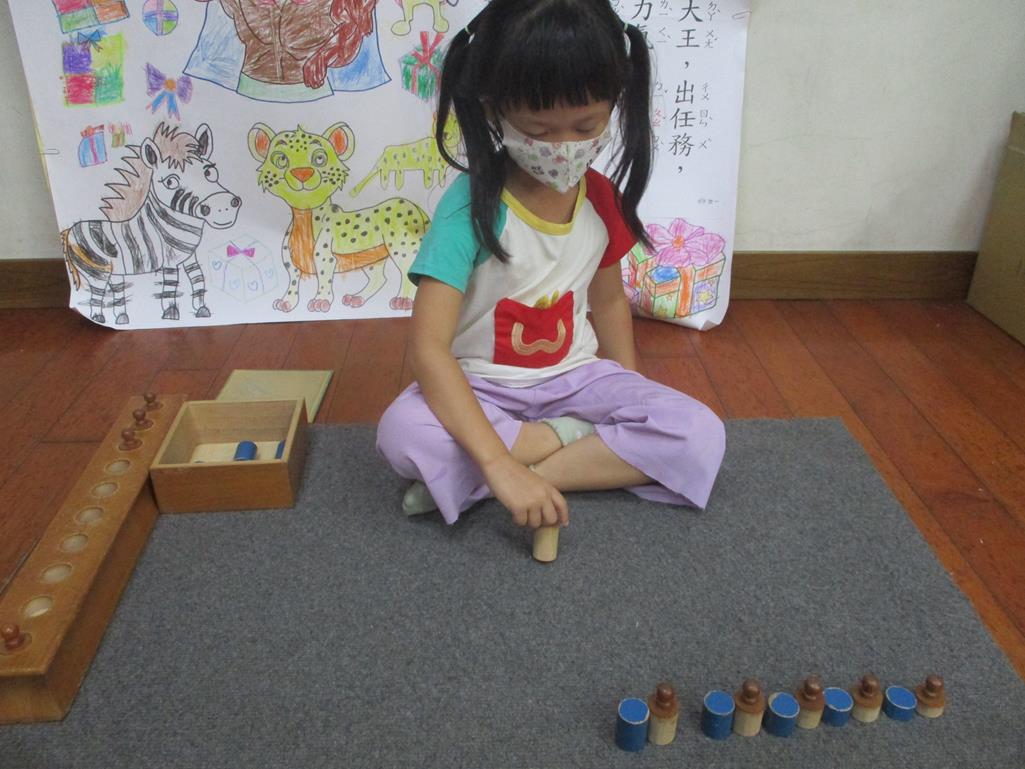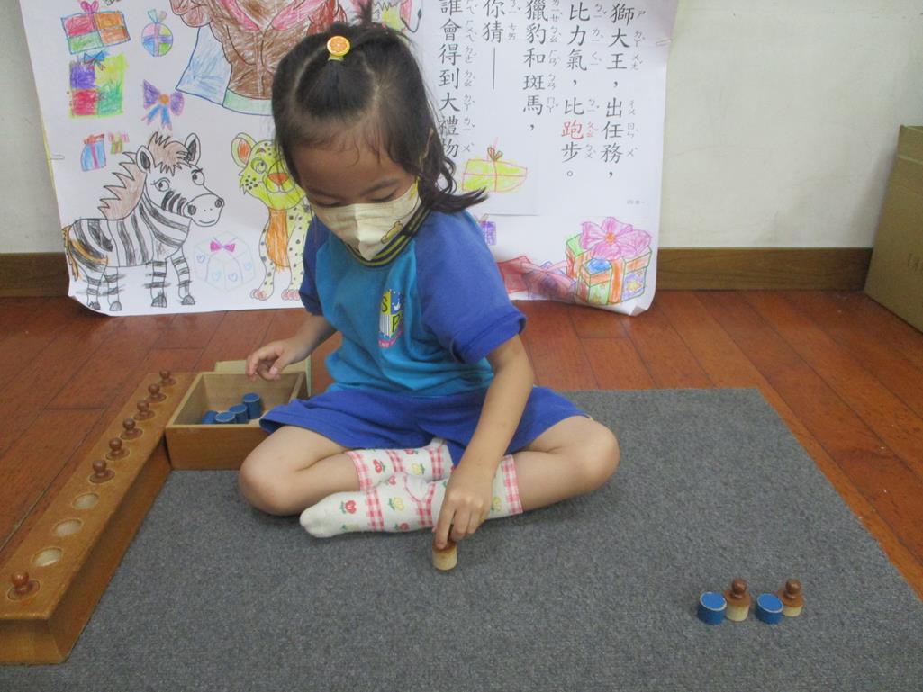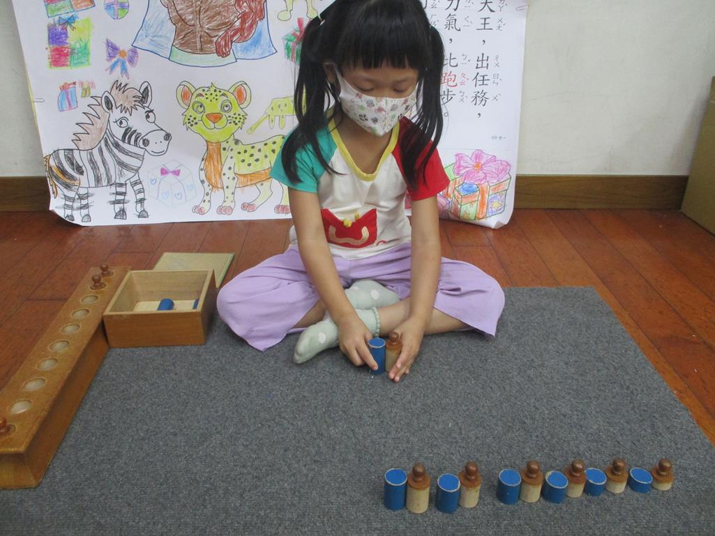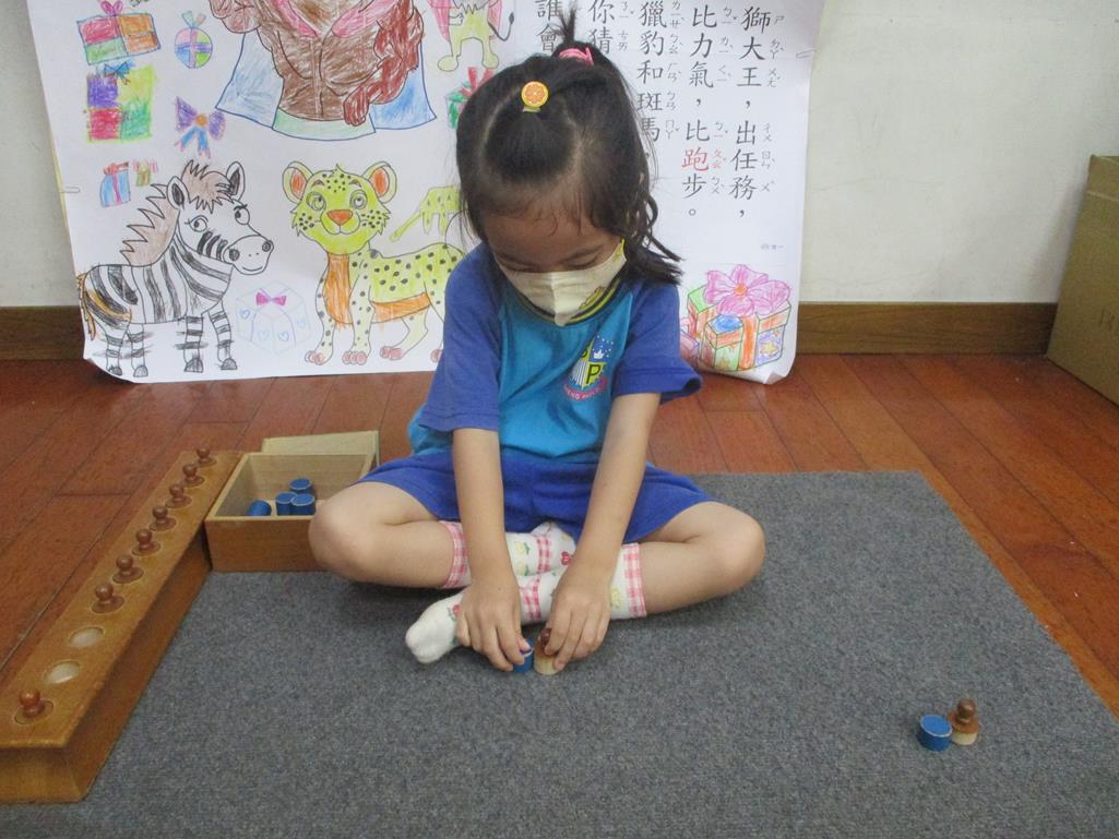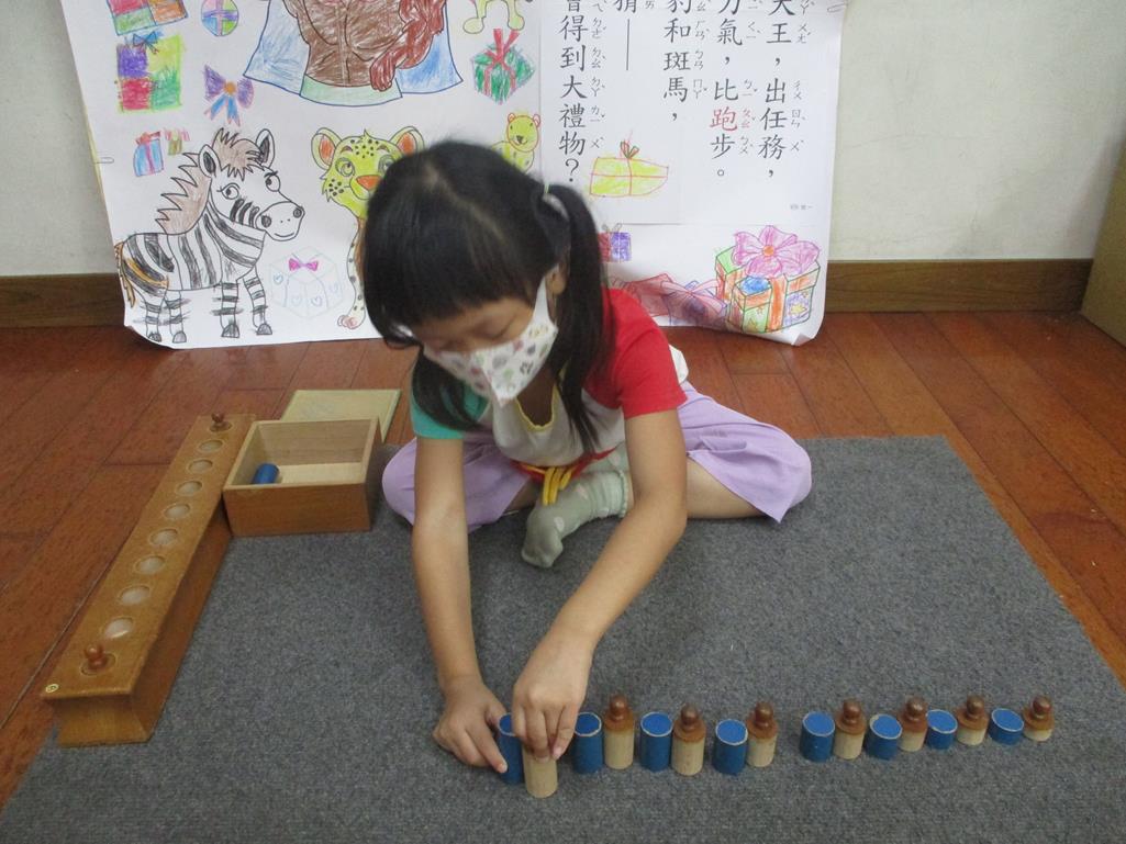 相簿名稱: 茉莉班-蒙特梭利教學(數學教育-藍色圖柱+有柄圓柱)