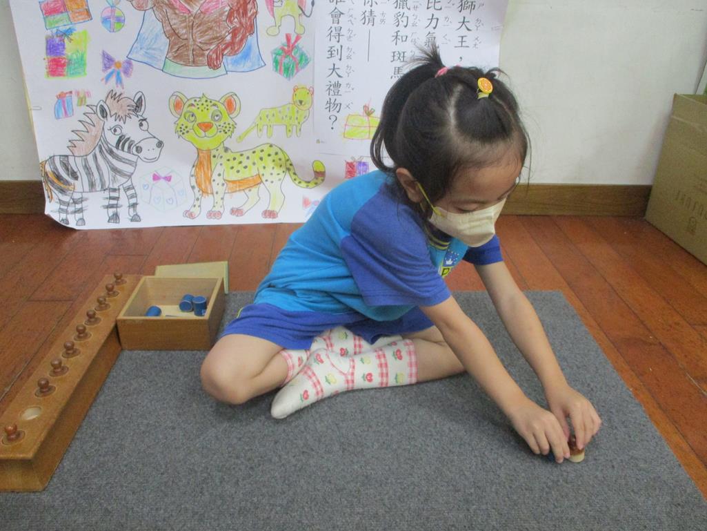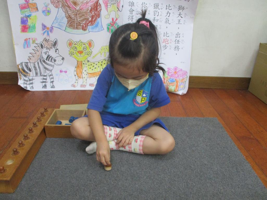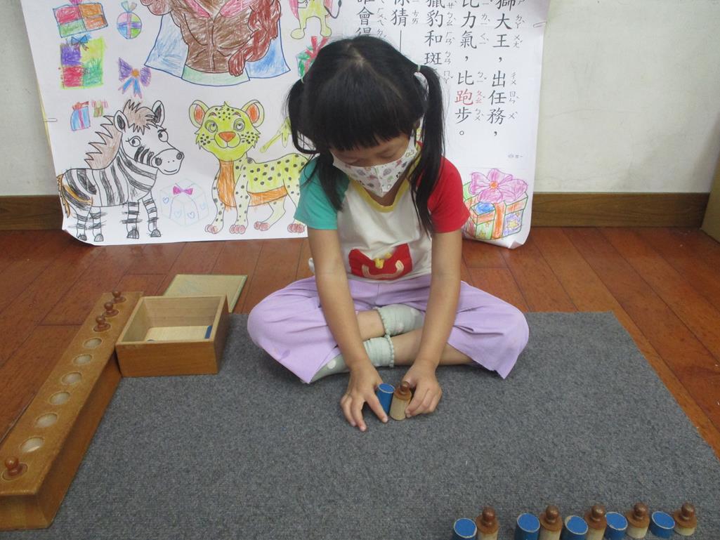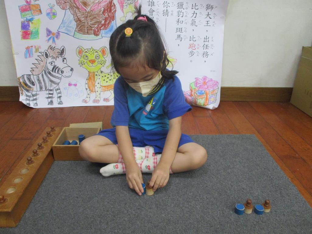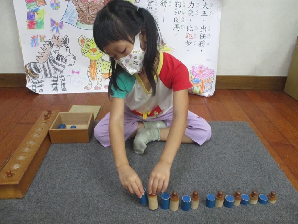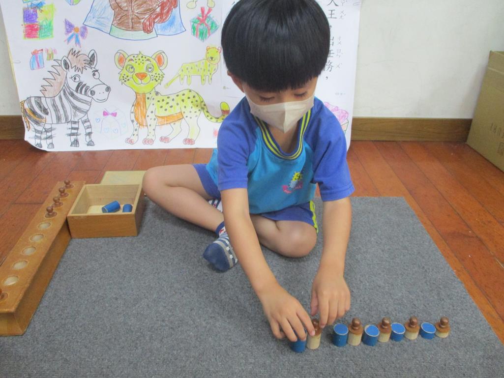 相簿名稱: 茉莉班-蒙特梭利教學(數學教育-藍色圖柱+有柄圓柱)
