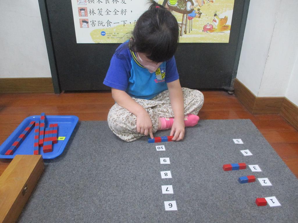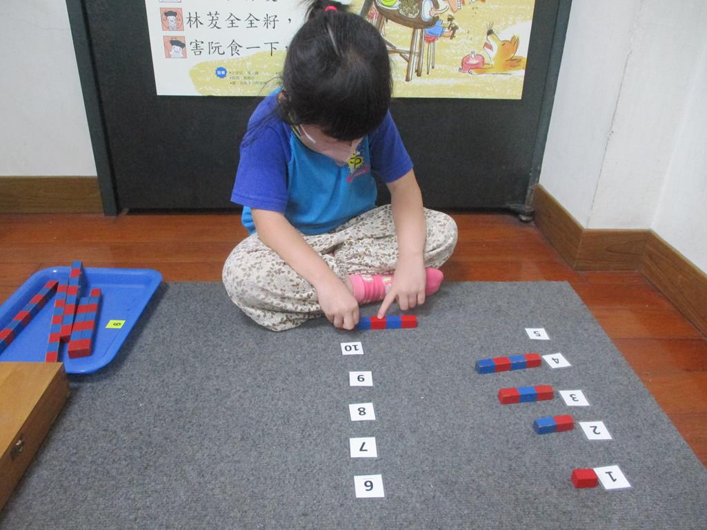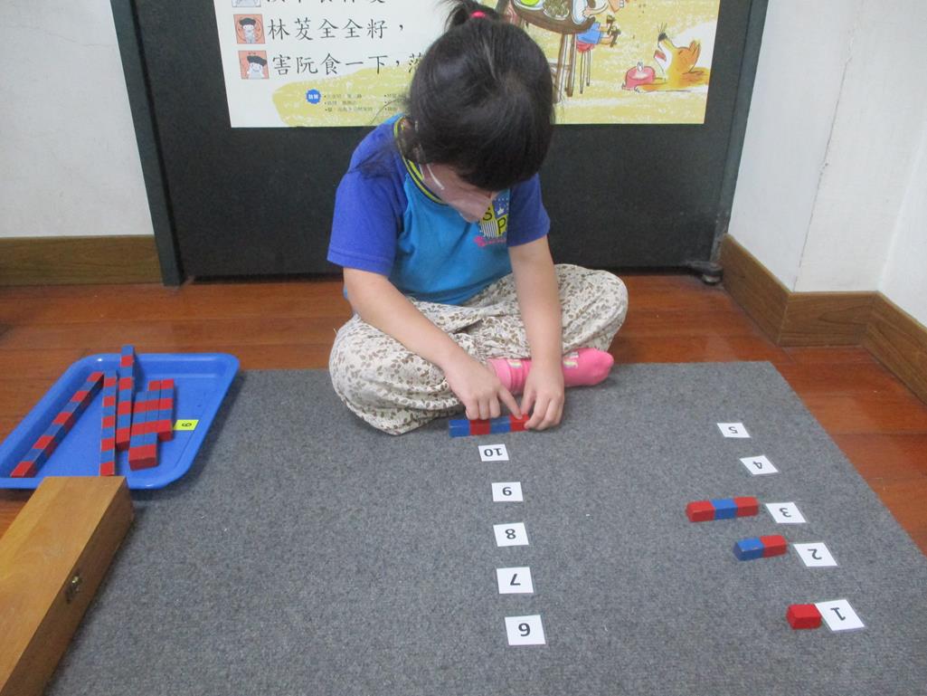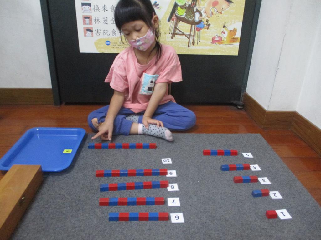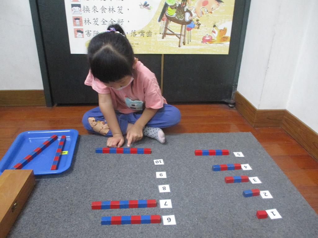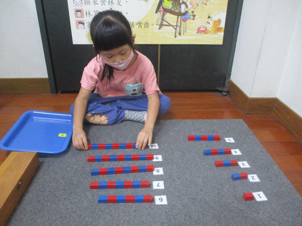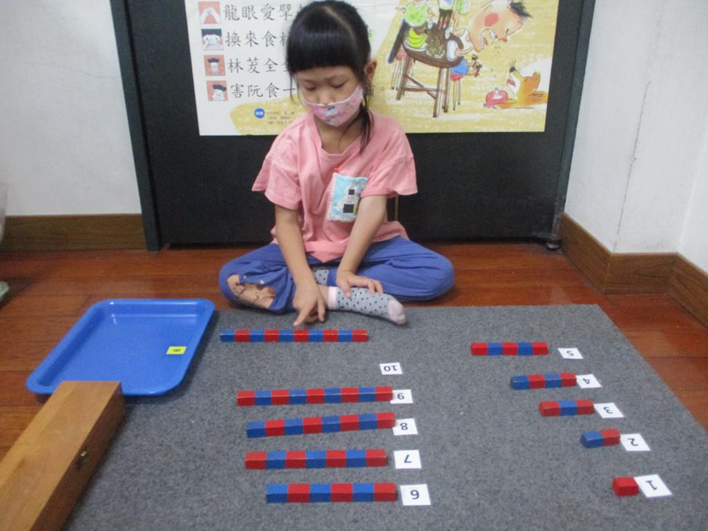 相簿名稱: 茉莉班-蒙特梭利教學(數學教育-數棒+1~10字卡&數棒(紙上作業))