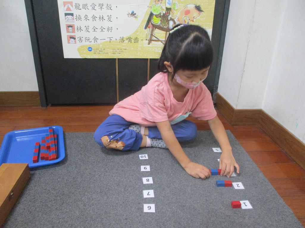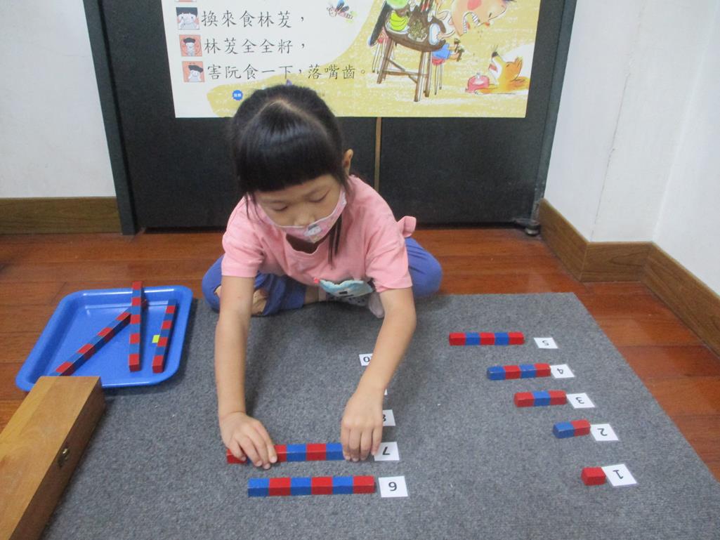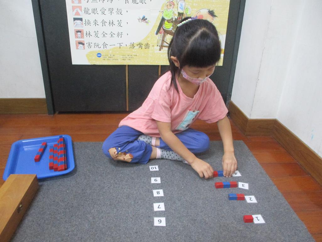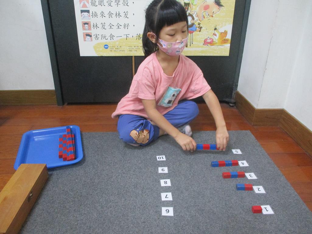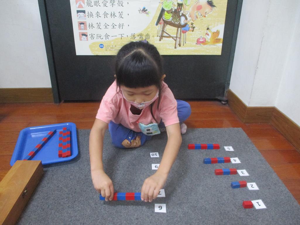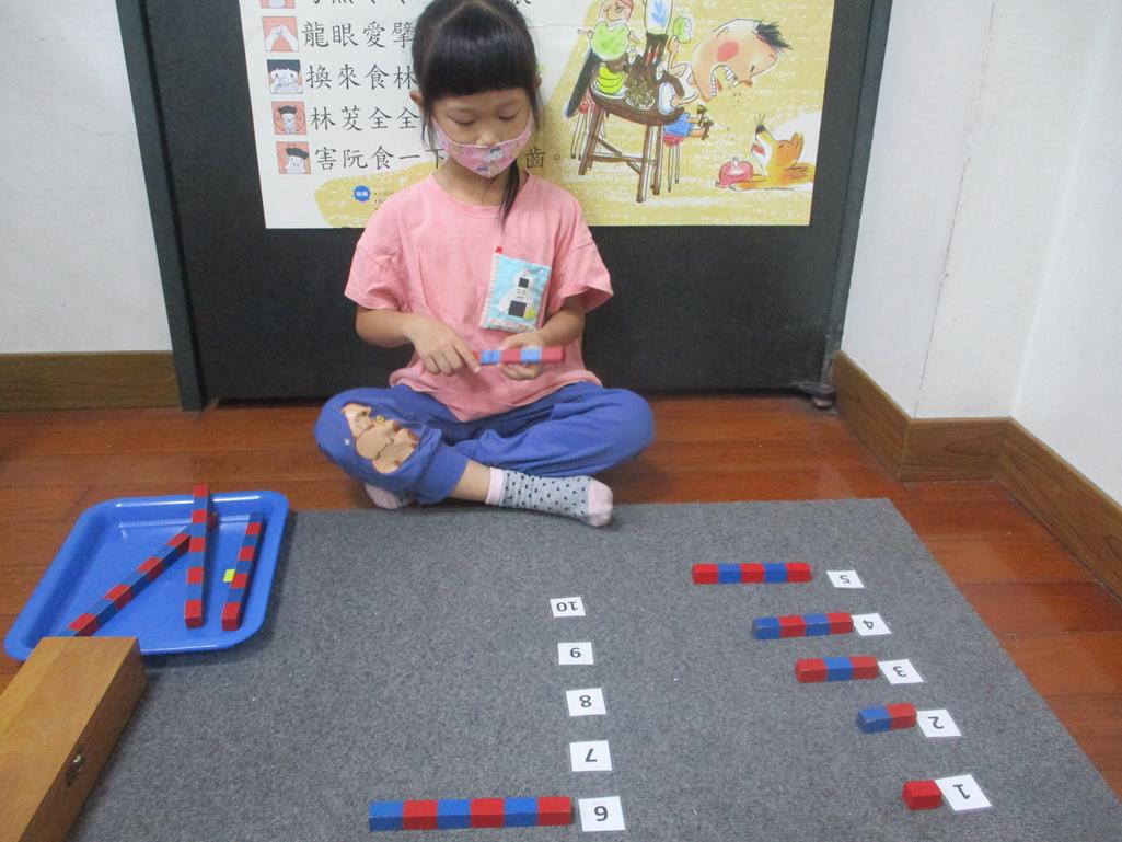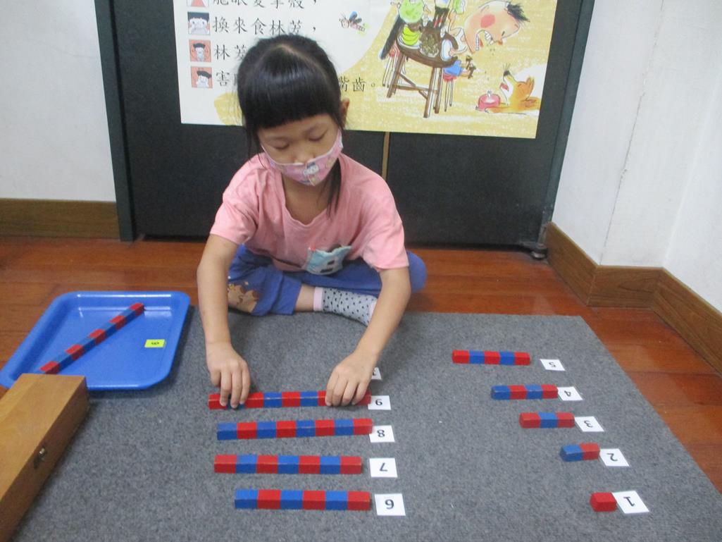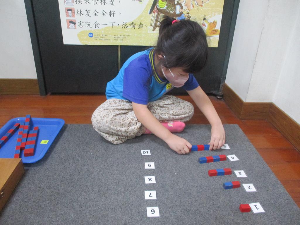 相簿名稱: 茉莉班-蒙特梭利教學(數學教育-數棒+1~10字卡&數棒(紙上作業))