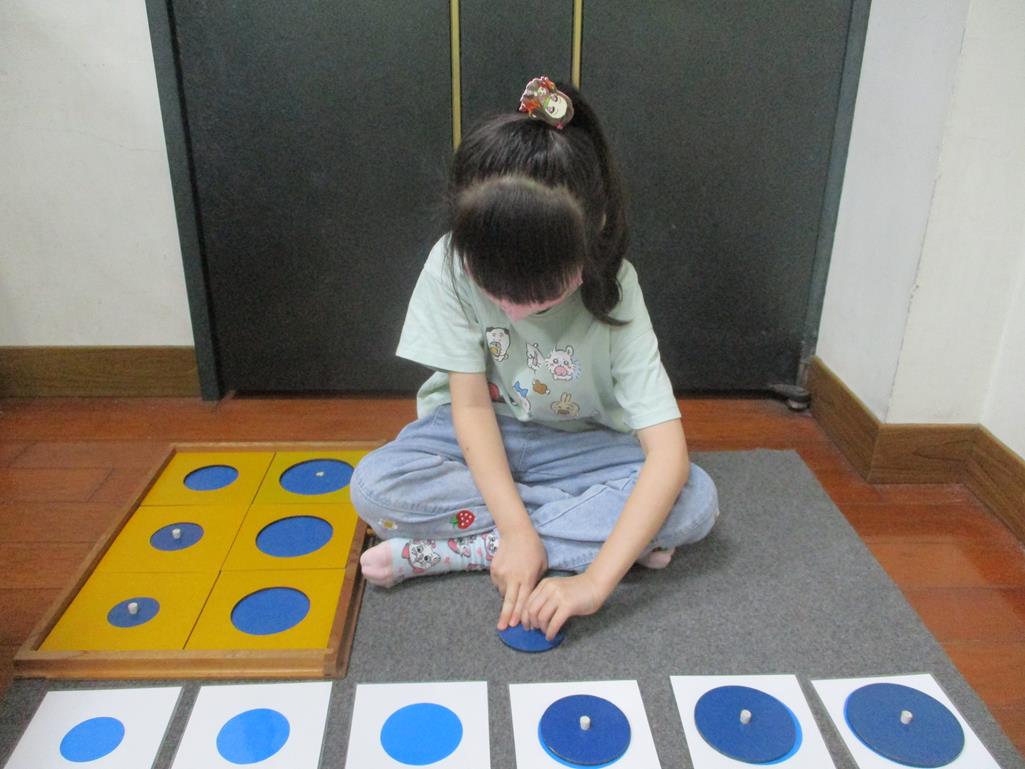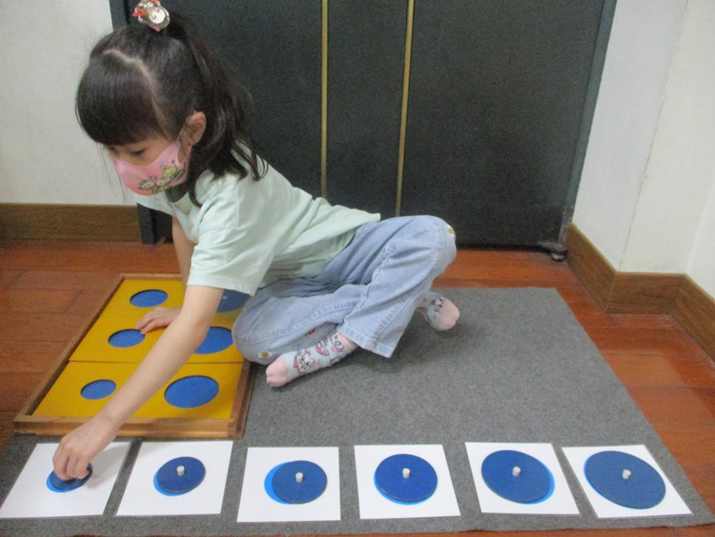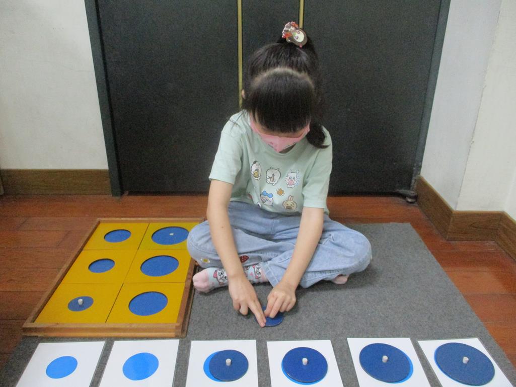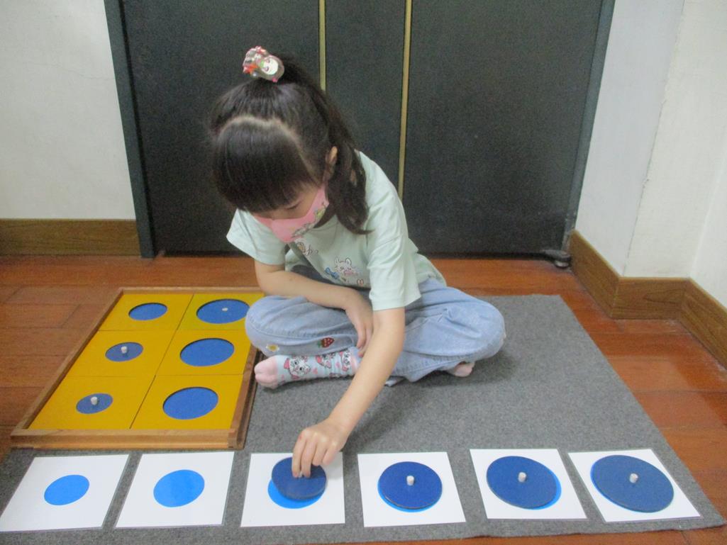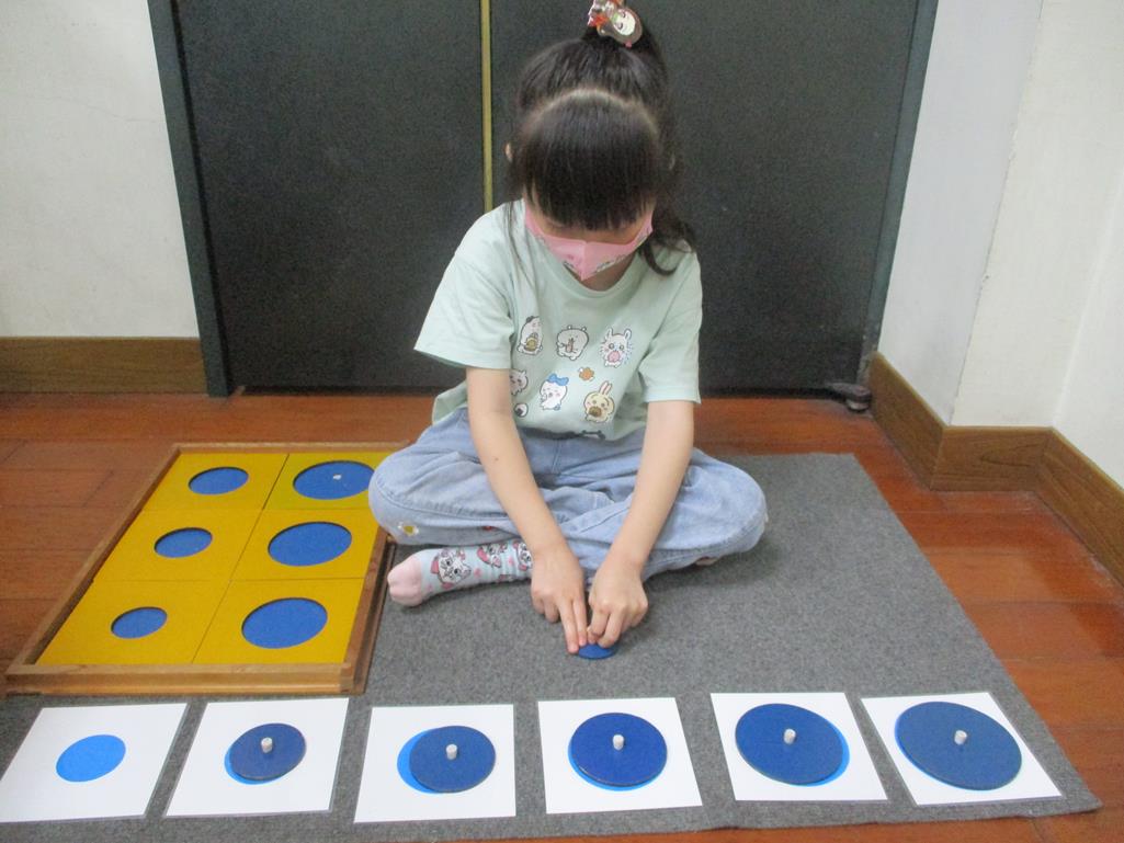 相簿名稱: 茉莉班-蒙特梭利教學(感官教育-幾何拼圖櫥(圓形)+實心卡)