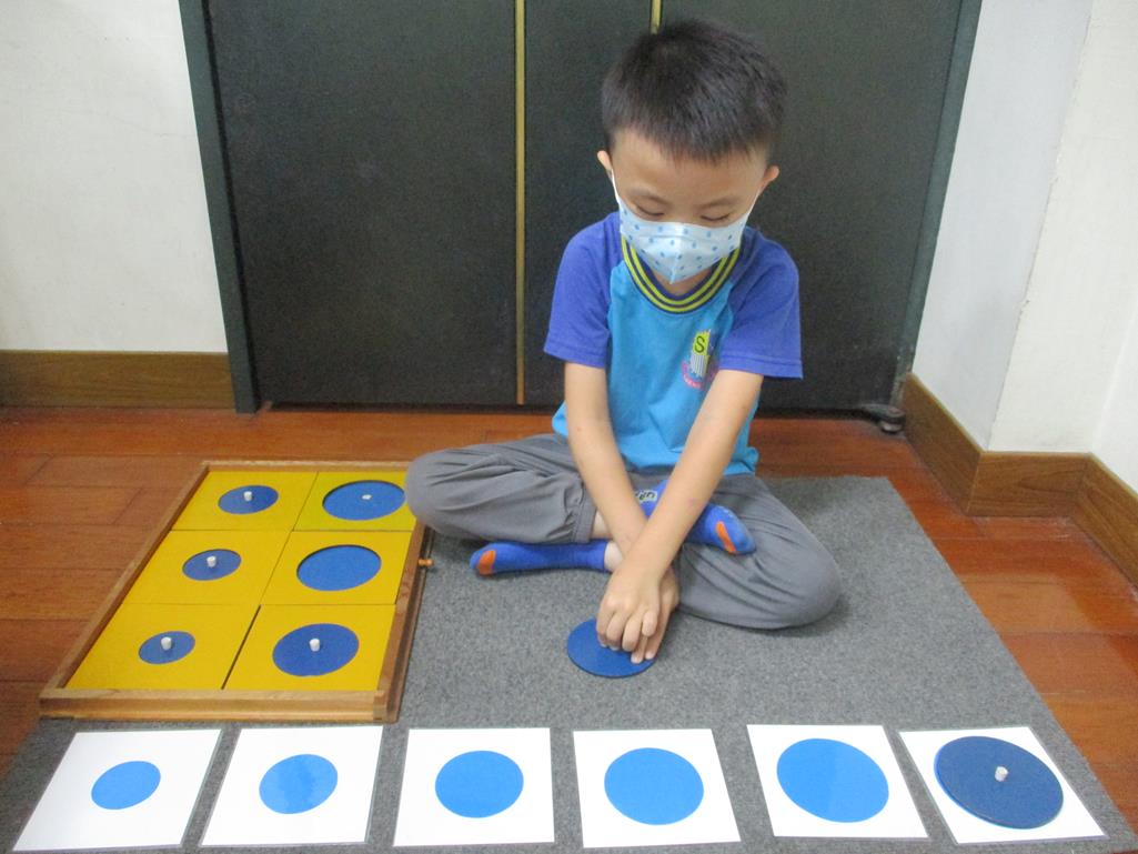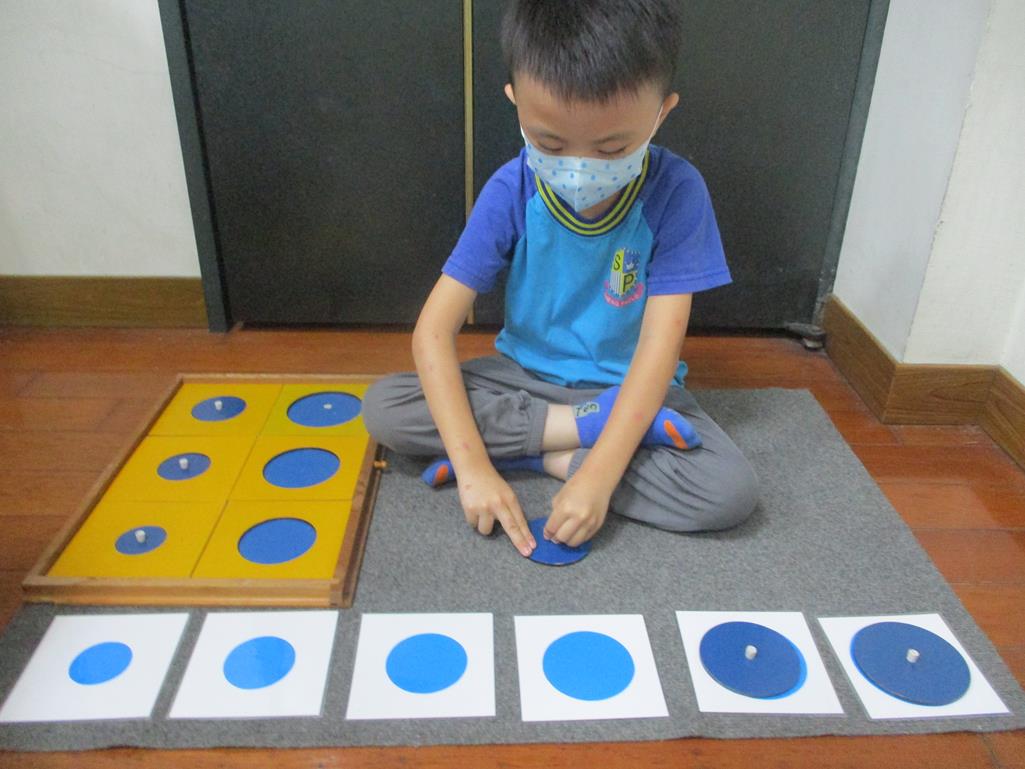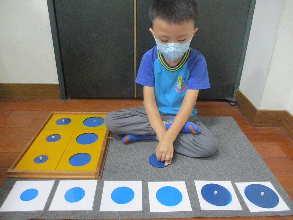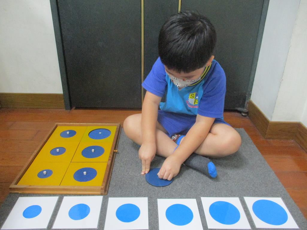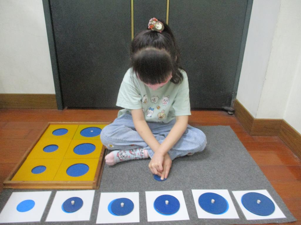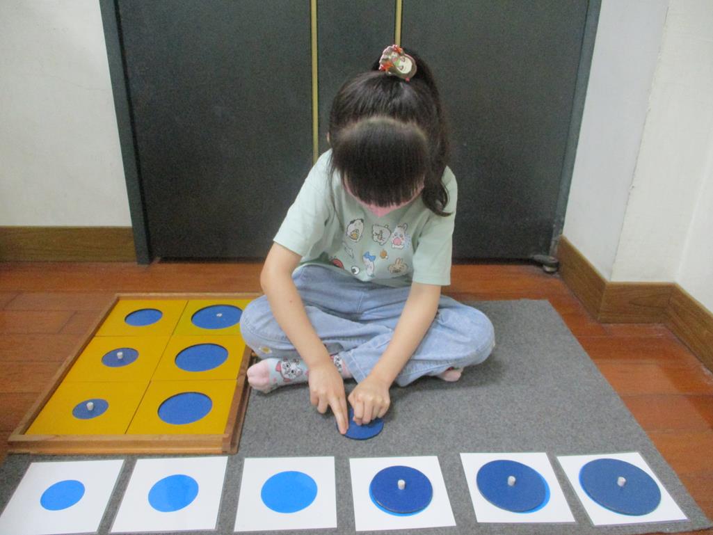 相簿名稱: 茉莉班-蒙特梭利教學(感官教育-幾何拼圖櫥(圓形)+實心卡)