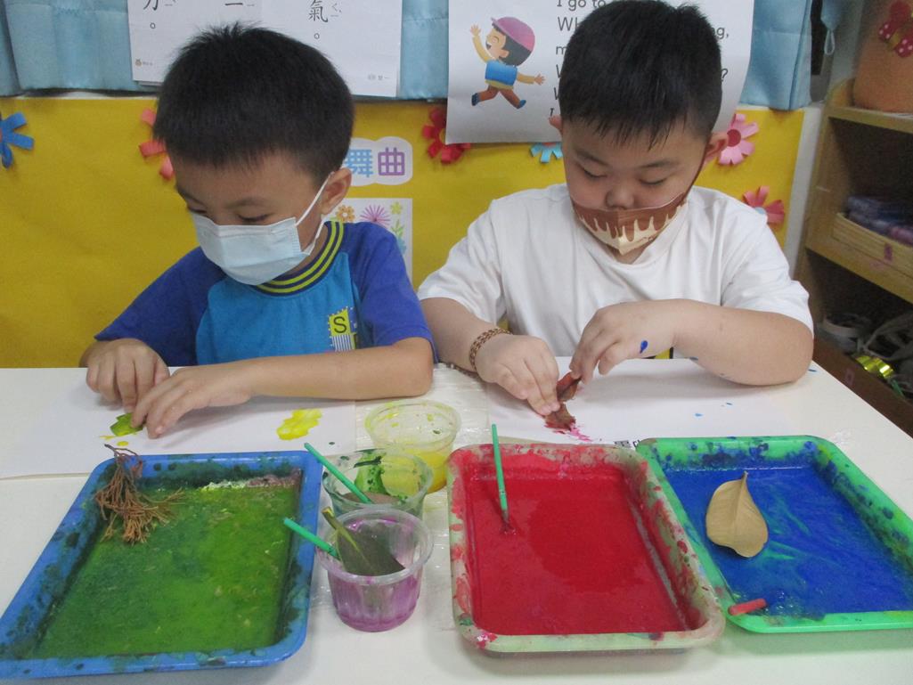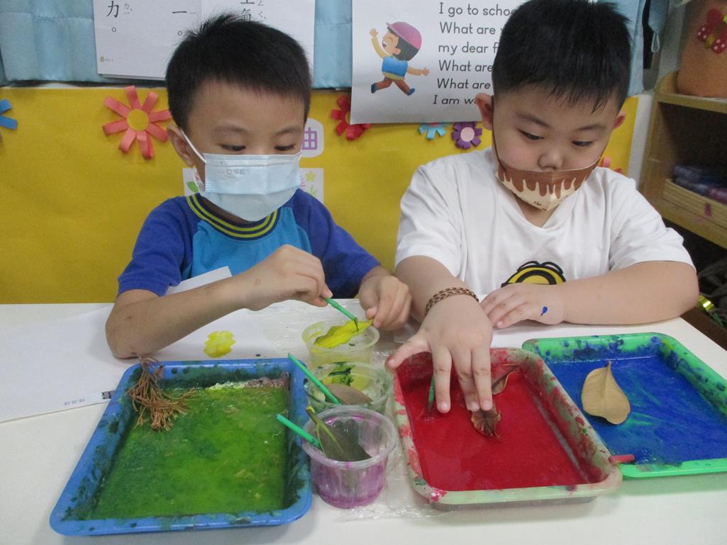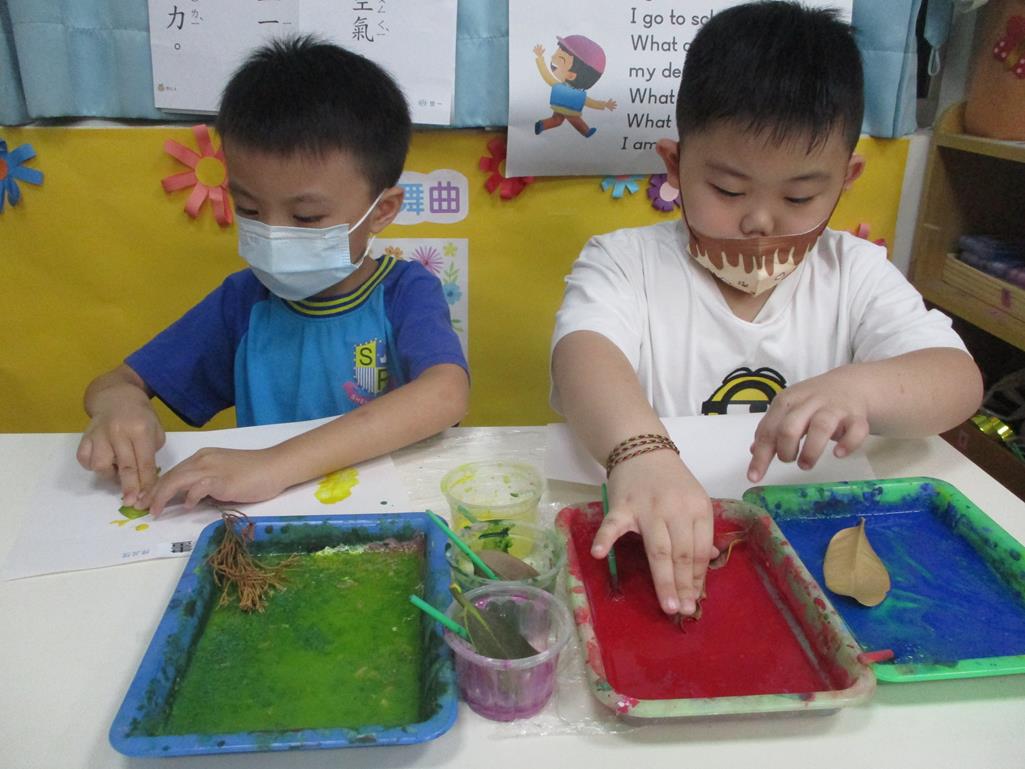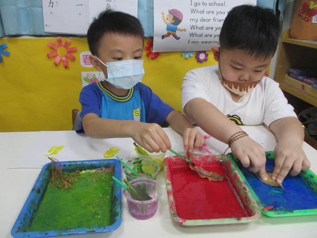 相簿名稱: 茉莉班-主題美感創作(葉子蓋印畫)