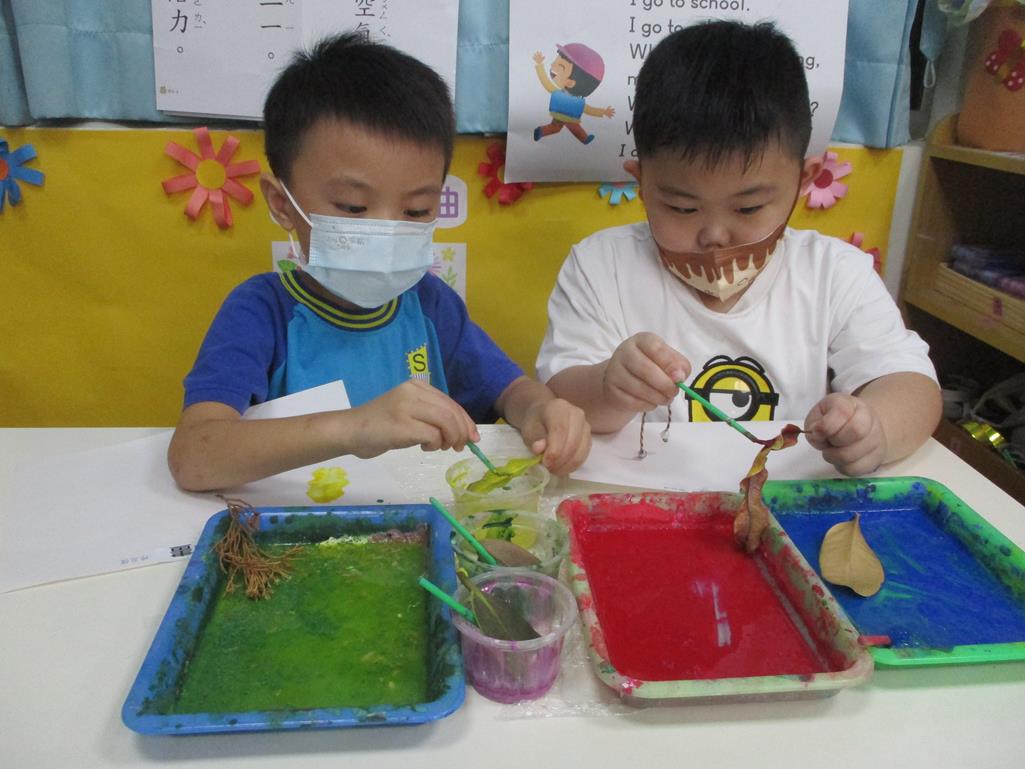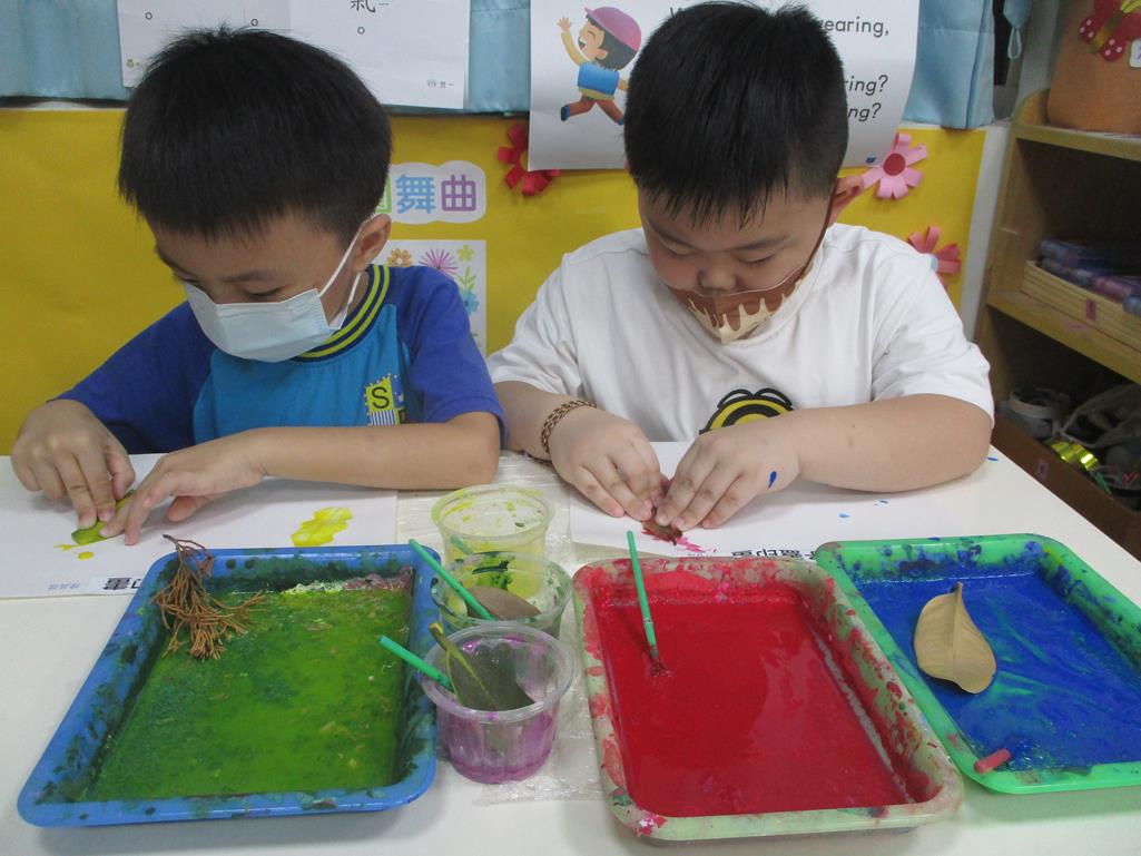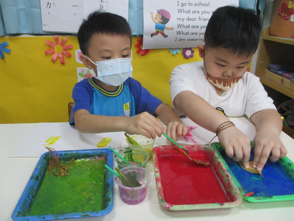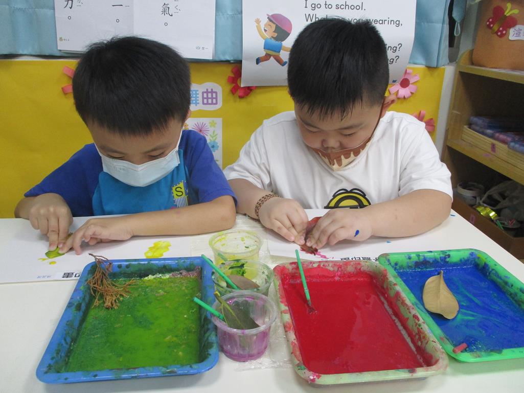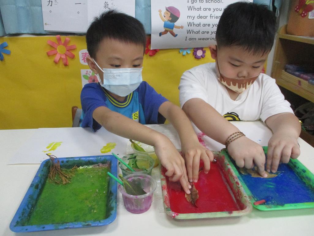 相簿名稱: 茉莉班-主題美感創作(葉子蓋印畫)