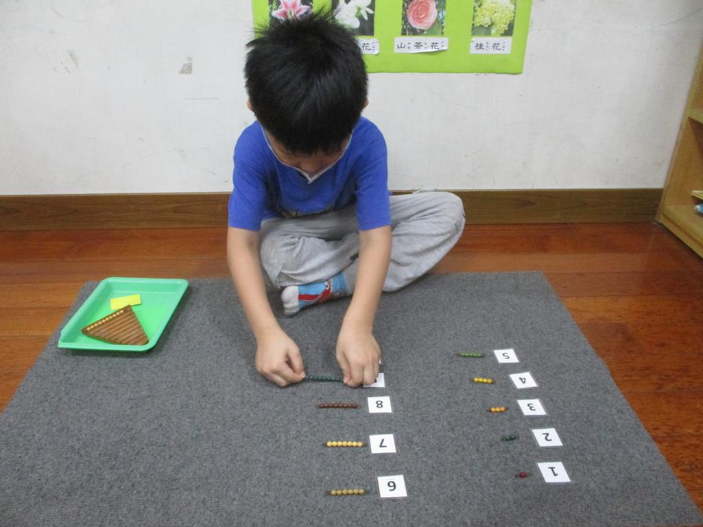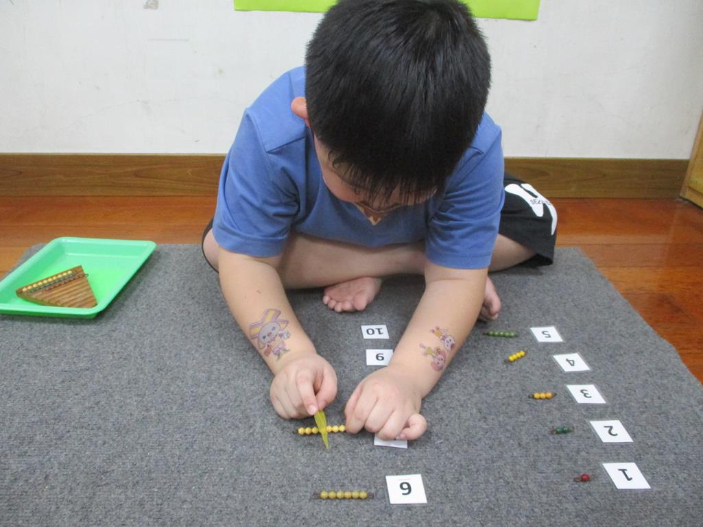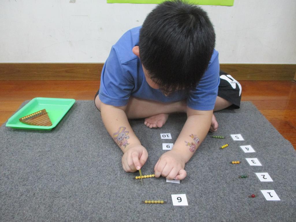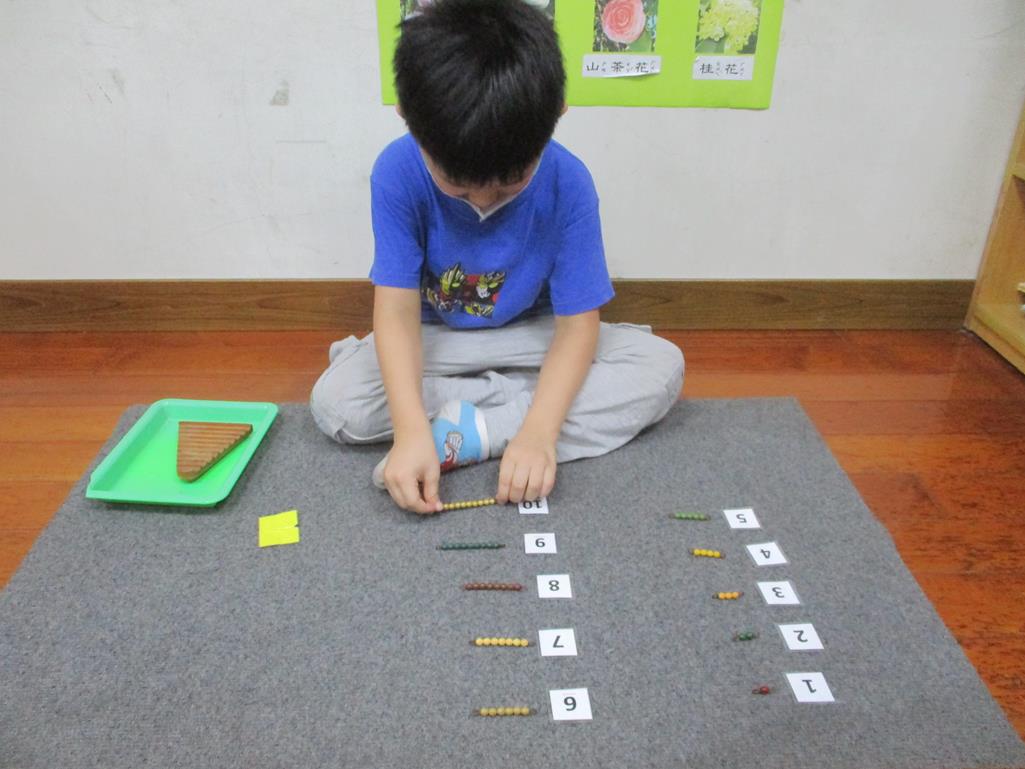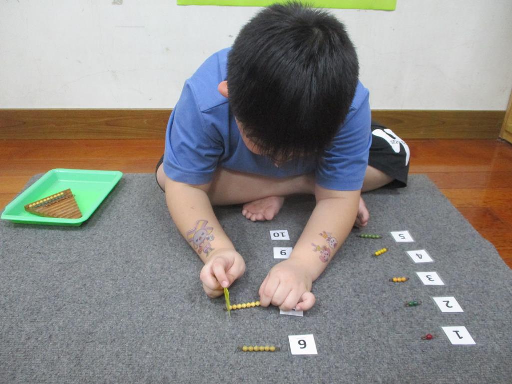 相簿名稱: 茉莉班-蒙特梭利教學(數學教育-彩色串珠1~10)