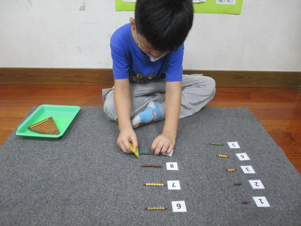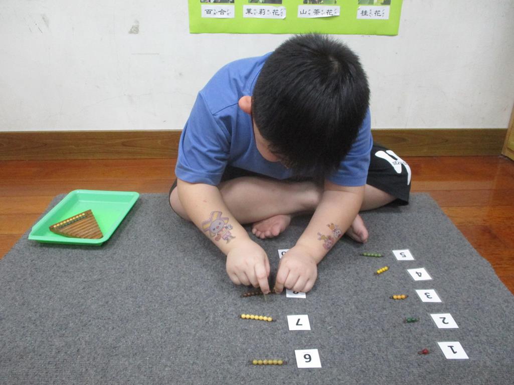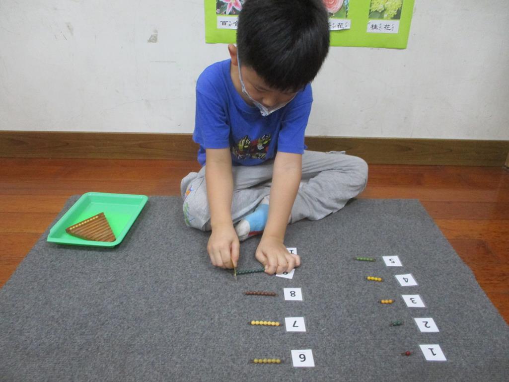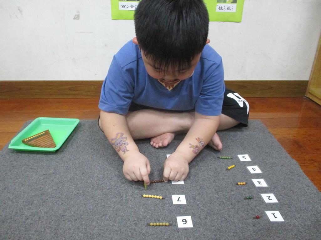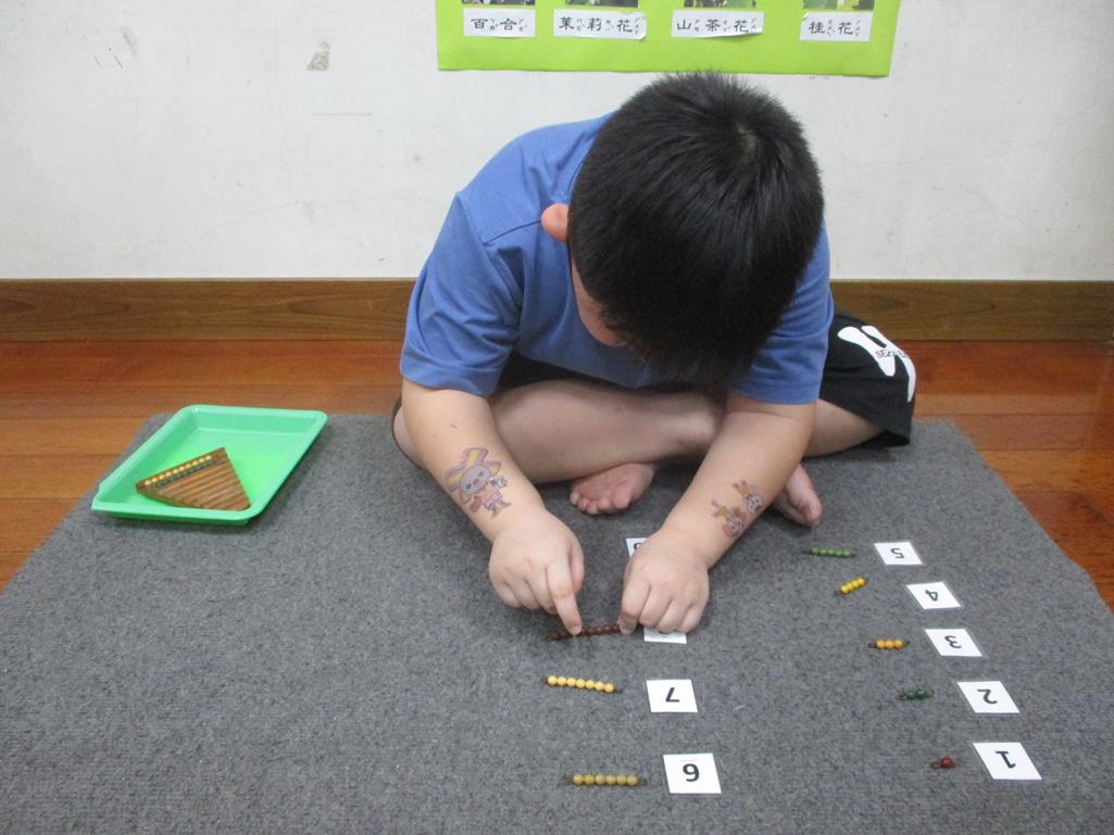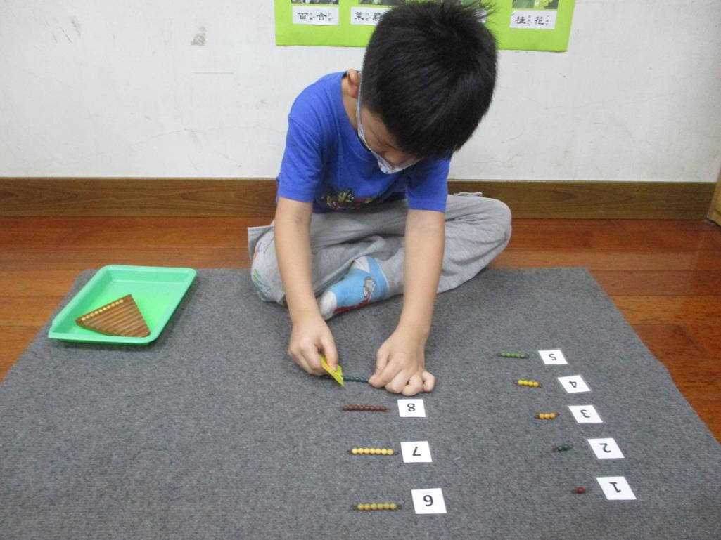 相簿名稱: 茉莉班-蒙特梭利教學(數學教育-彩色串珠1~10)