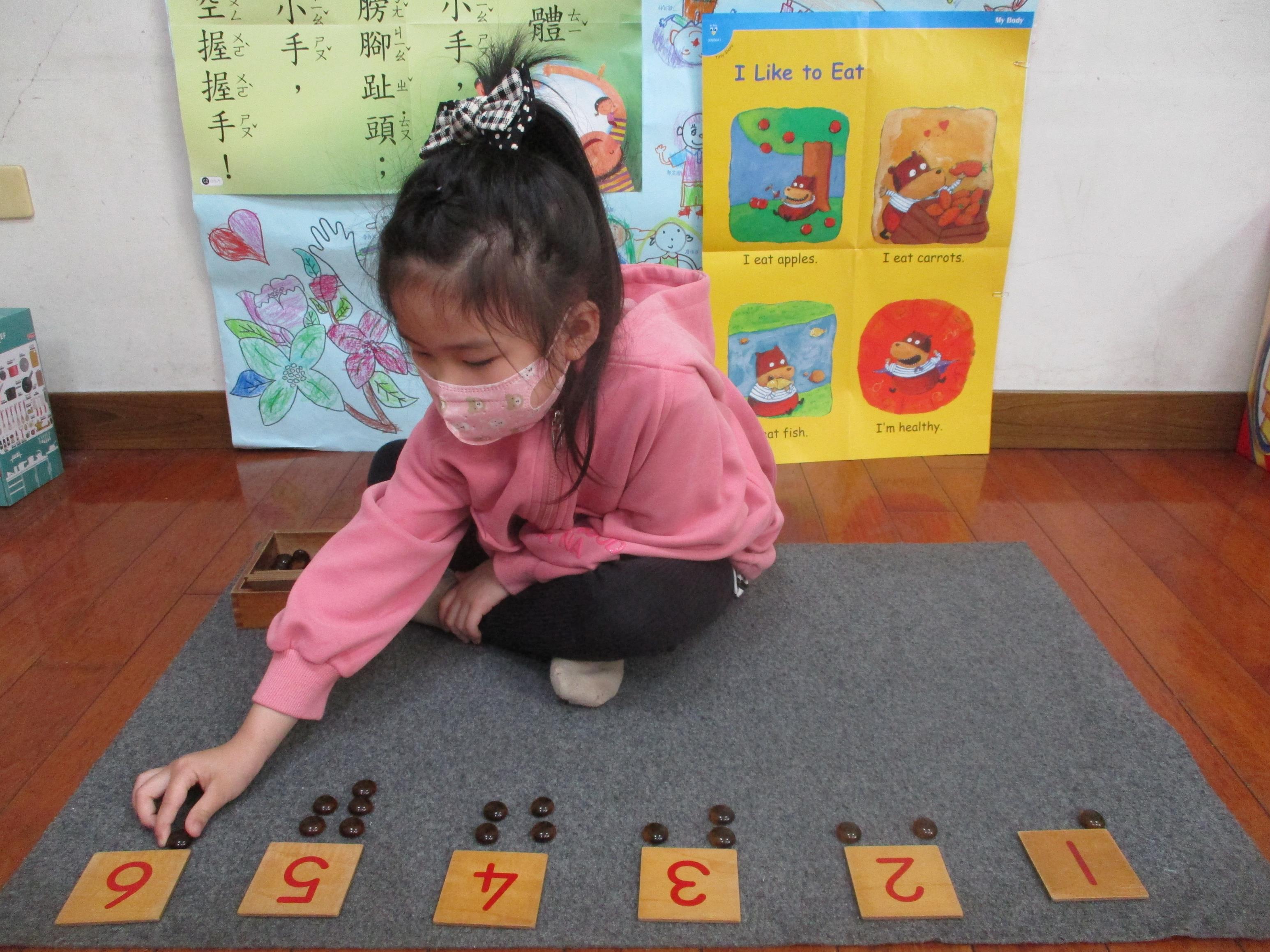 相簿名稱: 茉莉班-蒙特梭利教學(數學教育-數字與籌碼配對1~6)