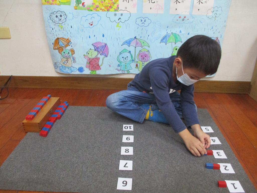 相簿名稱: 茉莉班-蒙特梭利教學(數學教育-數棒+1~10字卡)