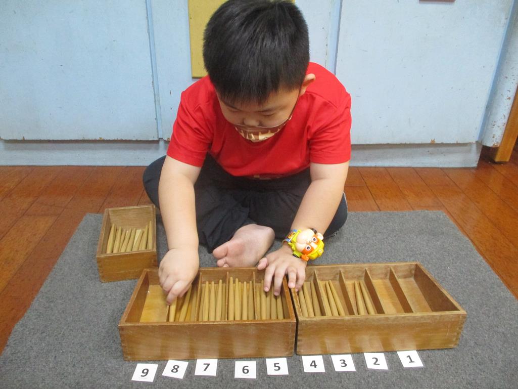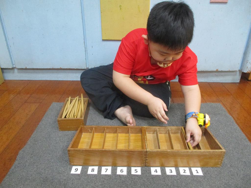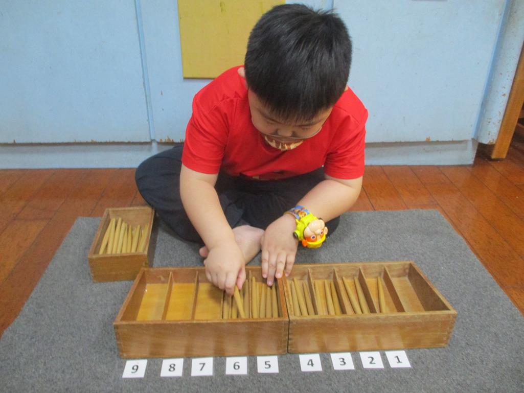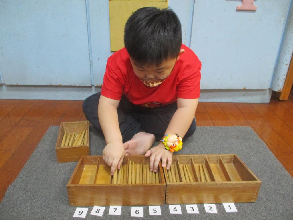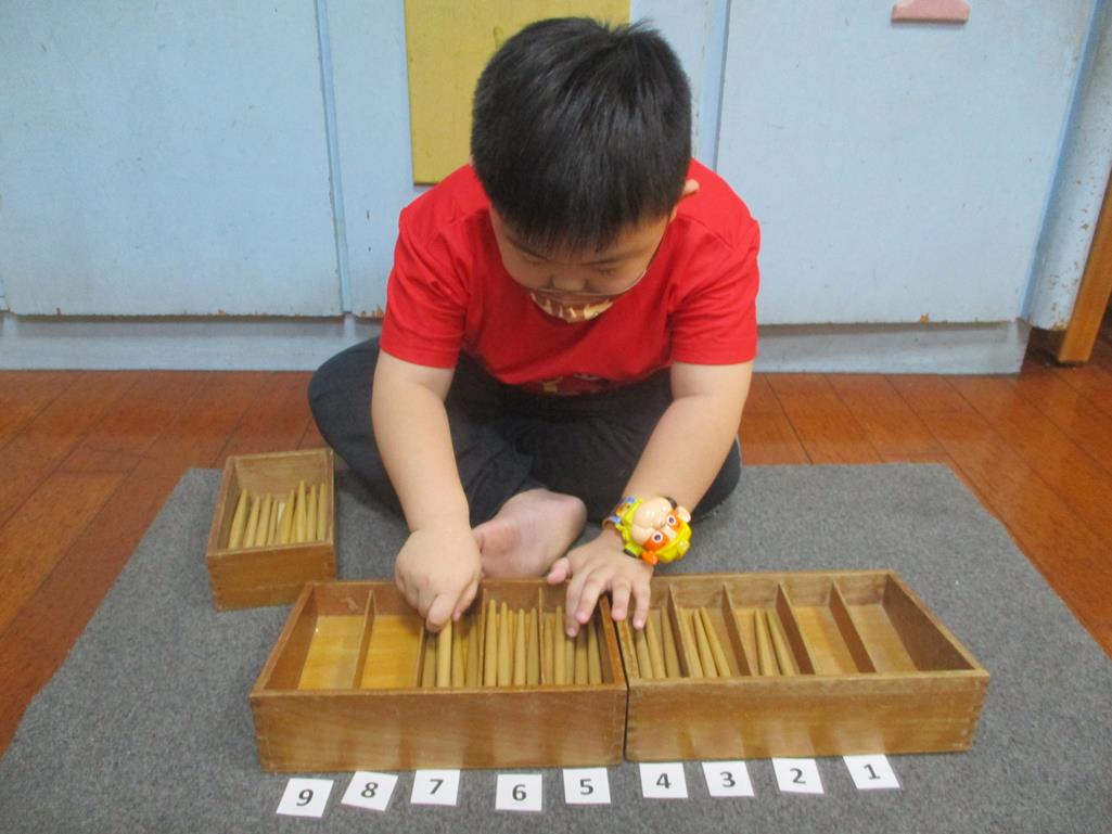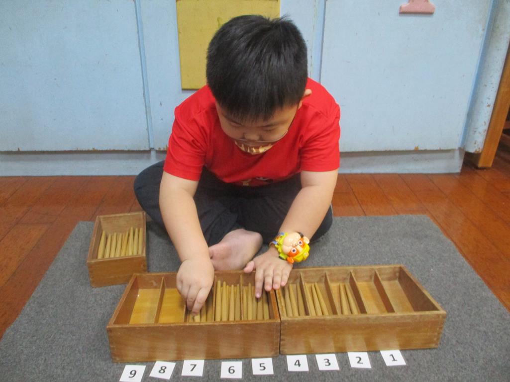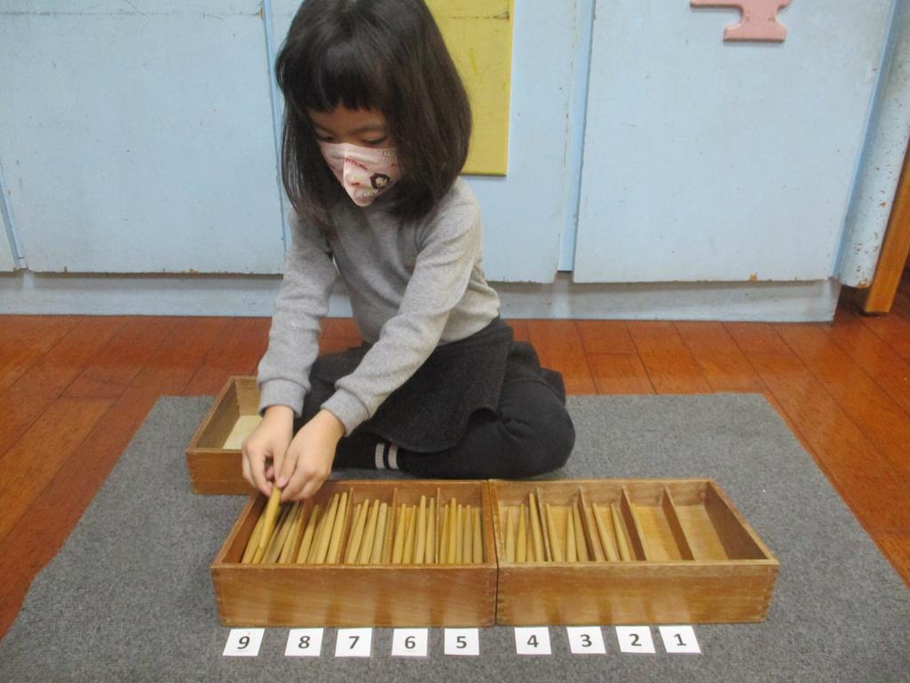 相簿名稱: 茉莉班-蒙特梭利教學(數學教育-紡錘棒箱 0~9)