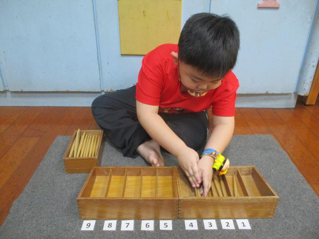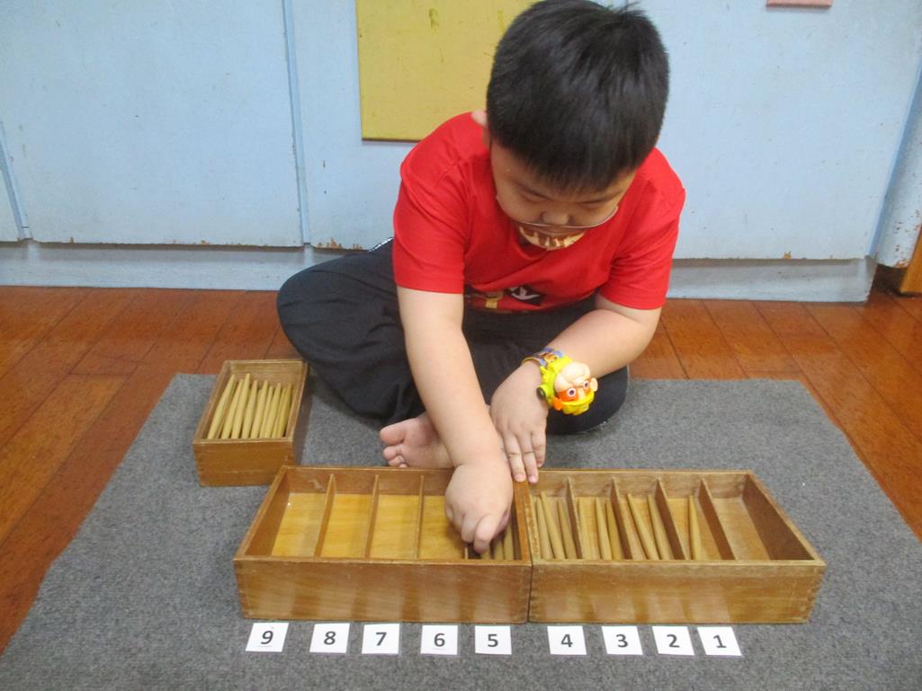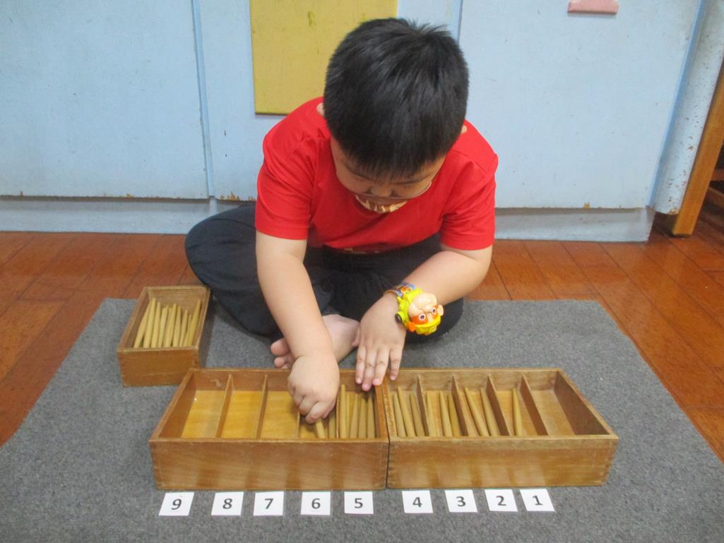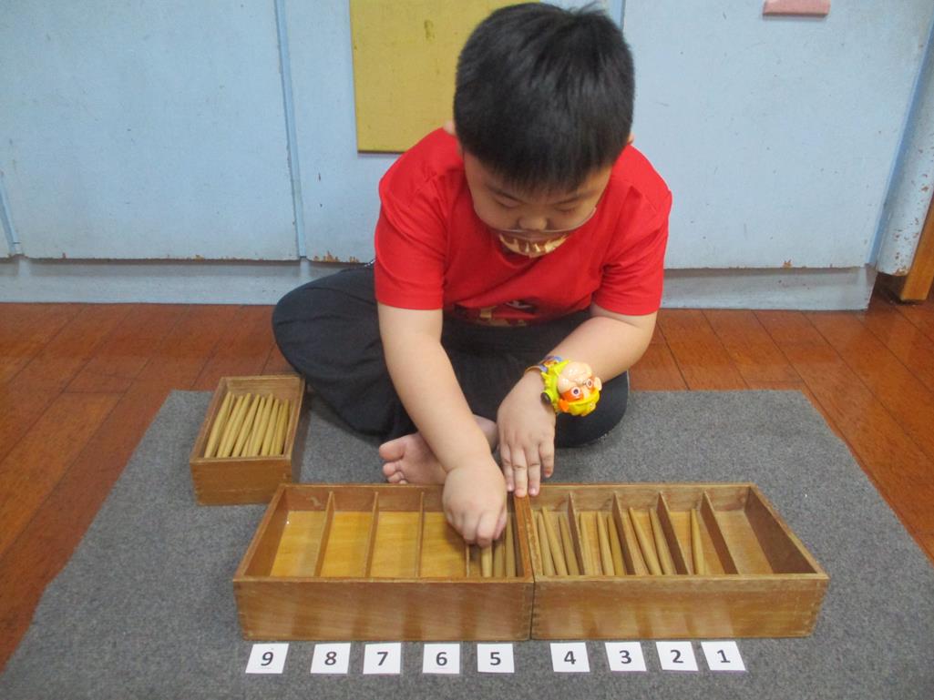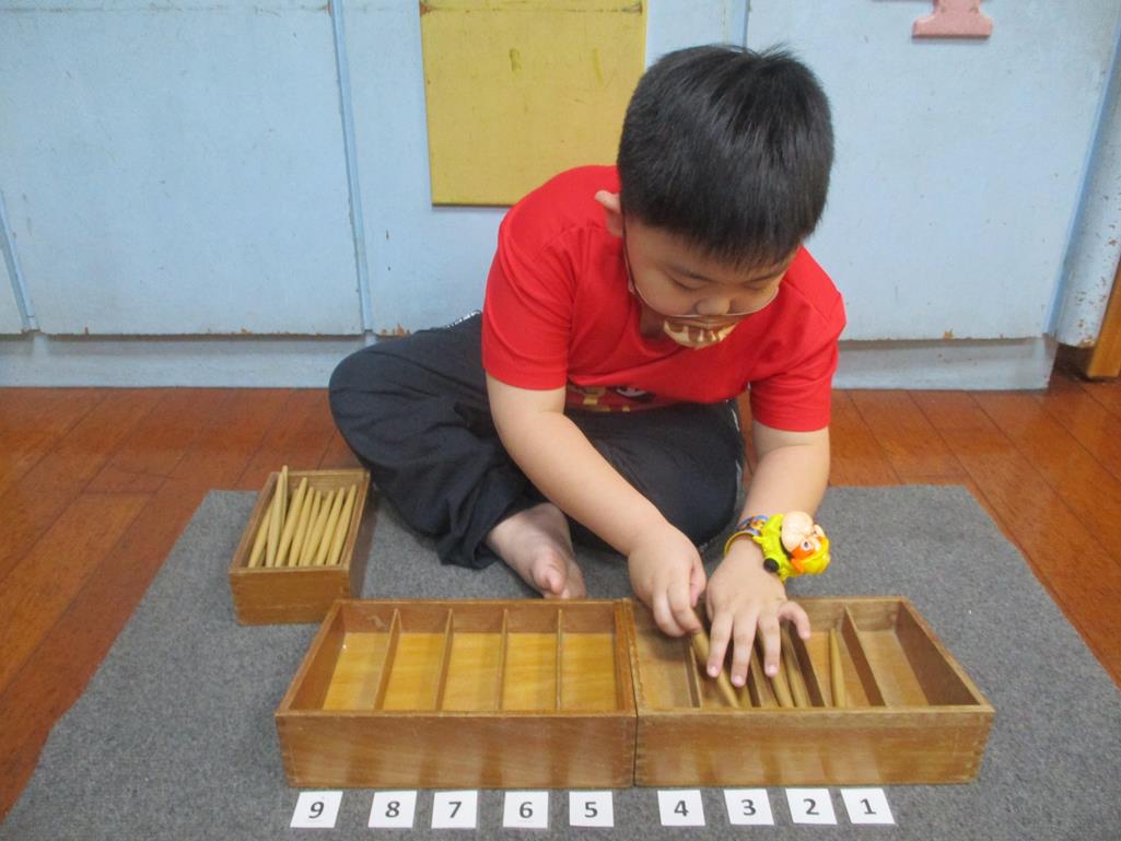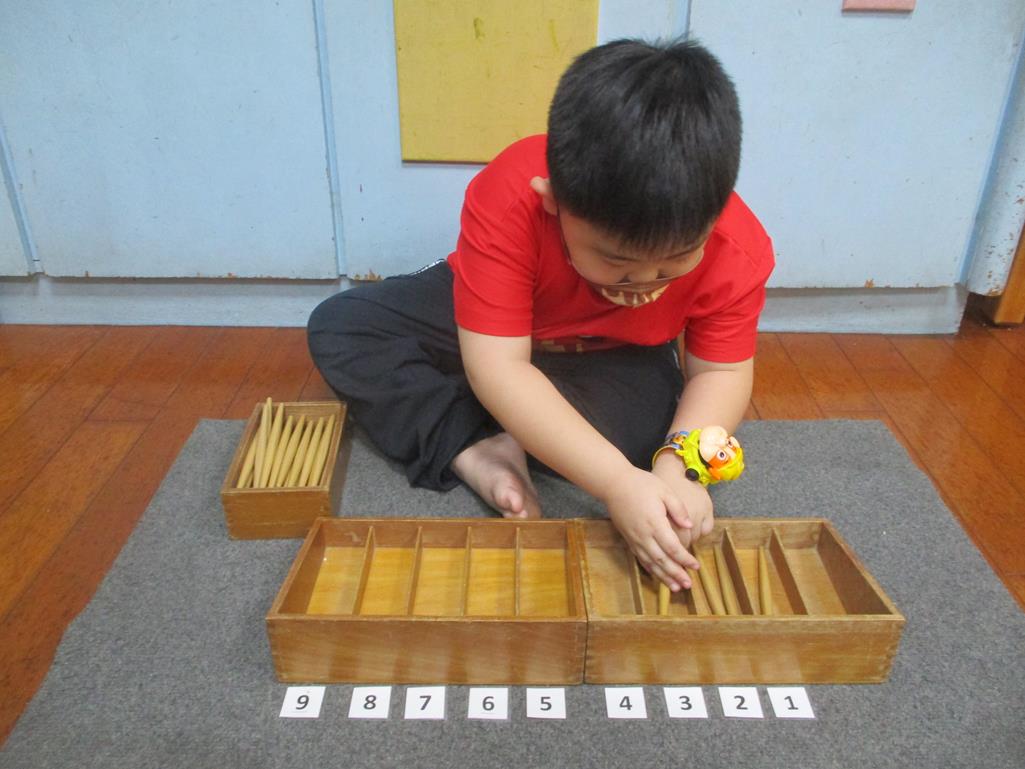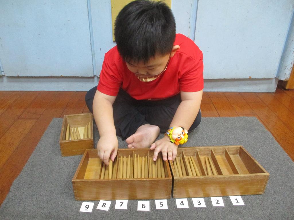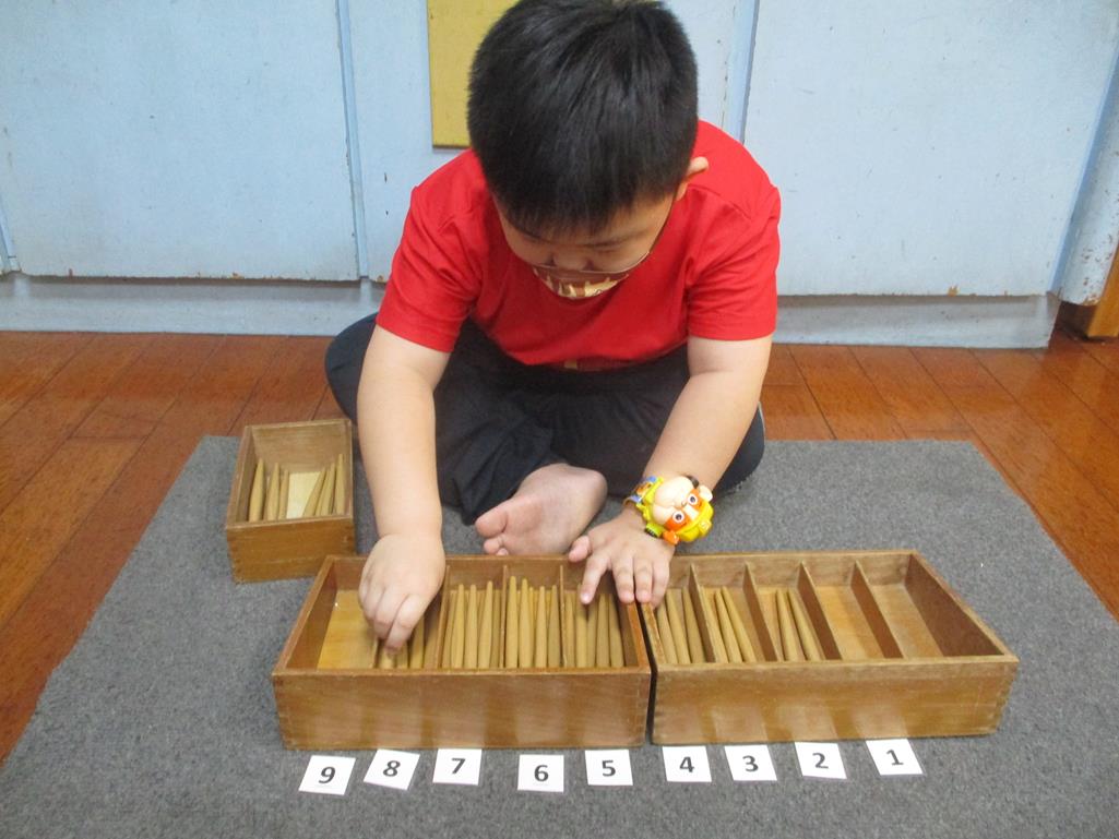 相簿名稱: 茉莉班-蒙特梭利教學(數學教育-紡錘棒箱 0~9)