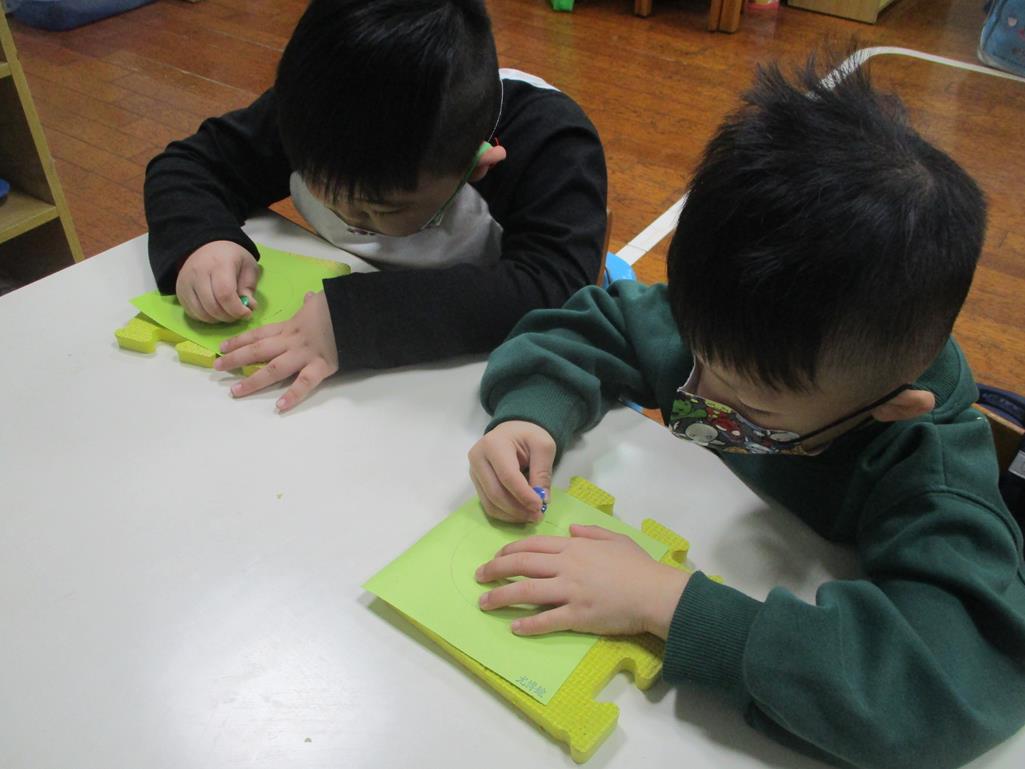 相簿名稱: 茉莉班-蒙特梭利教學(日常生活教育-刺工-幾何圖形(圓形))