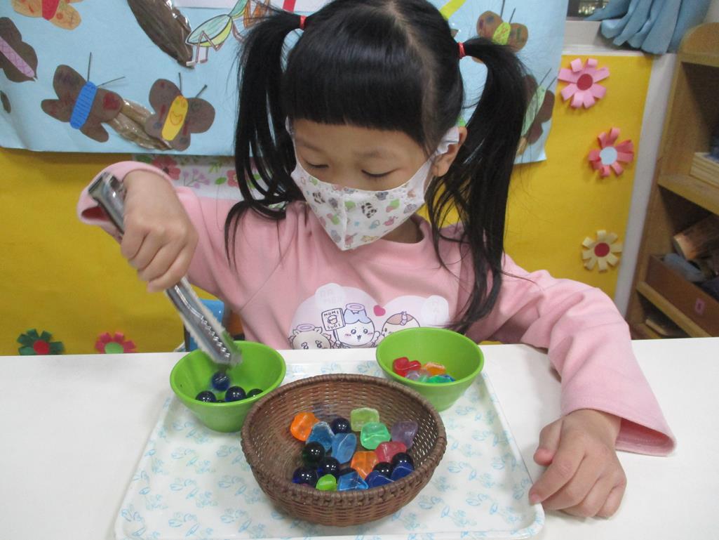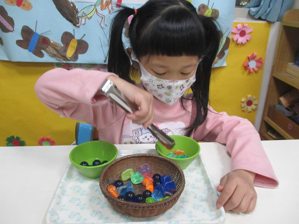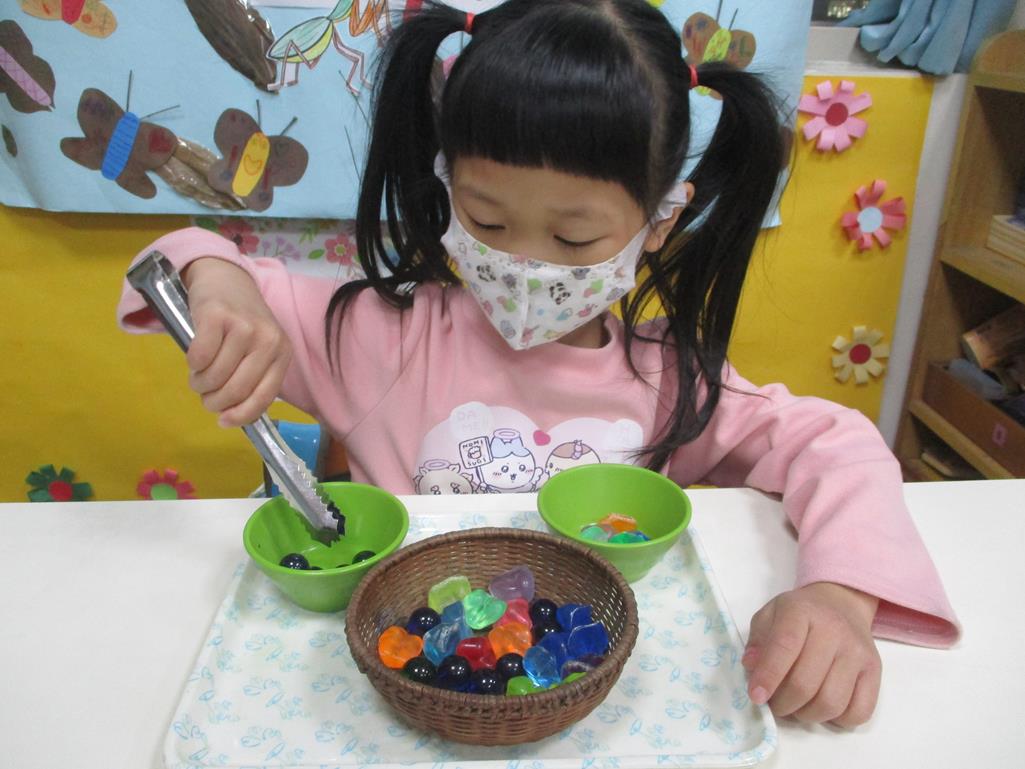 相簿名稱: 茉莉班-蒙特梭利教學(日常生活教育-夾彈珠分類)