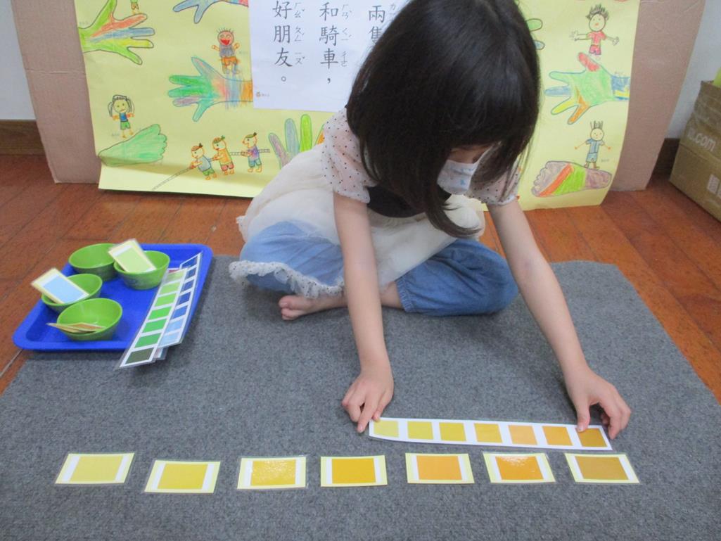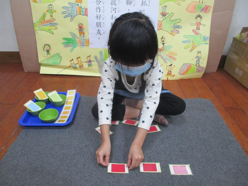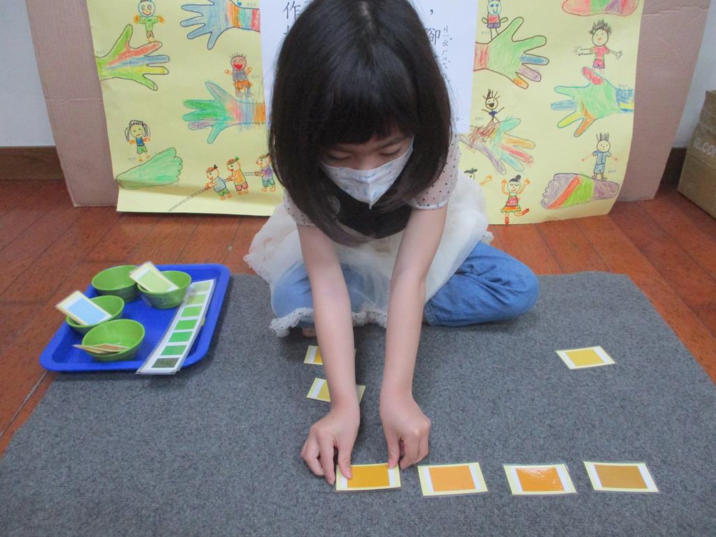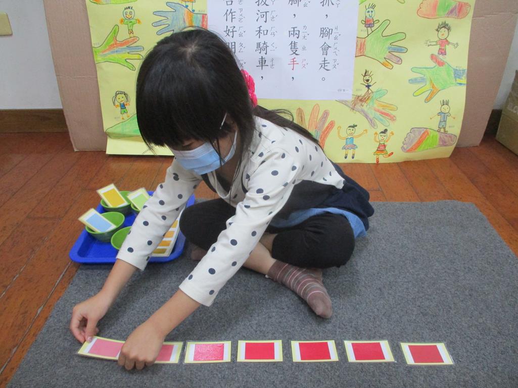 相簿名稱: 茉莉班-蒙特梭利教學(感官教育-色板依序 由深至淺)