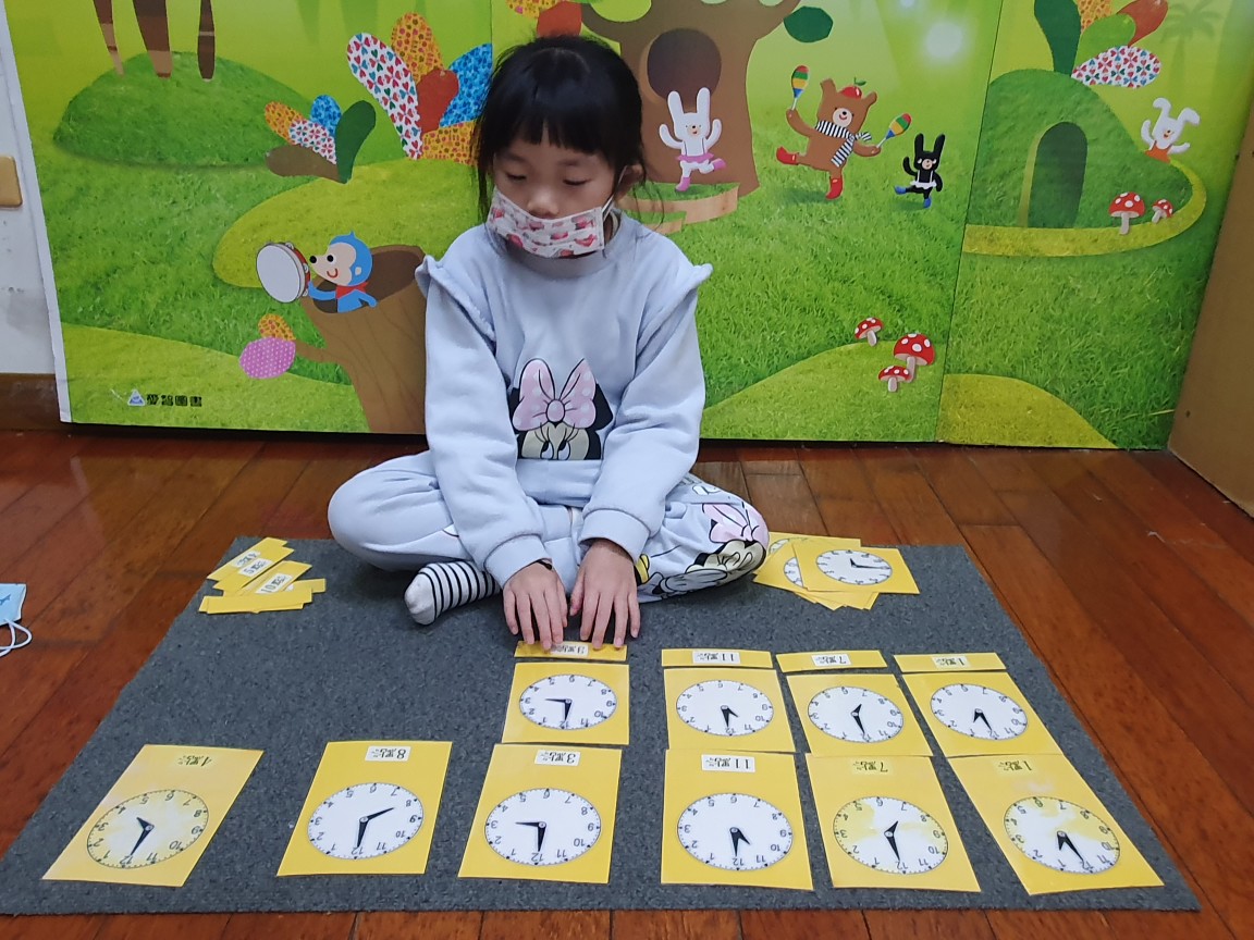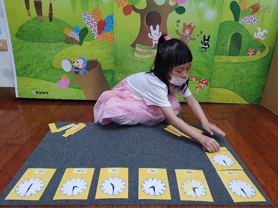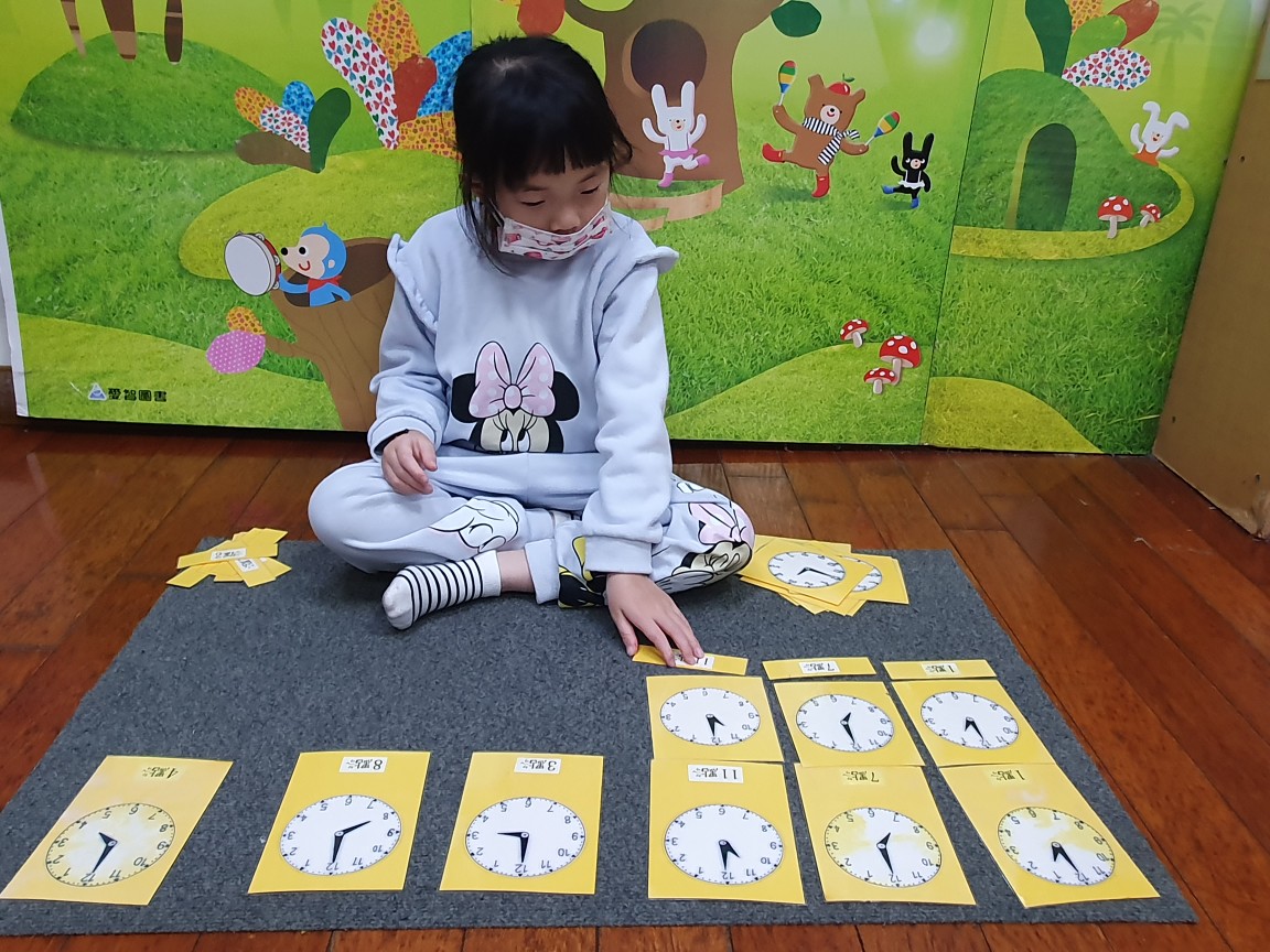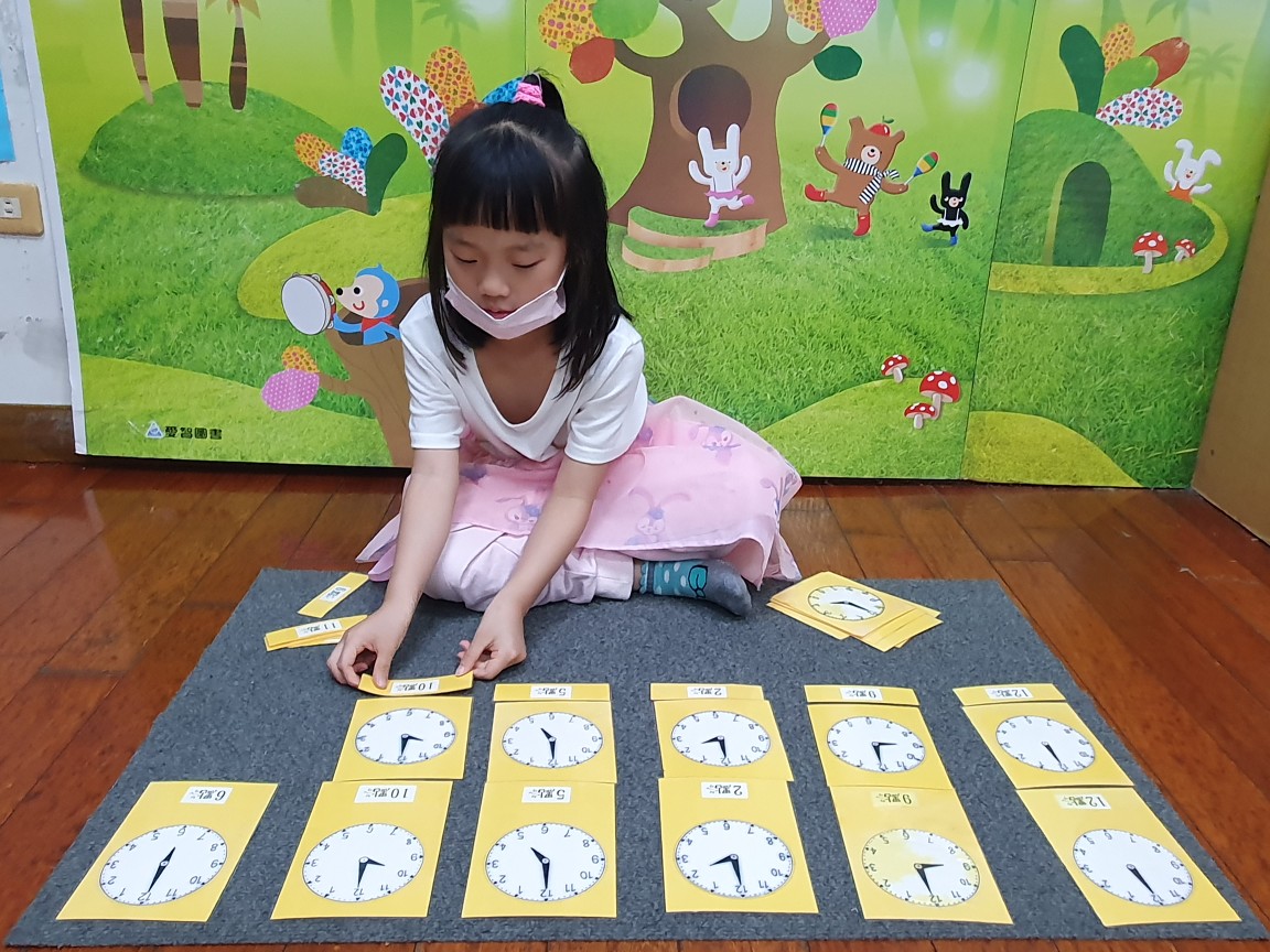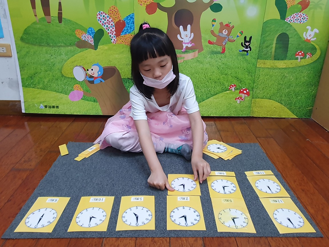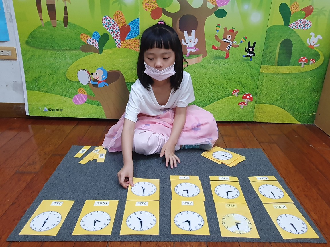 相簿名稱: 向日葵班-蒙特梭利教學(數學教育-時鐘(整點)三段卡)