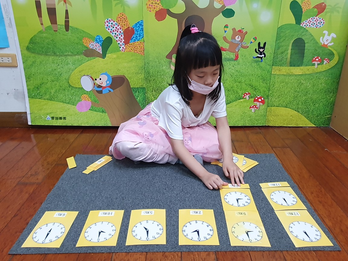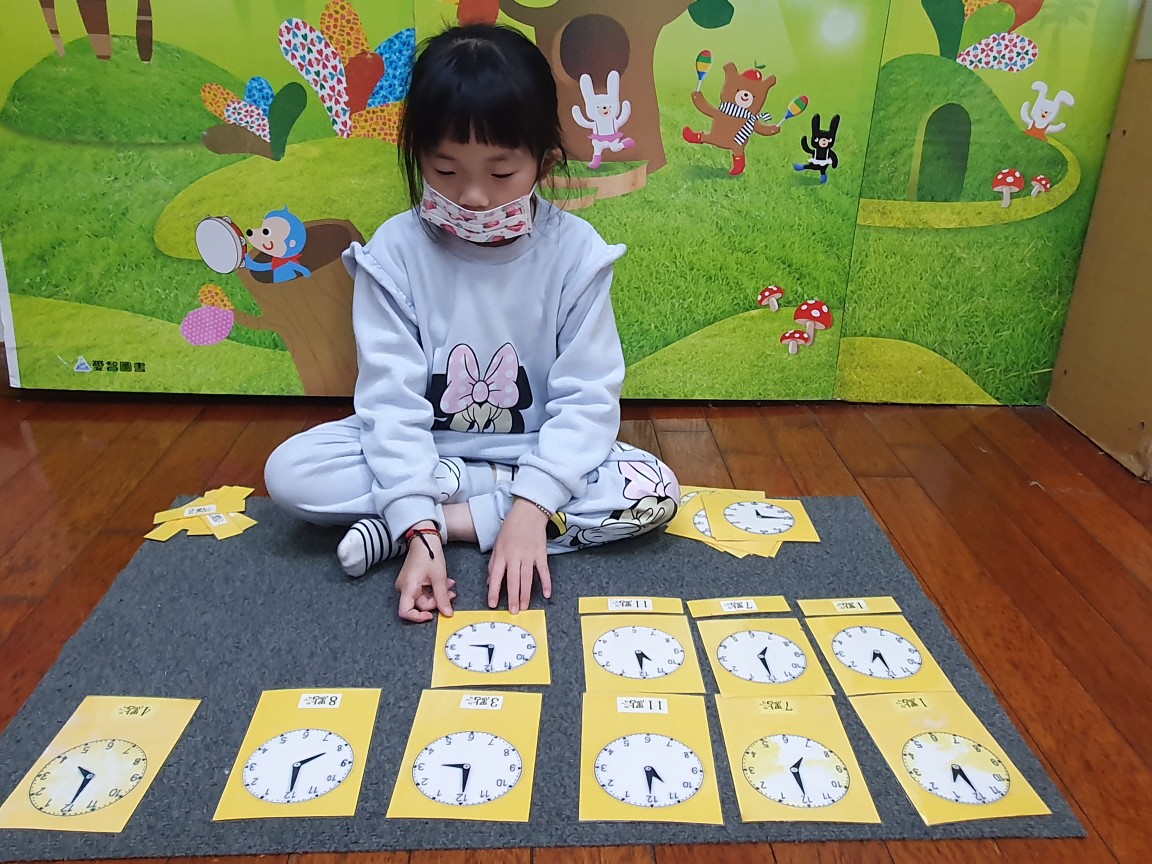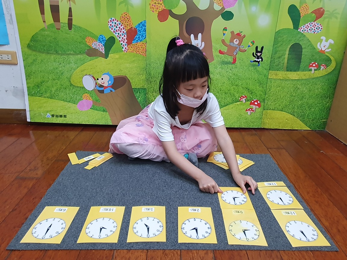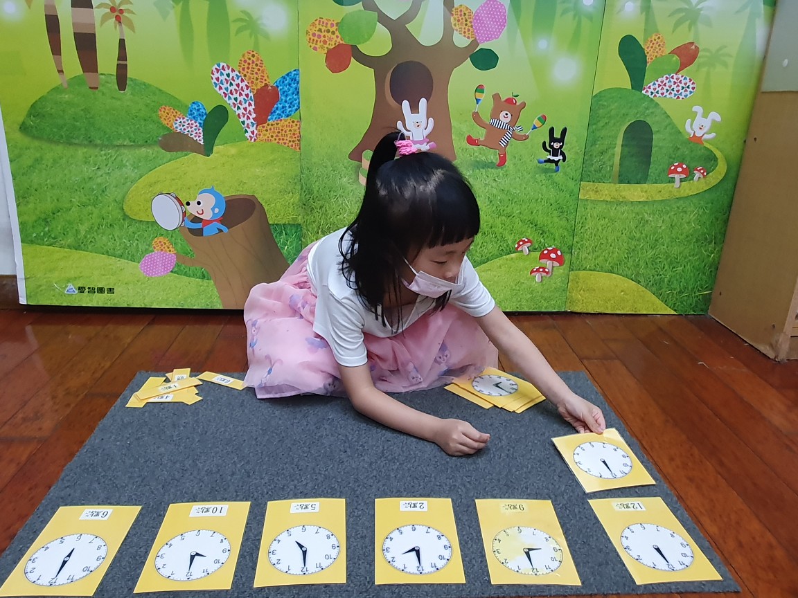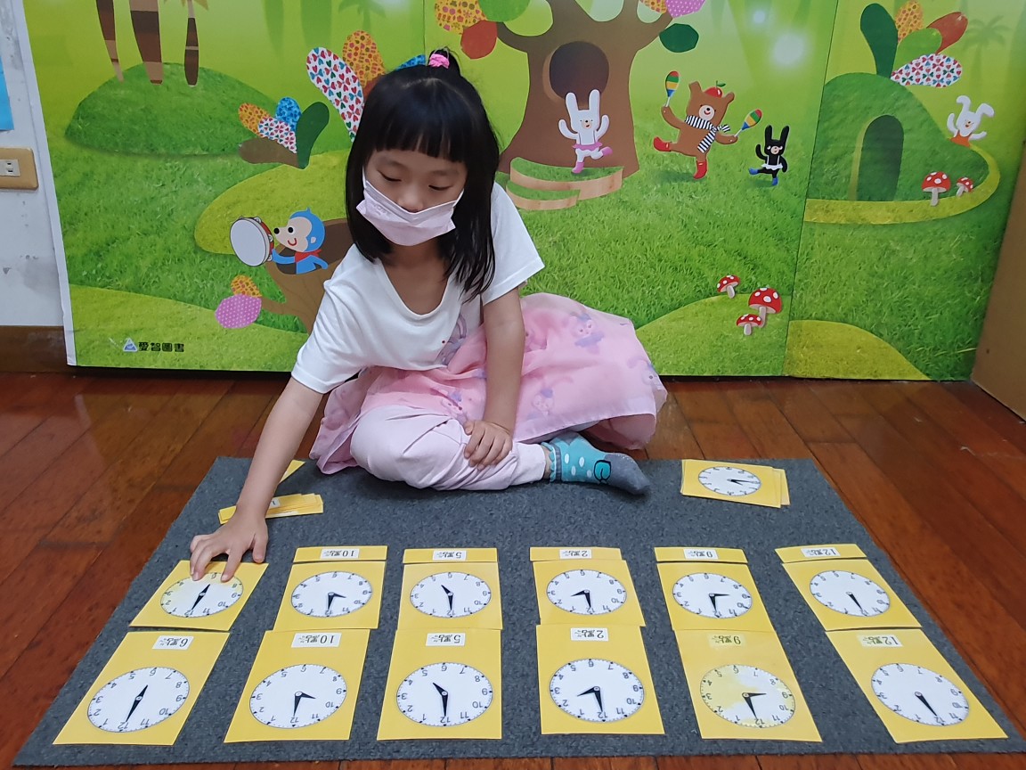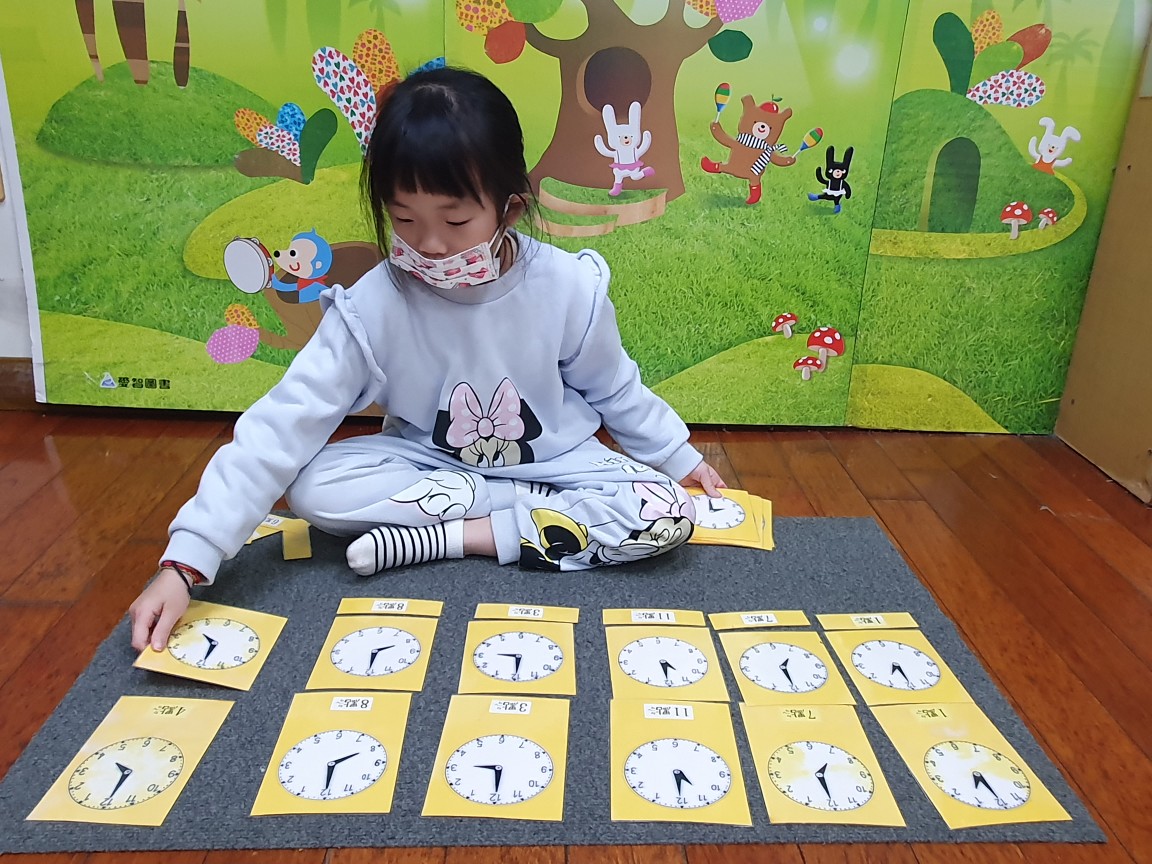 相簿名稱: 向日葵班-蒙特梭利教學(數學教育-時鐘(整點)三段卡)