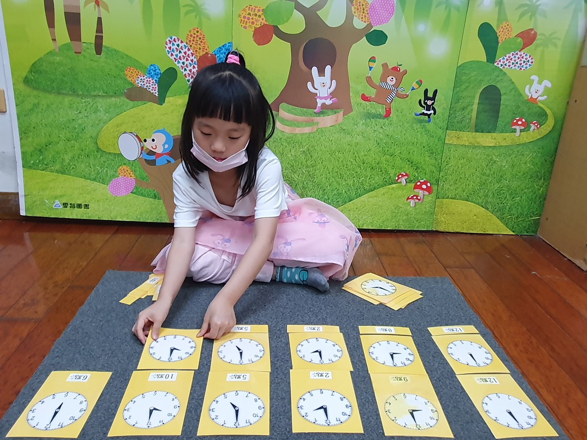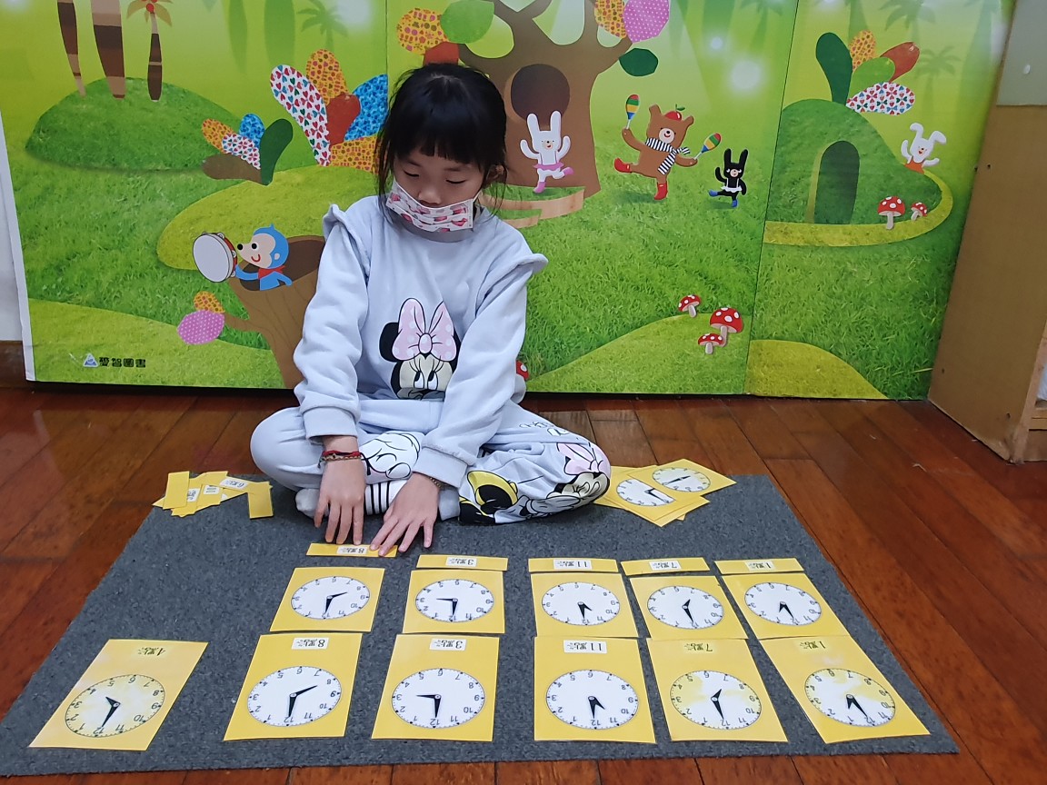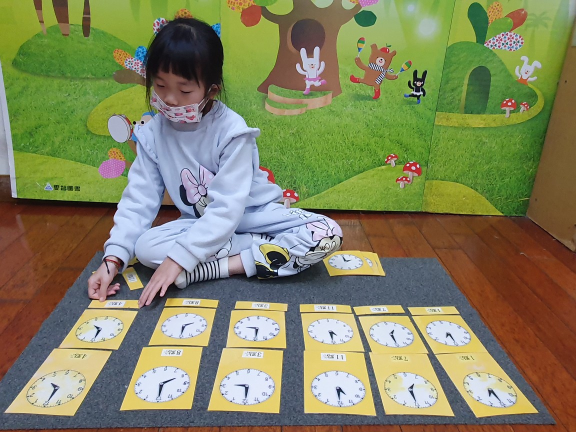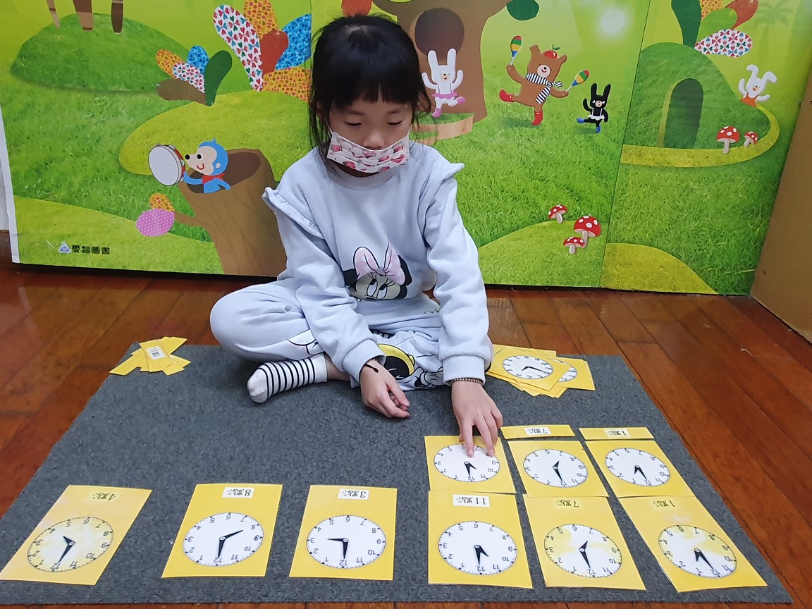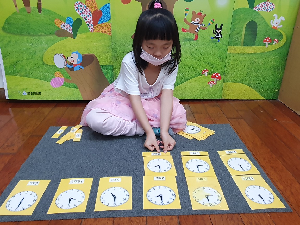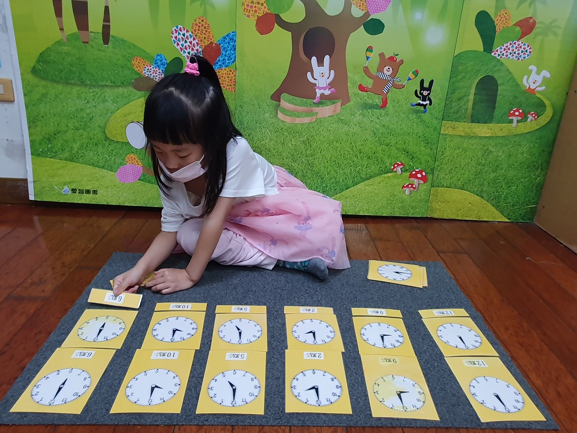 相簿名稱: 向日葵班-蒙特梭利教學(數學教育-時鐘(整點)三段卡)