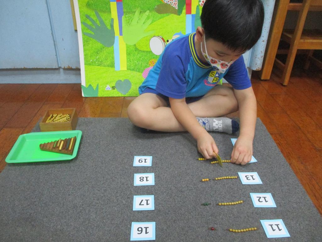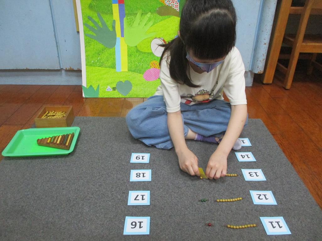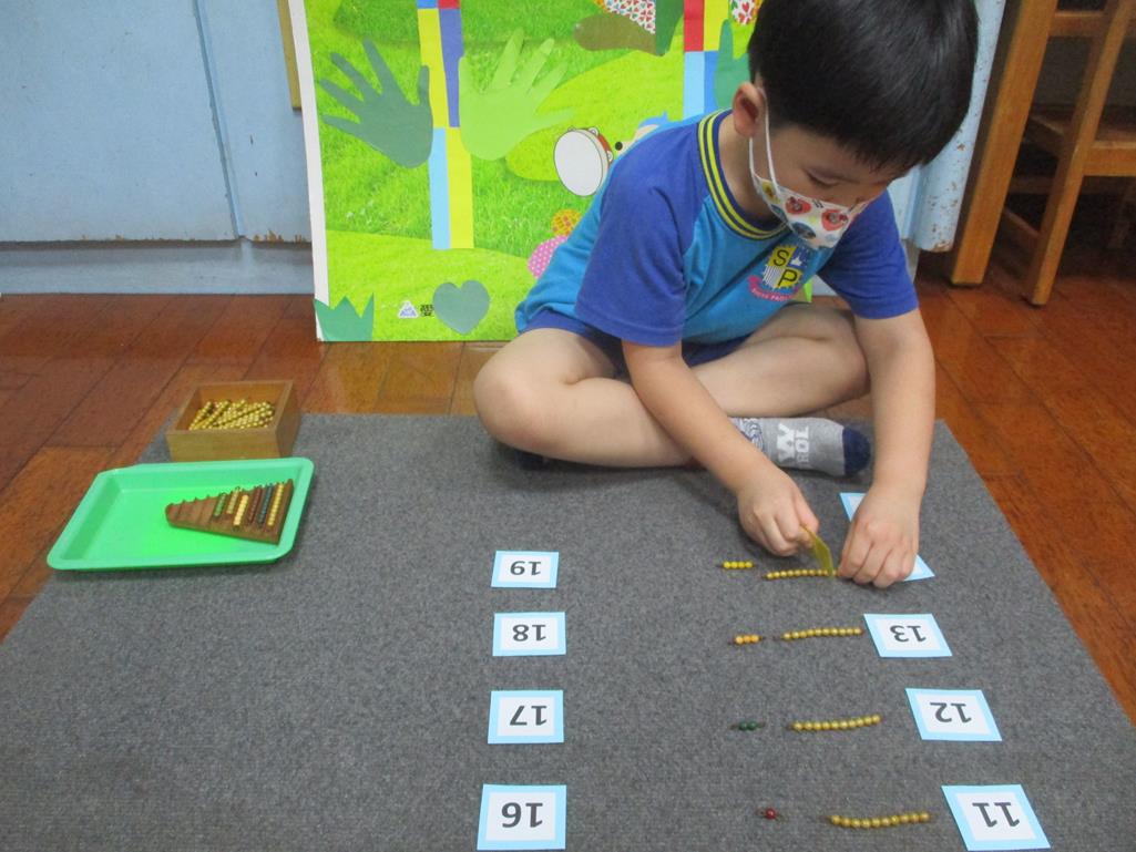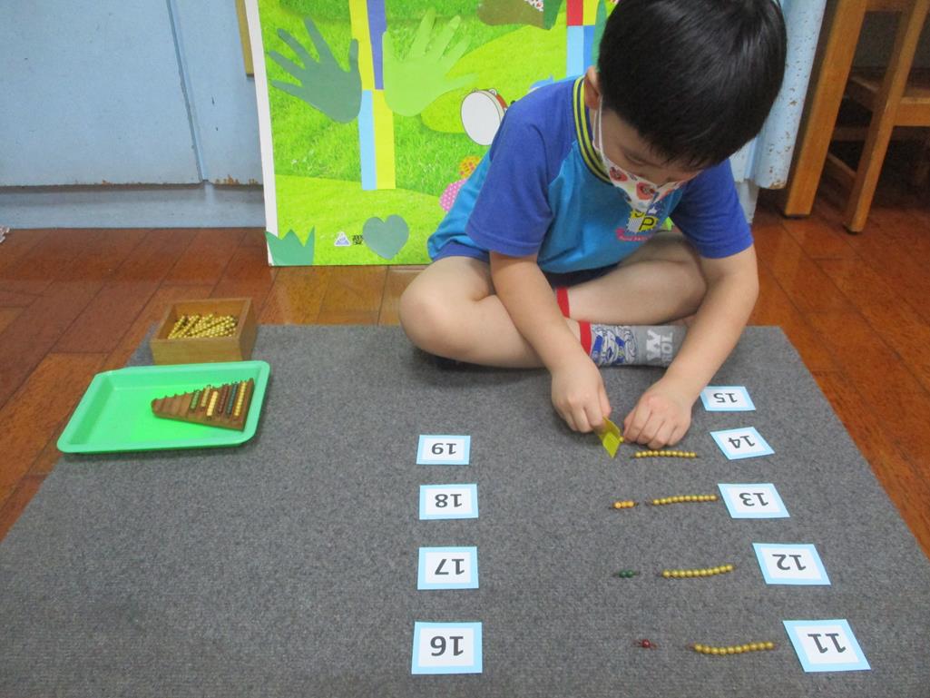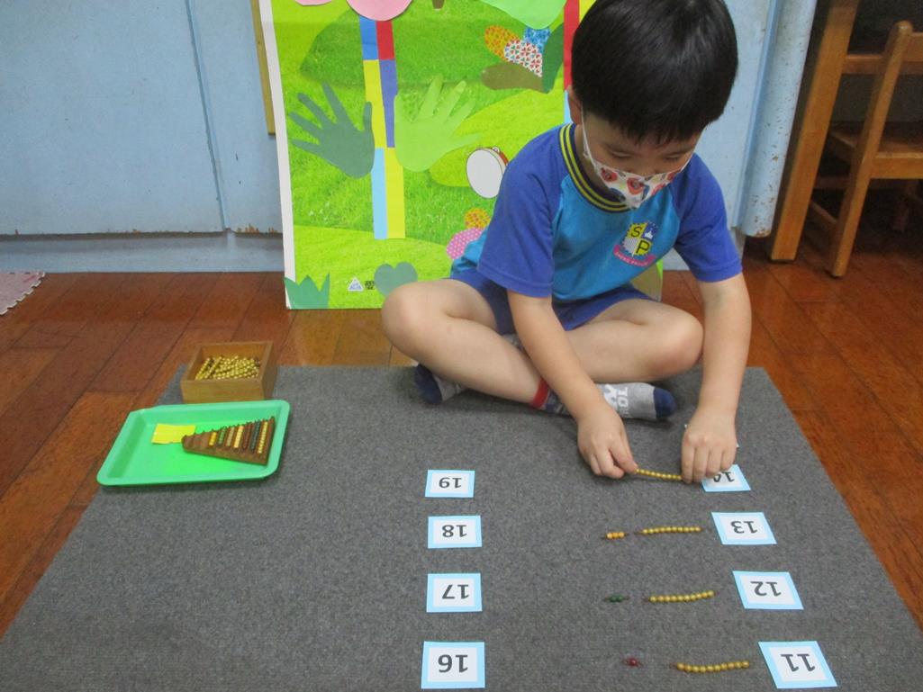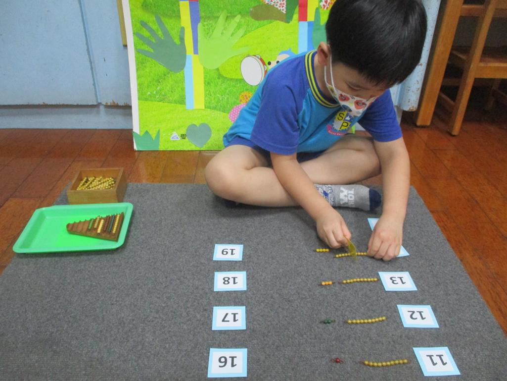 相簿名稱: 茉莉班-蒙特梭利教學(數學教育-彩色串珠11~19+字卡)