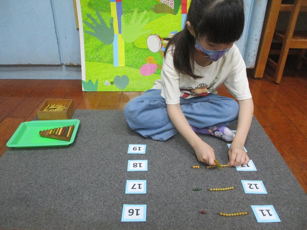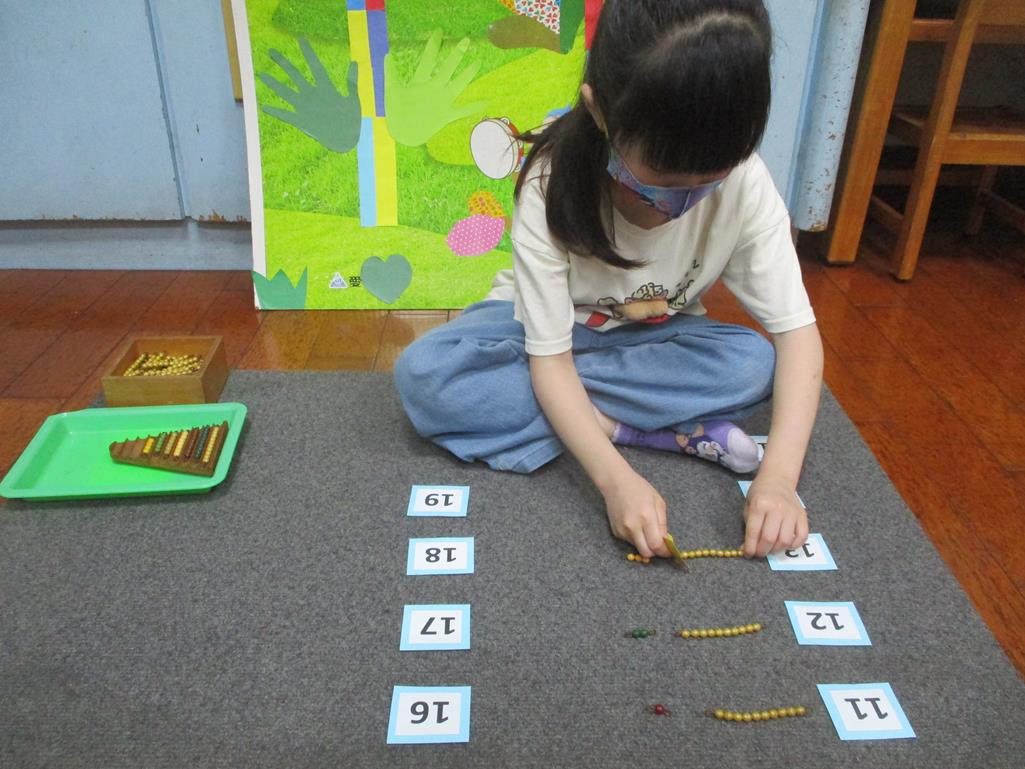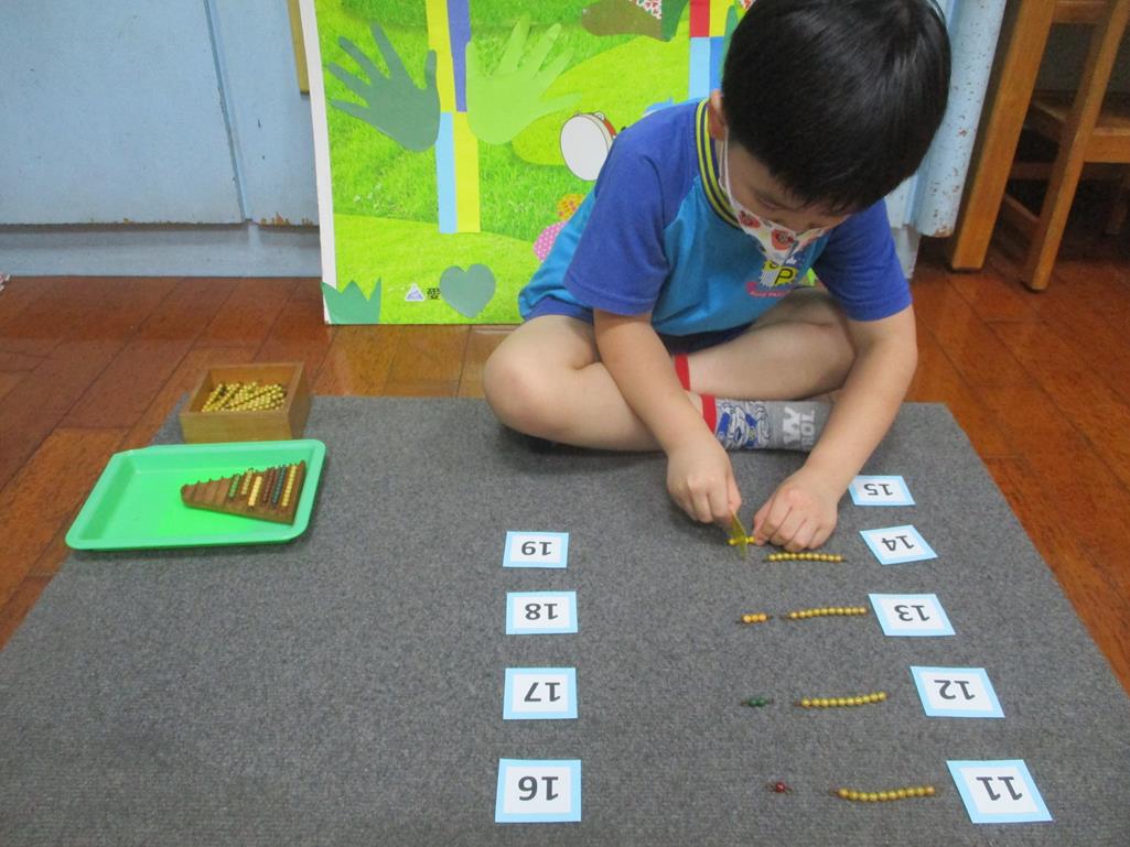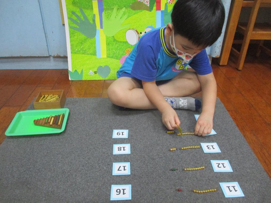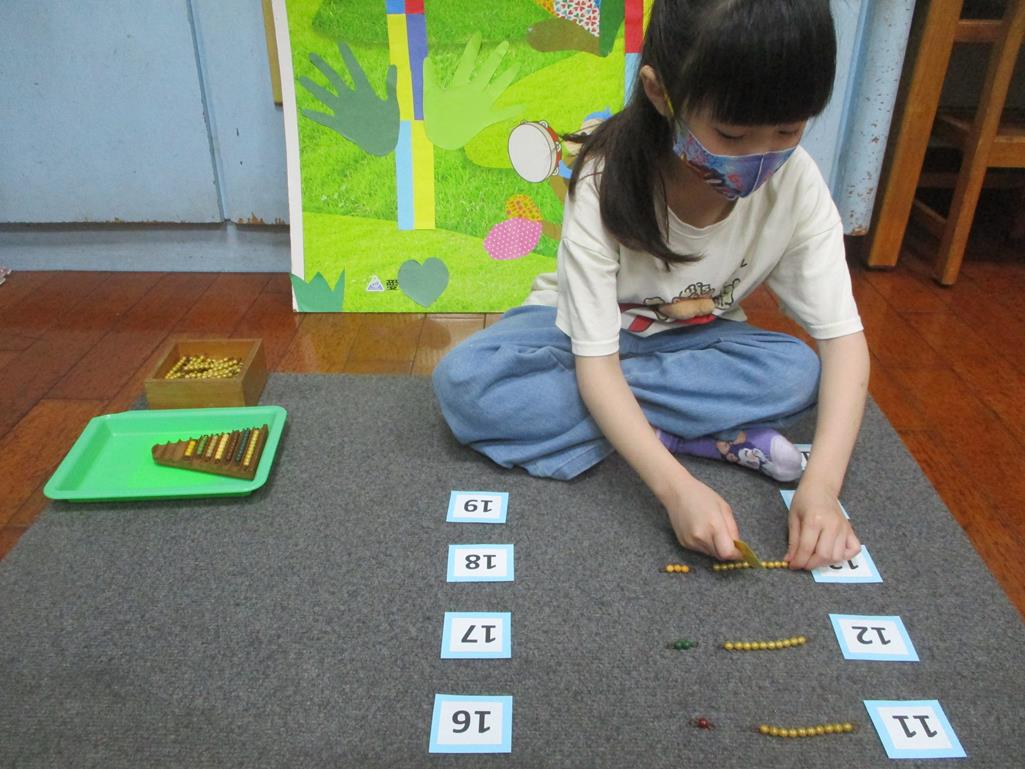 相簿名稱: 茉莉班-蒙特梭利教學(數學教育-彩色串珠11~19+字卡)
