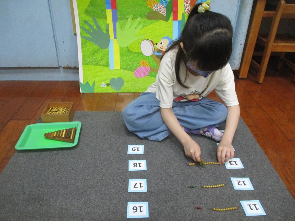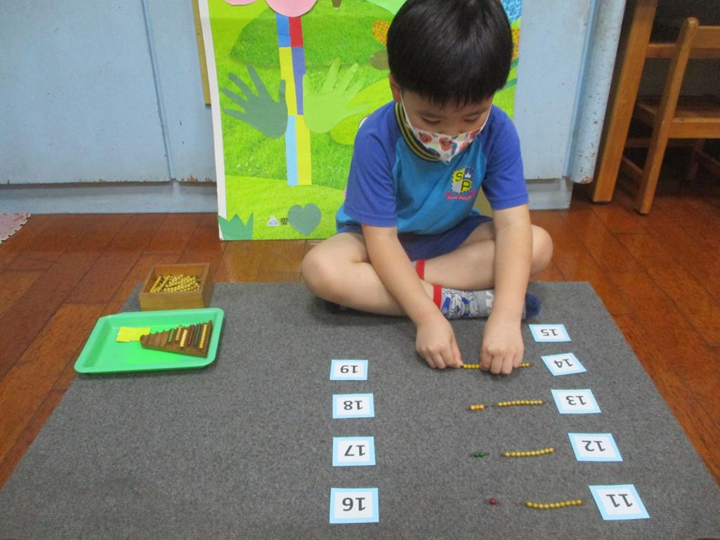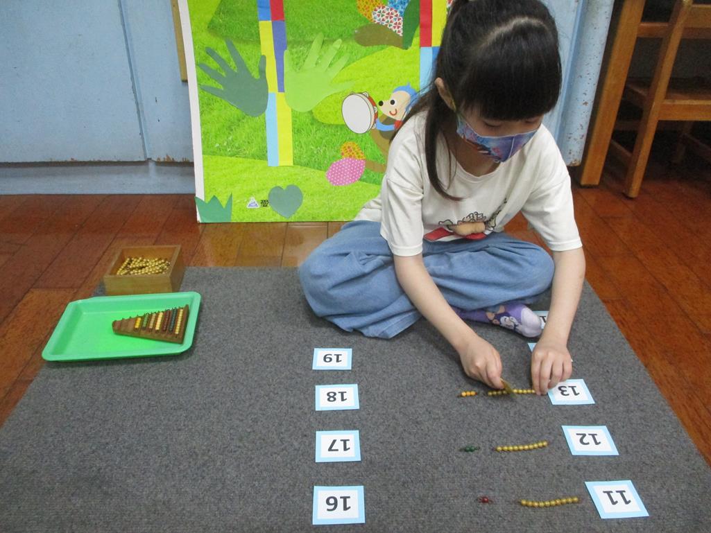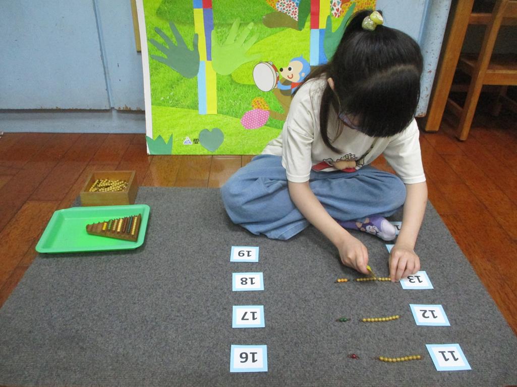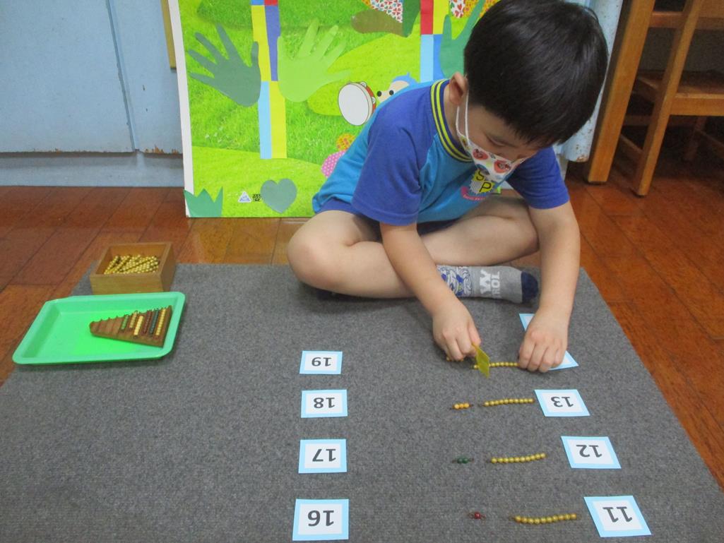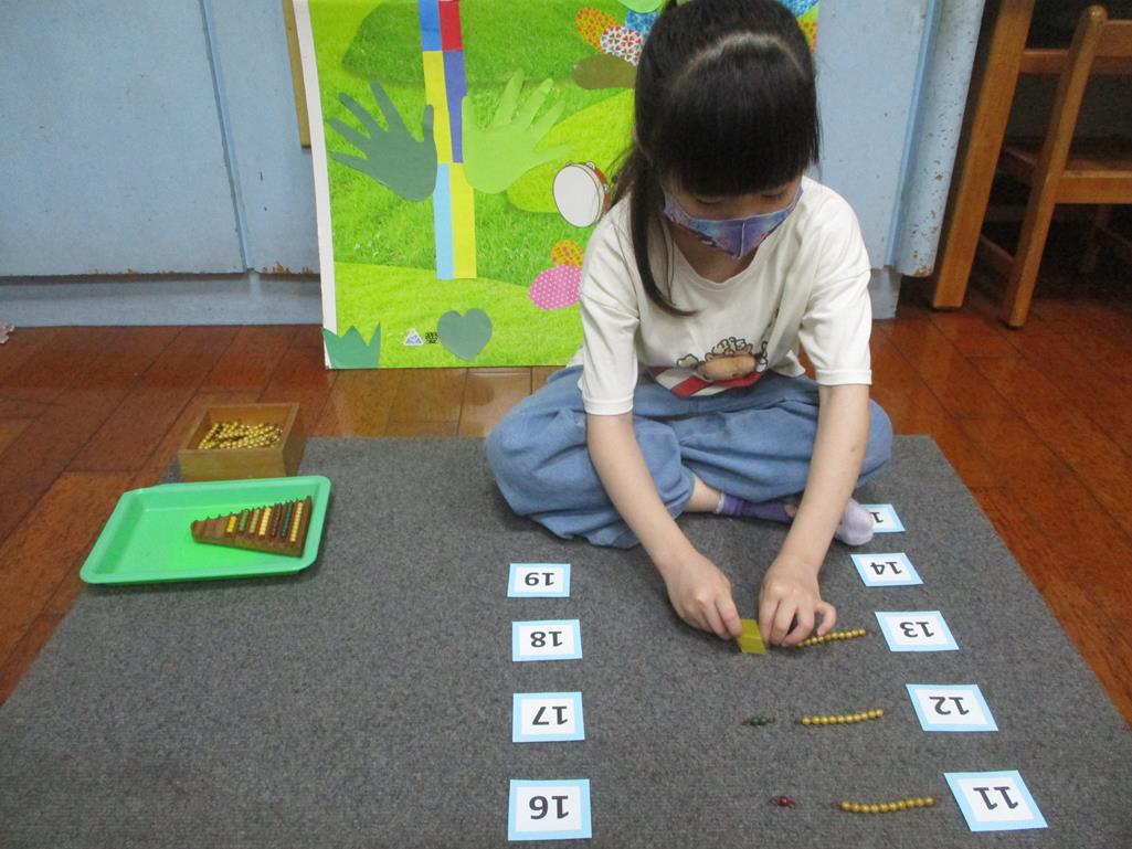 相簿名稱: 茉莉班-蒙特梭利教學(數學教育-彩色串珠11~19+字卡)