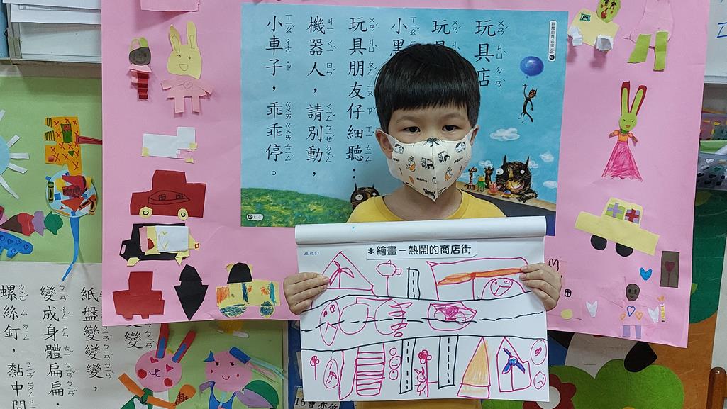 相簿名稱: 向日葵班-主題活動(藝術與人文創作-繪畫-熱鬧的商店街)
