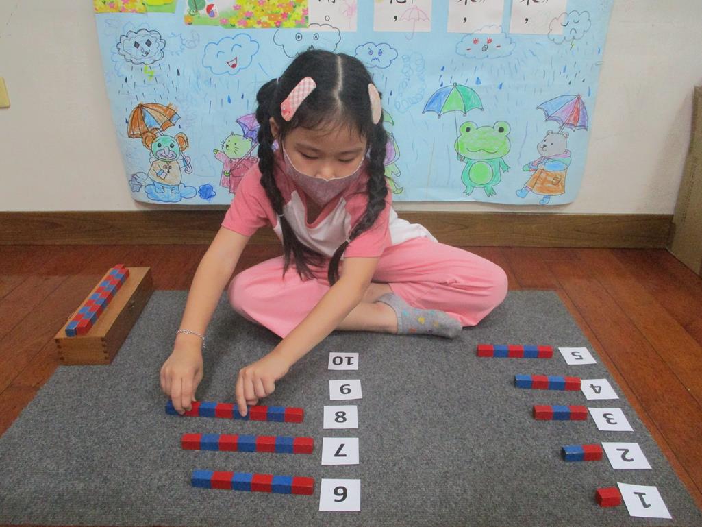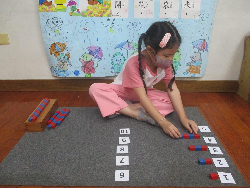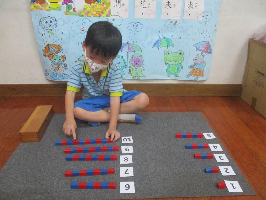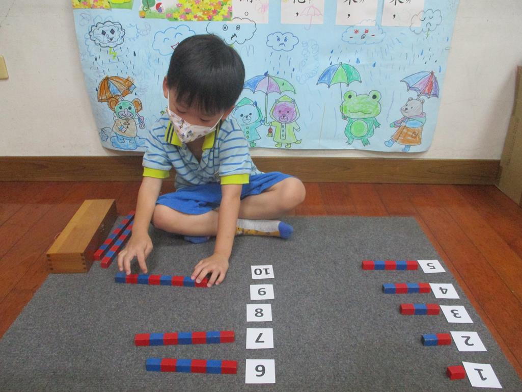 相簿名稱: 茉莉班-蒙特梭利教學(數學教育-數棒+1~10字卡)
