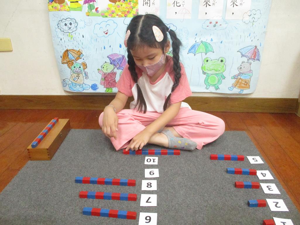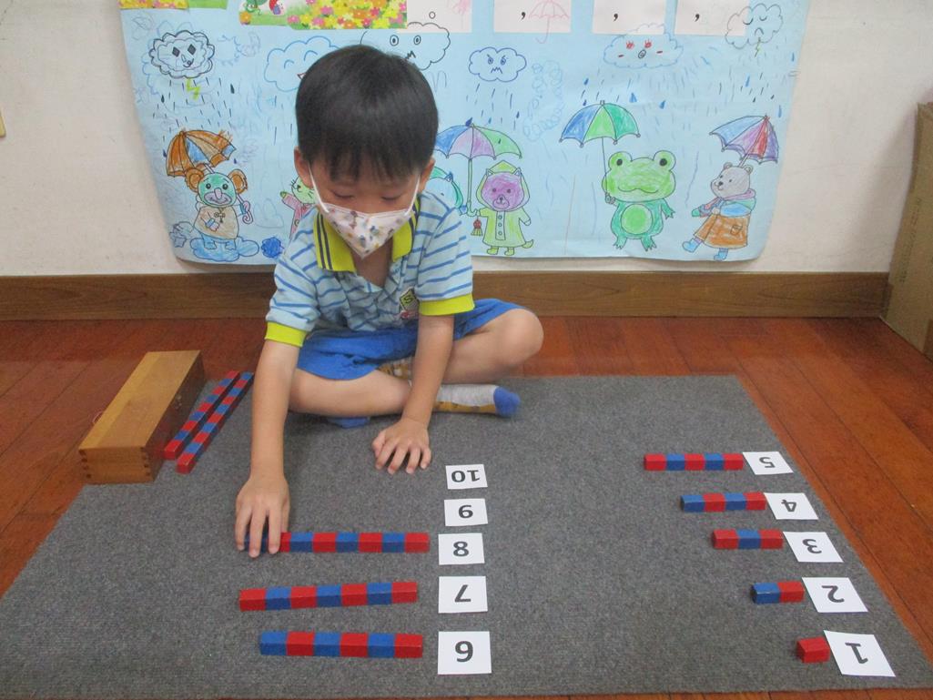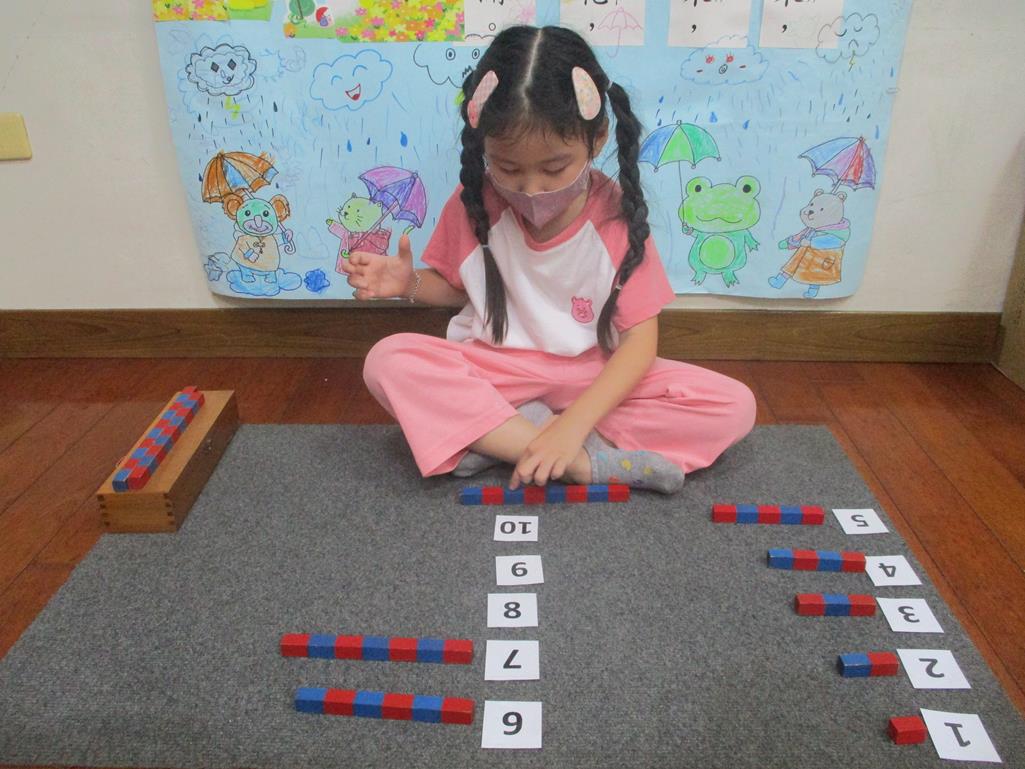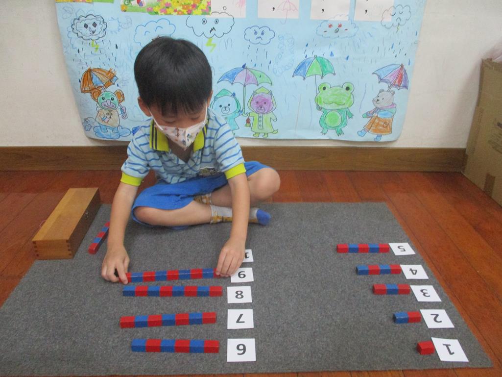 相簿名稱: 茉莉班-蒙特梭利教學(數學教育-數棒+1~10字卡)