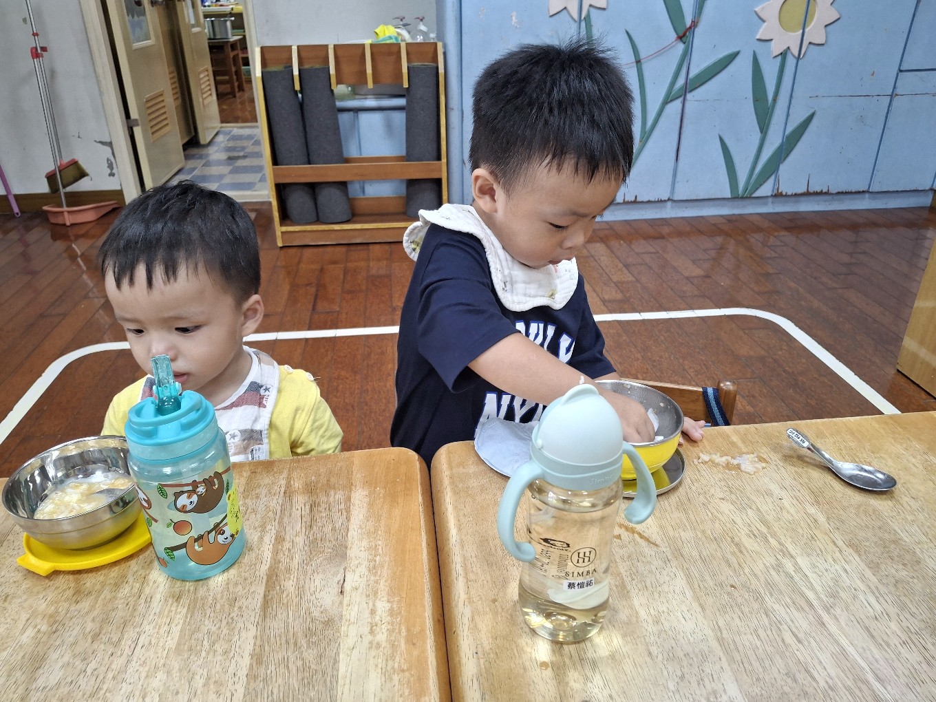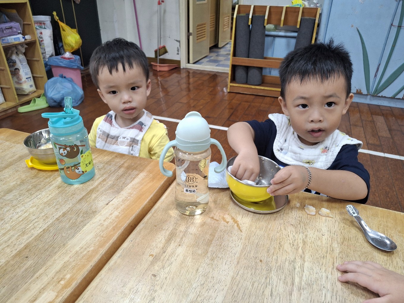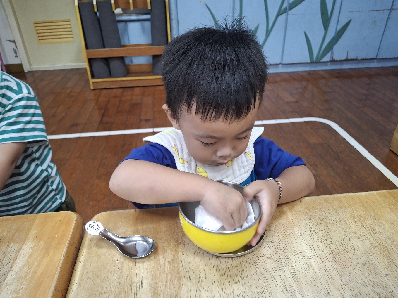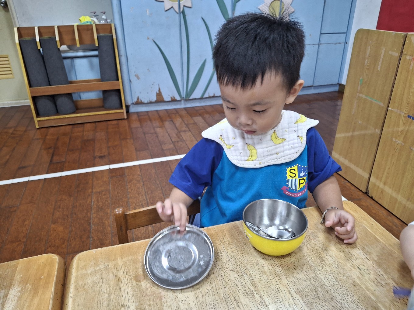 我們現在每天都有練習自己擦碗還有收碗喔!也會幫忙擦擦桌子喔!