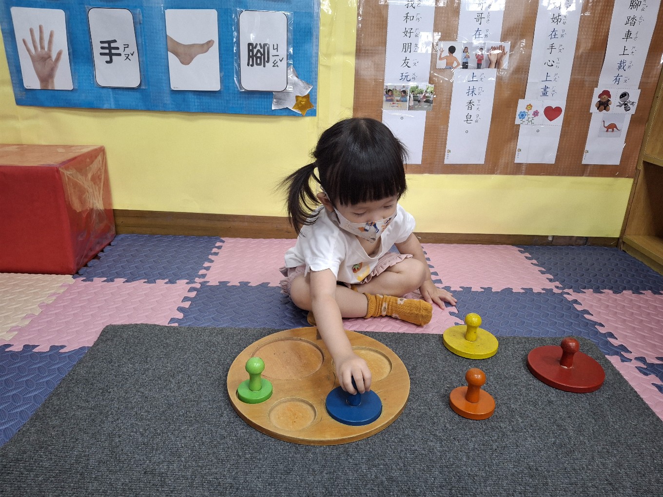 相簿名稱: 草莓班-蒙特梭利教學【感官教育-簡易有柄拼圖(圓形)】