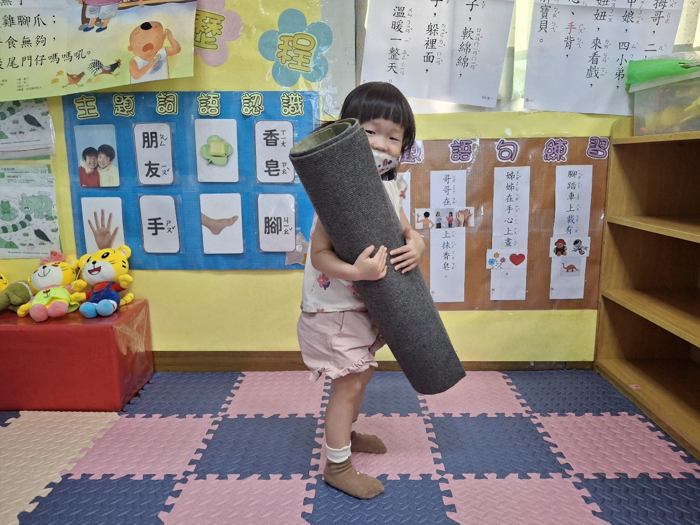 相簿名稱: 草莓班-蒙特梭利教學【日常生活教育-地毯取收捲】