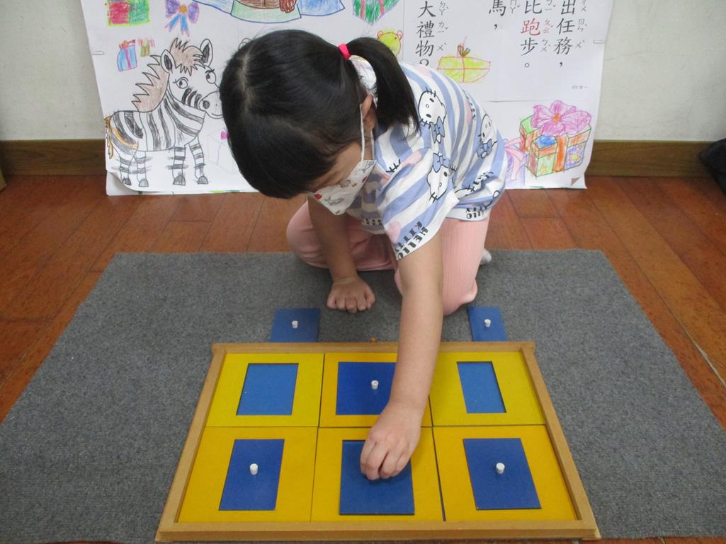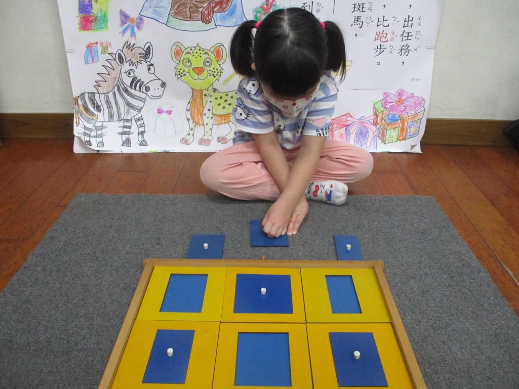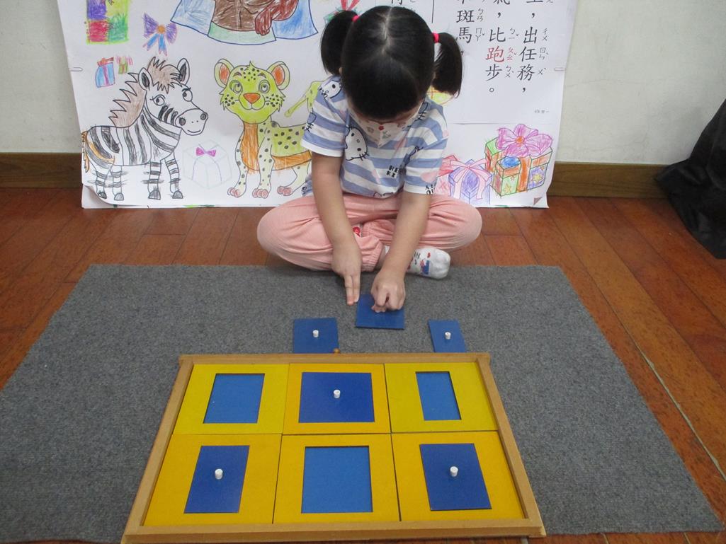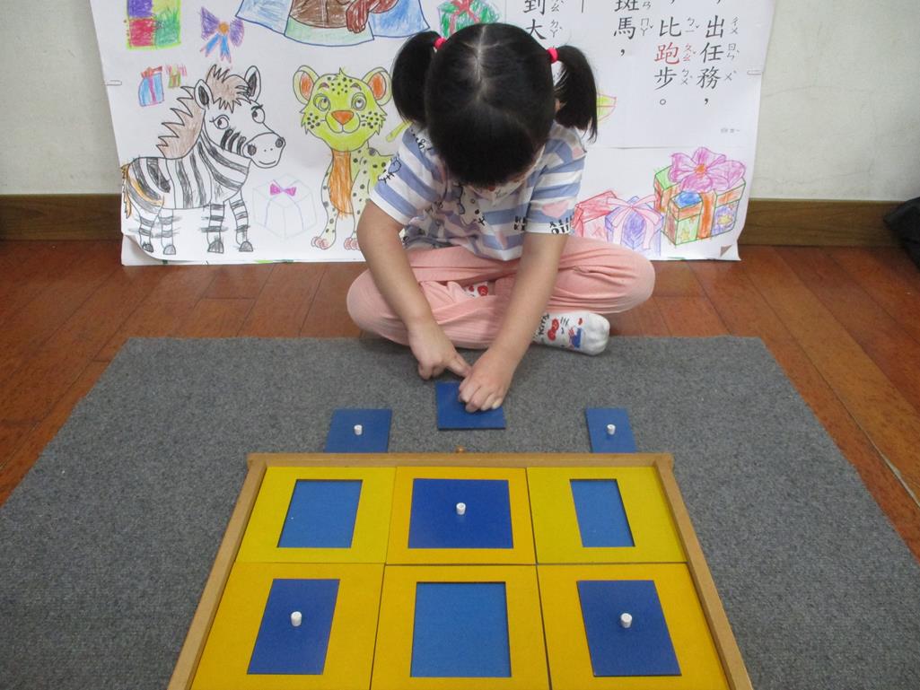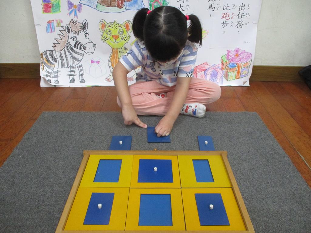 相簿名稱: 茉莉班-蒙特梭利教學(感官教育-幾何拼圖櫥四邊)